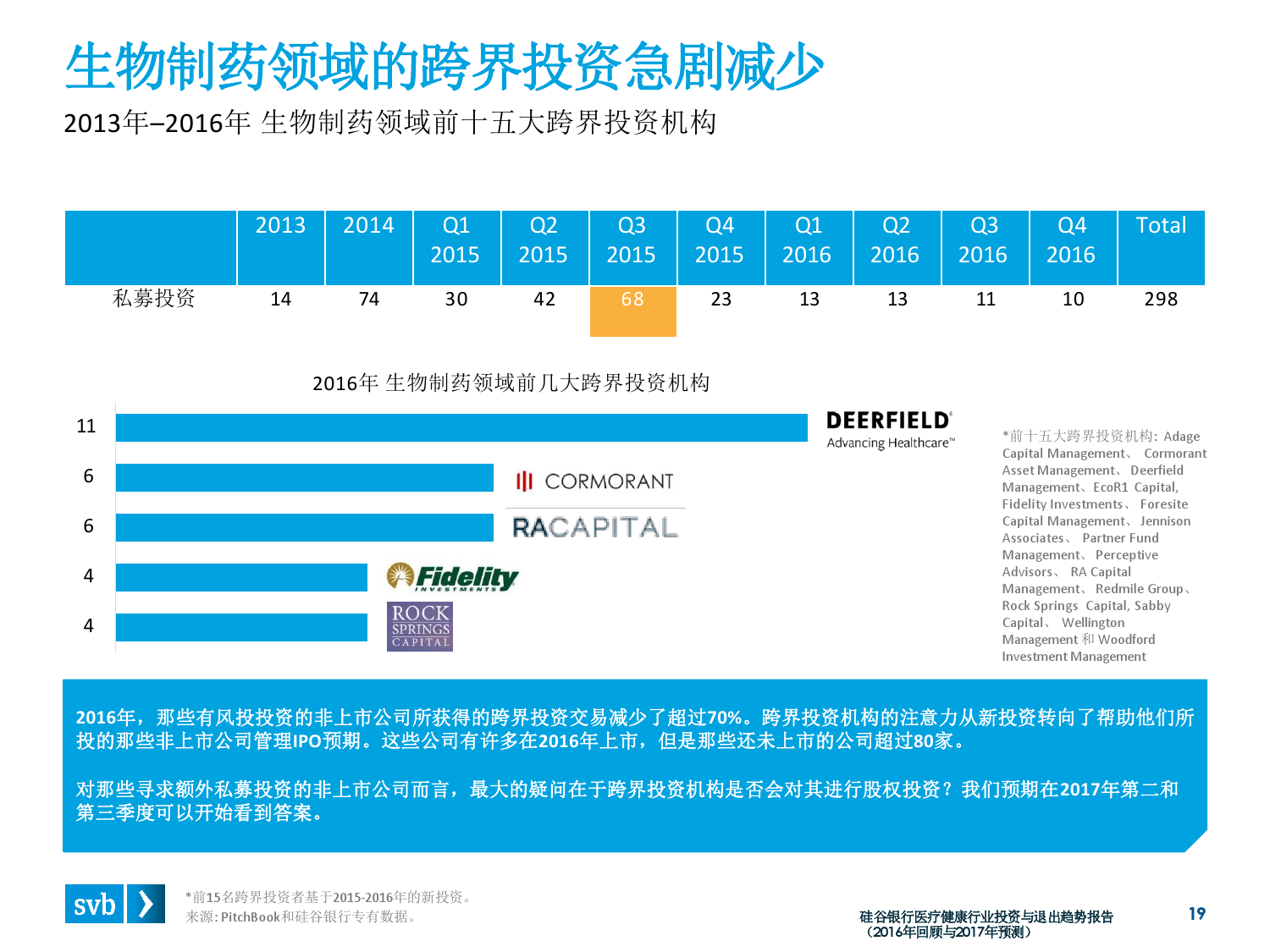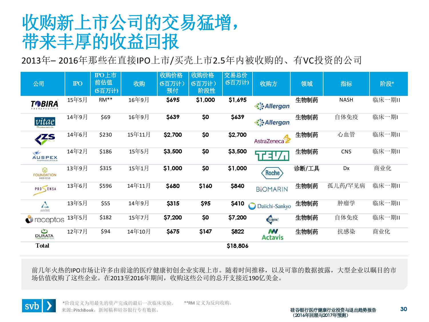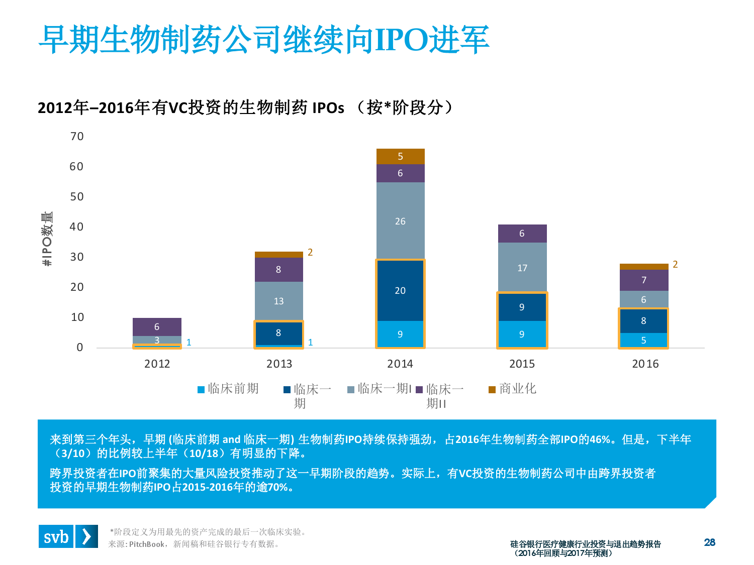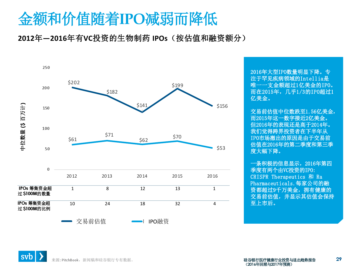 生物制药领域的IPO正如前期预测,比2015年下降了超过30%。并购活动略有下滑且以早期阶段的交易为主。