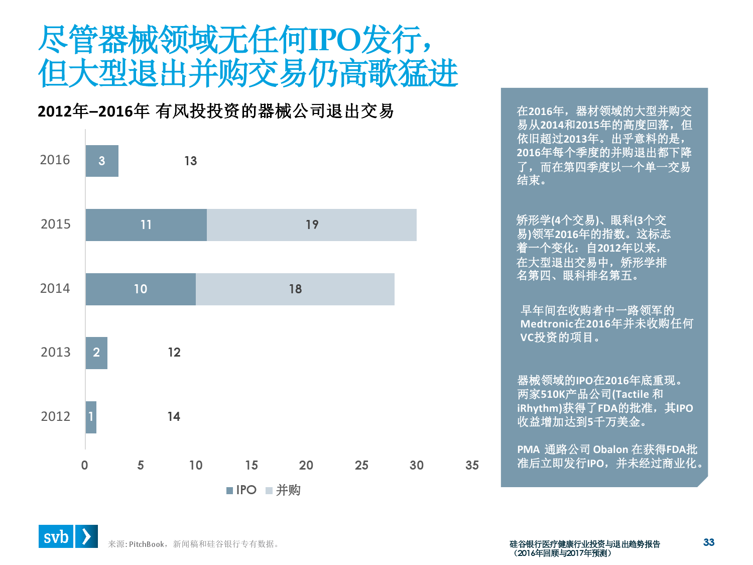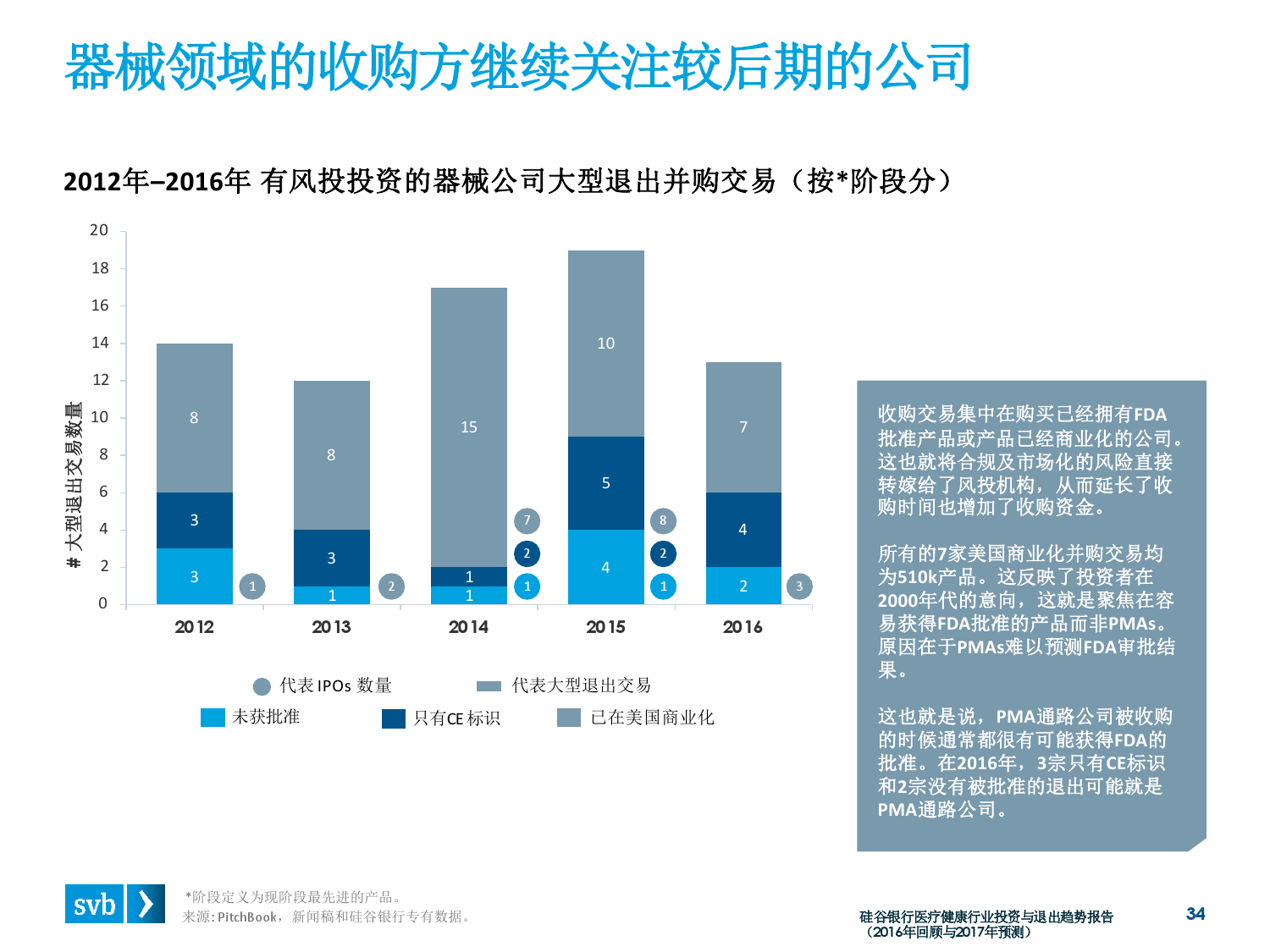 在一个非常缓慢的2016年之后(3个IPO), 器械行业的IPO将至少翻倍。在早期收购的驱动下,并购举措有可能将保持稳定(2016有13个)。