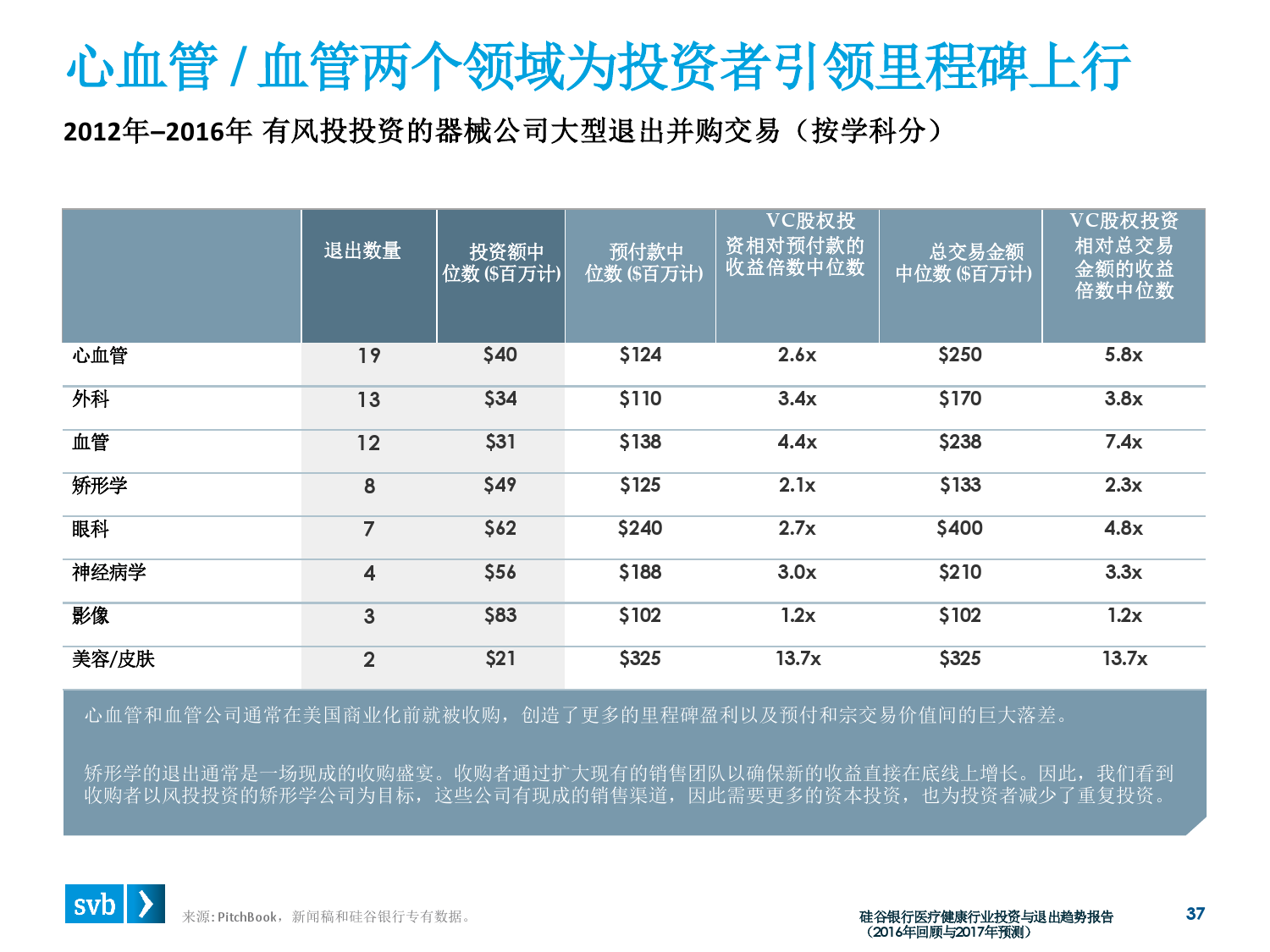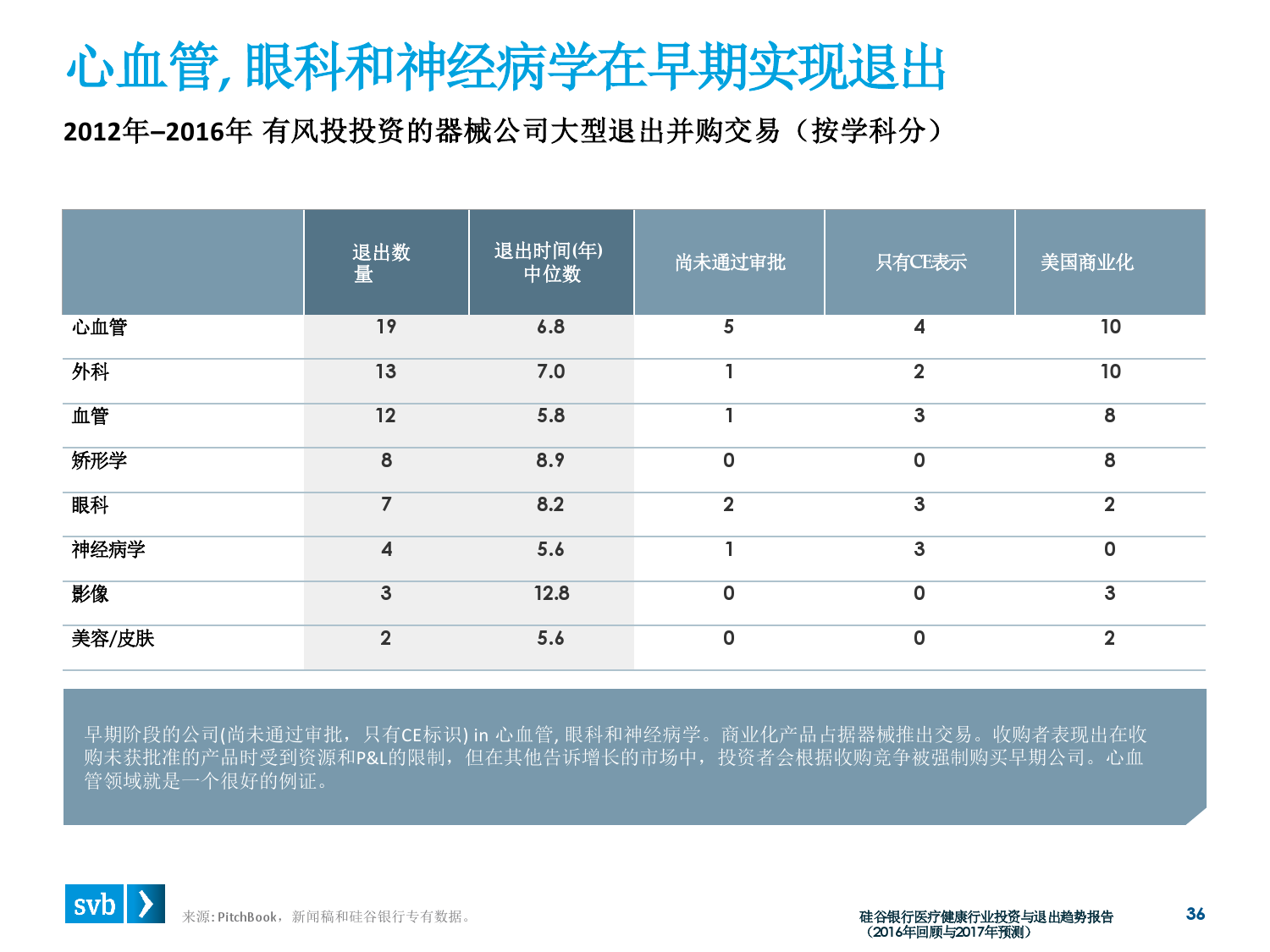 2016年下半年,再度有医疗器械公司IPO上市。大型并购交易活动持稳,并购交易最多的前几大学科是矫形学和眼科,这一点让人意外。