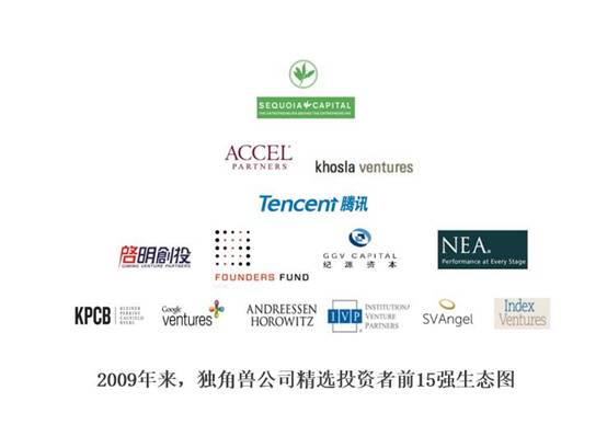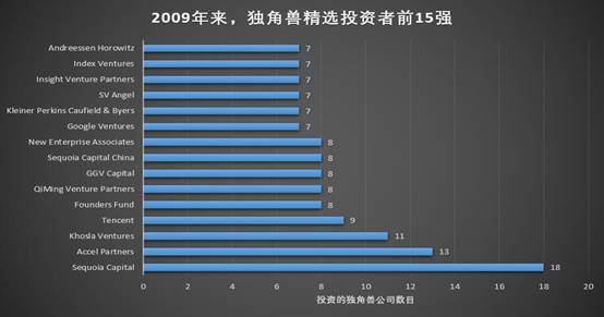 由此,我们绘制了2009年独角兽精选投资者前15强生态图(注:红杉资本和红杉资本中国基金合并)。