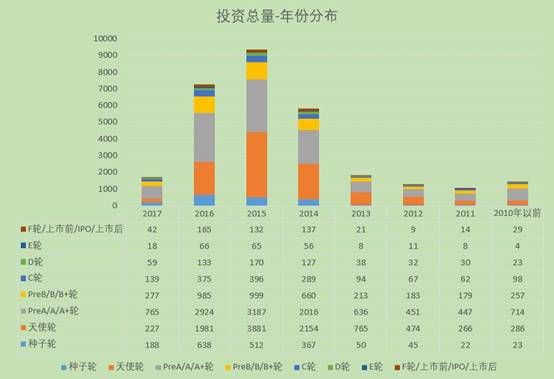 同样是2013年前不温不火,2014年爆炸性增长,2015年到达顶峰,2016年开始回落,因此对于独角兽公司的深度挖掘一定程度上也是对整个投融资领域的整体分析。