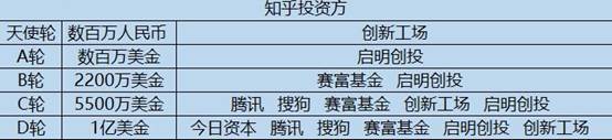 而知乎最新一轮投资方都有丰富的市场经验以及良好的的行业背景,比如创新工场和今日资本都堪称顶级投资机构,腾讯和搜狗也不必说,二者与知乎在业务层面有许多整合空间,过去几年已有亮眼表现。