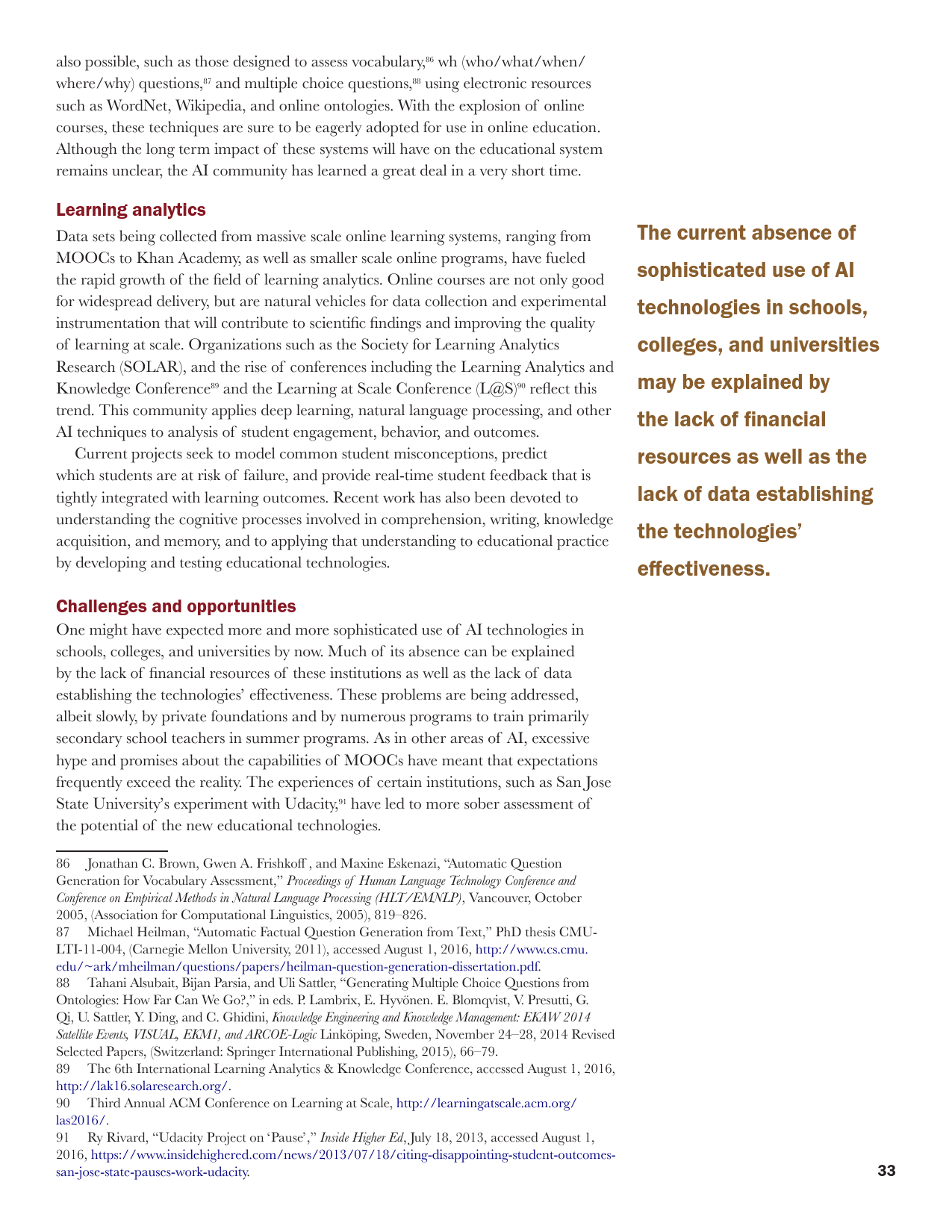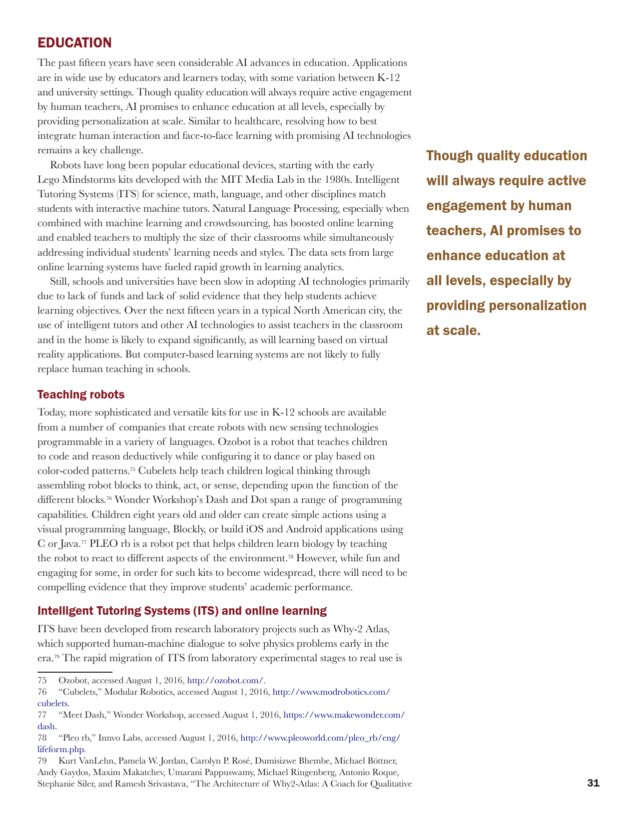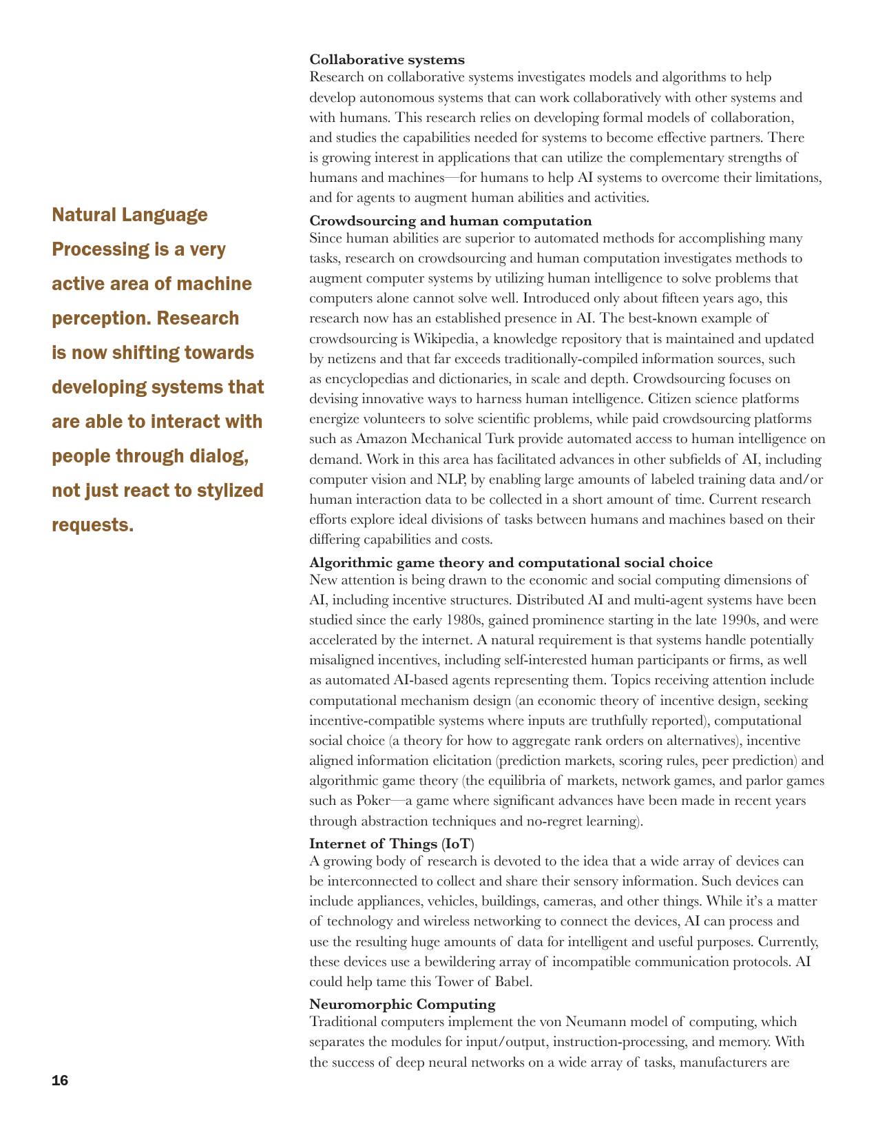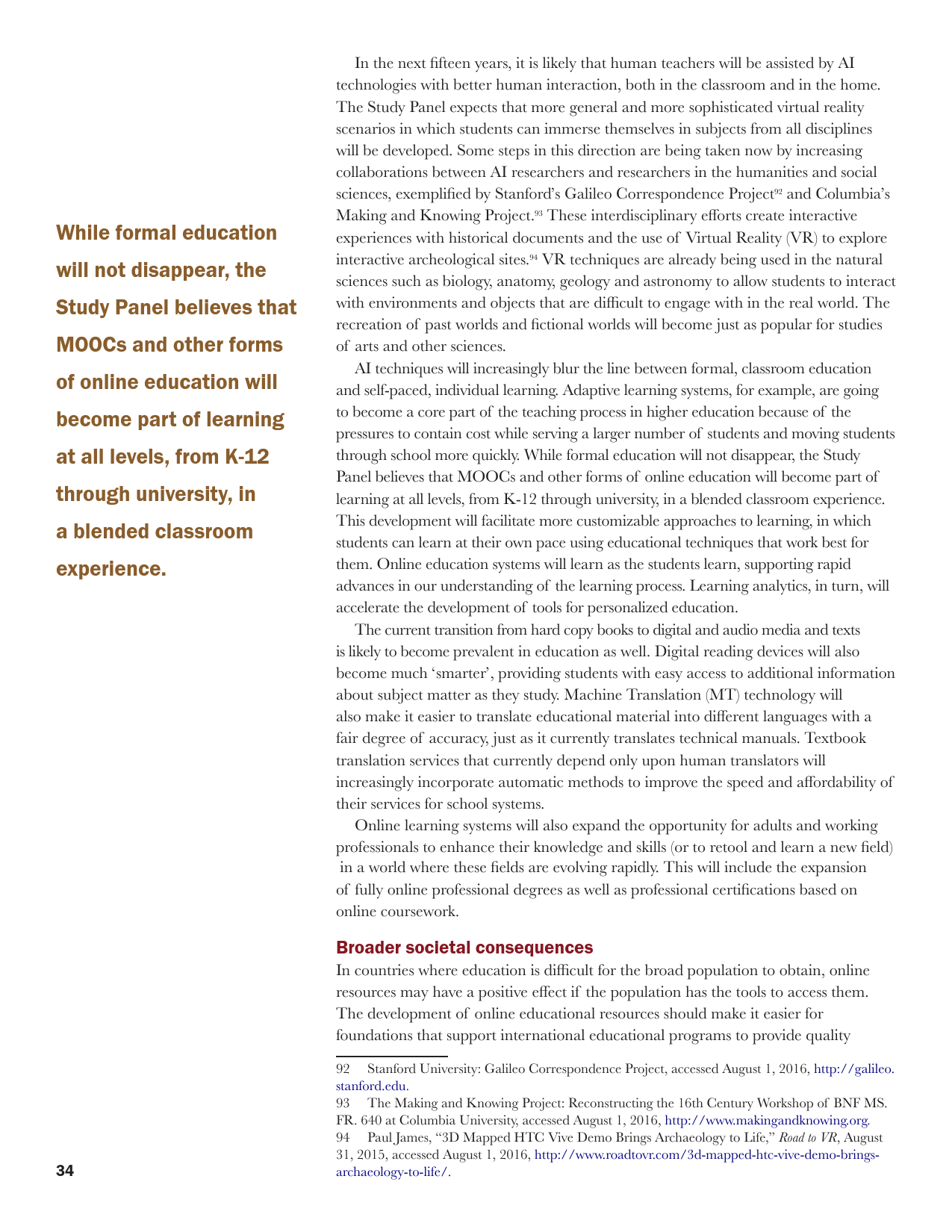 “2030年的人工智能与生活”调查了城市生活中现在已经受到人工智能巨大影响,并且在2030年会受到更大影响的八个领域:交通,家庭/服务机器人,医疗保健,教育,娱乐,贫困社区,公共安全和安保,就业和工作场所。