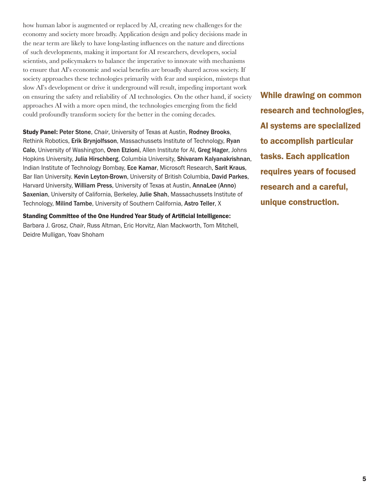 格罗兹说,她希望AI 100报告“引发一个长达一个世纪的关于人工智能技术的讨论,从而尽可能地去塑造和改善未来的社会生活方式。”