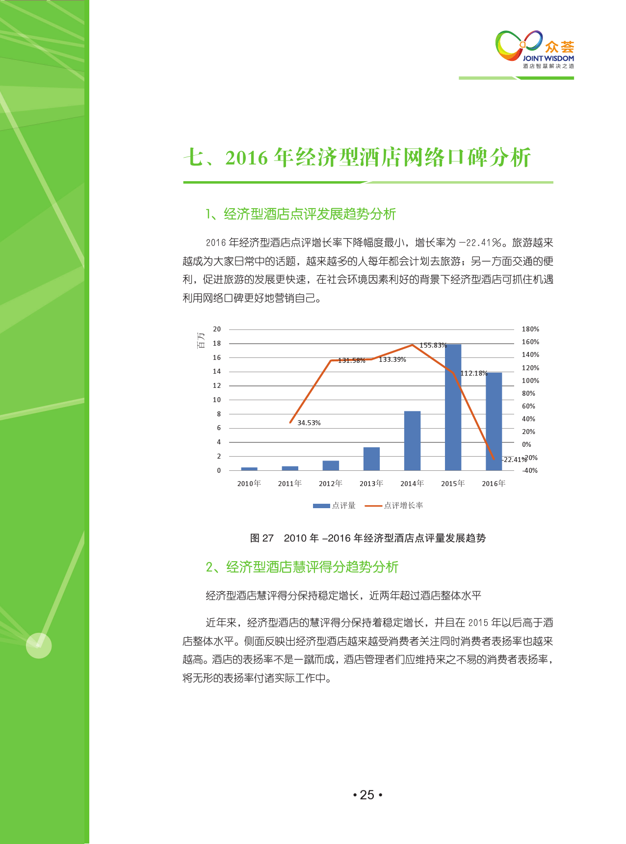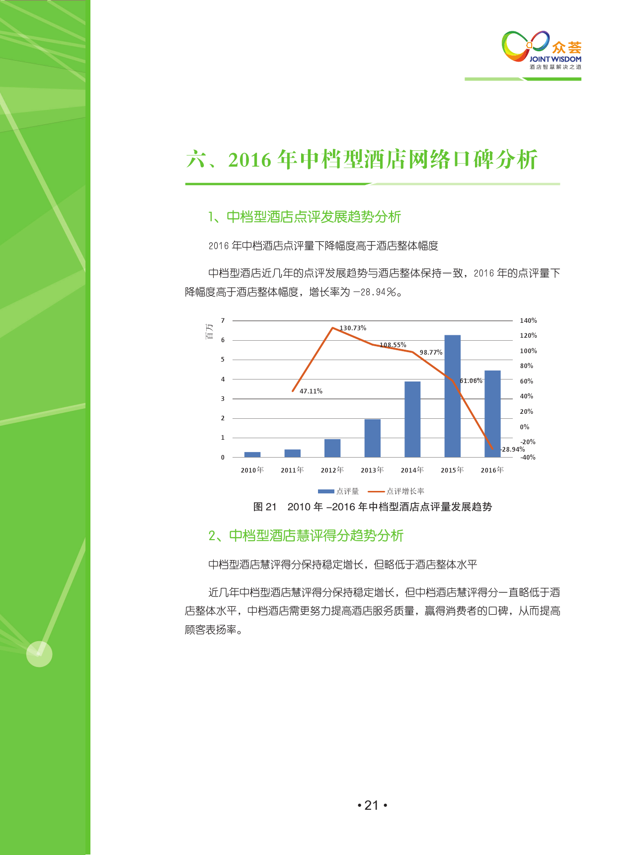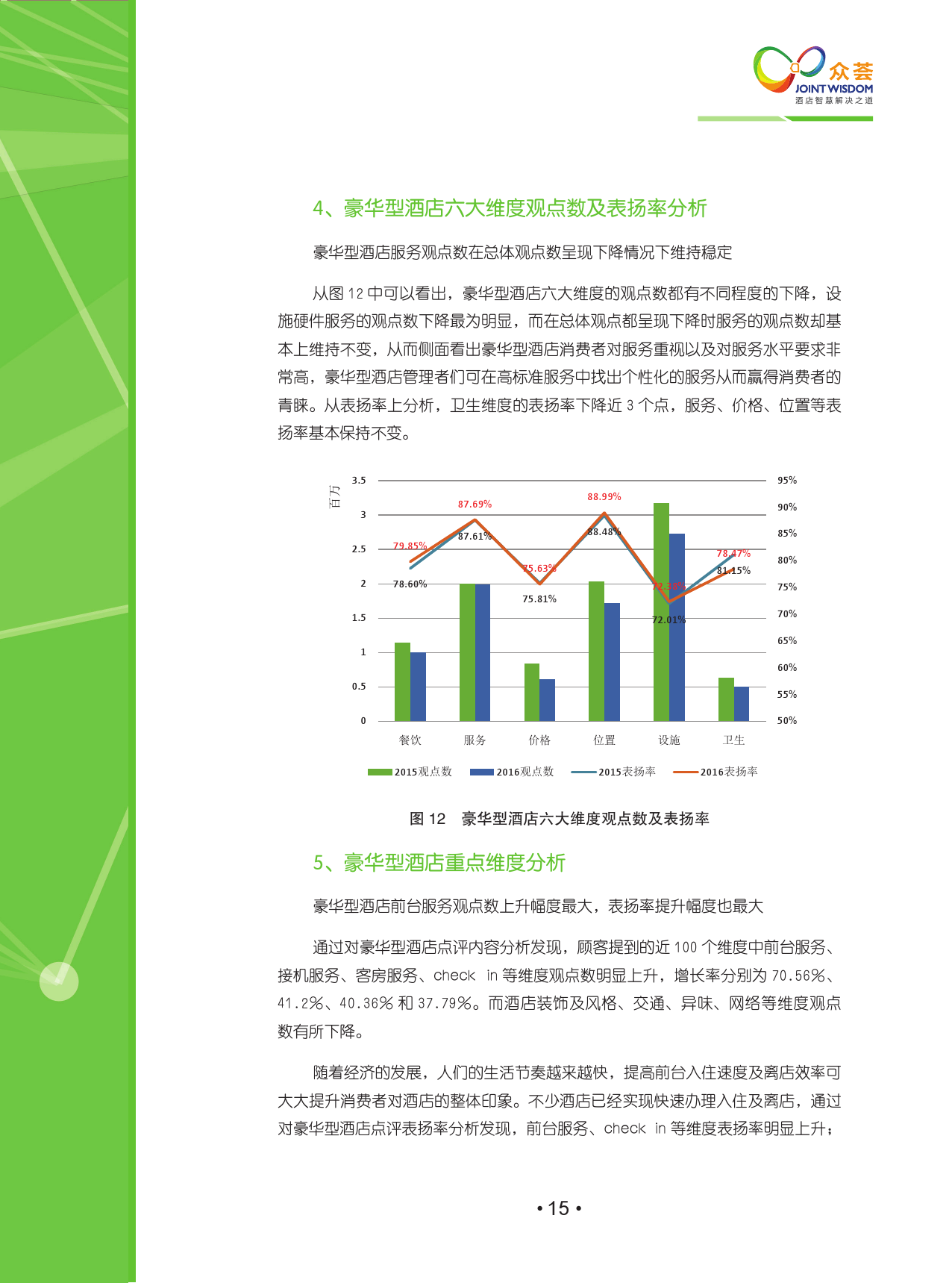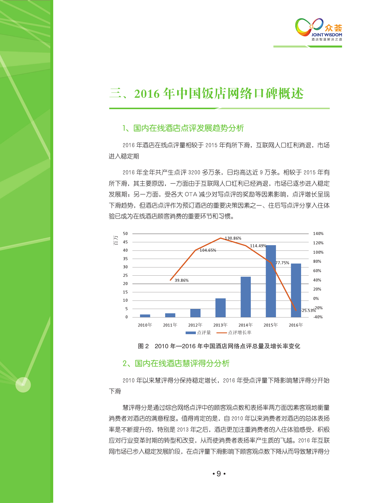 该报告涵盖了2010年-2016年国内外18大主流点评网站,包含线上425,958家酒店,超过1.2亿条点评,主要分析2015年至2016年网络口碑的变化,其中2016年共产生点评3200多万,分析观点1亿多个。