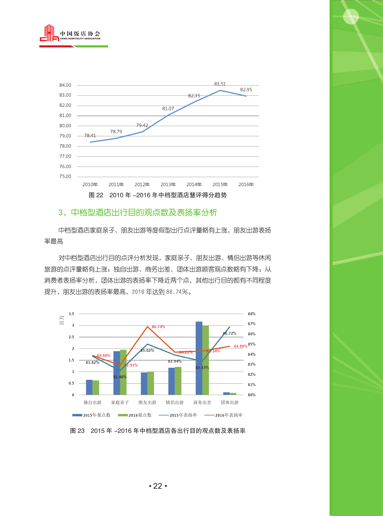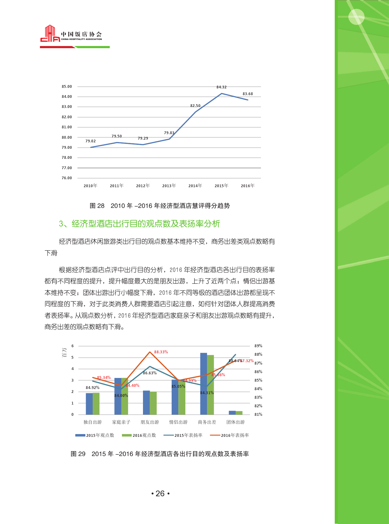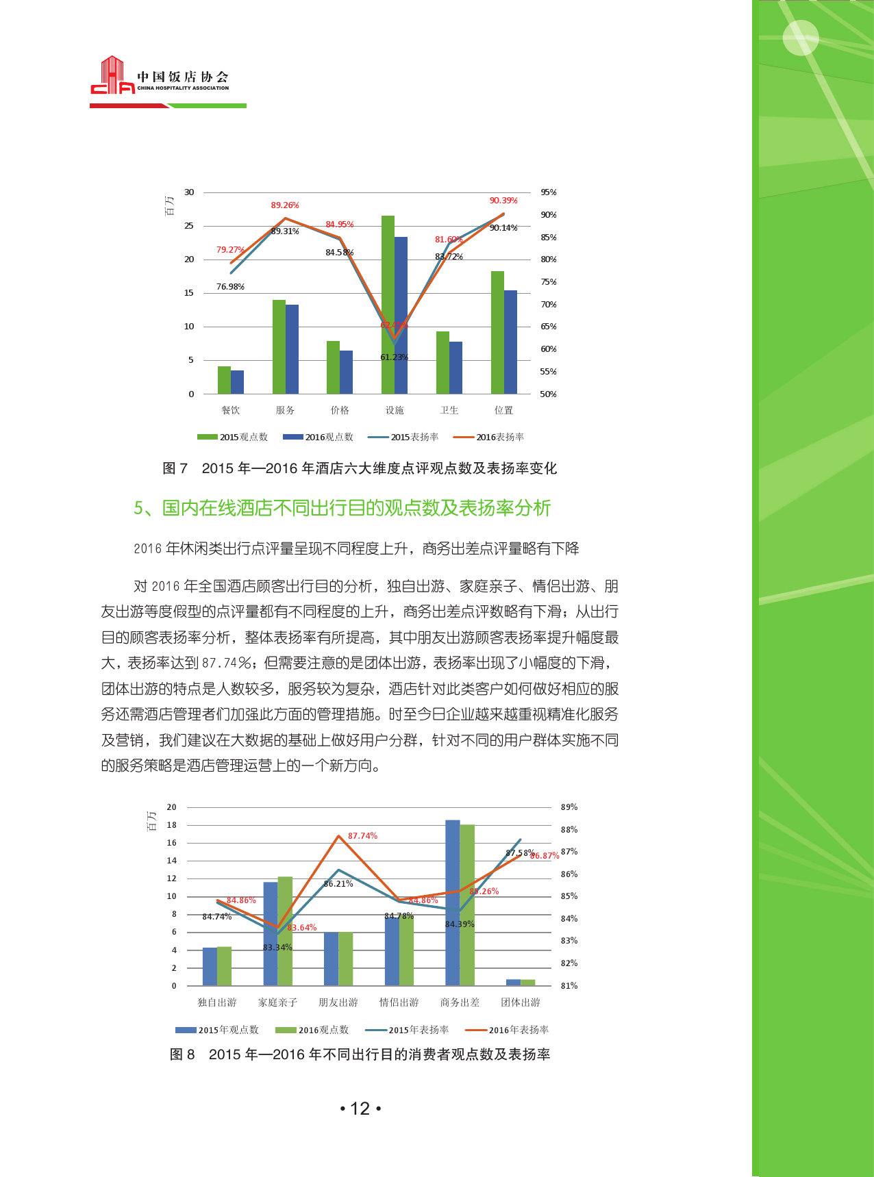 总体来看,随着互联网人口红利的消退,点评数量下滑,市场进入稳定期。但是住宿点评已深入人心,成为酒店消费者决策的一部分,这一点在中高档酒店消费者身上尤为明显。家庭亲子点评数获得了最大幅度的增长,大多数消费者的关注点仍为酒店硬件设施。