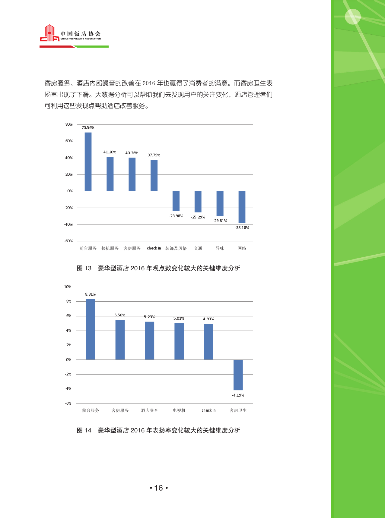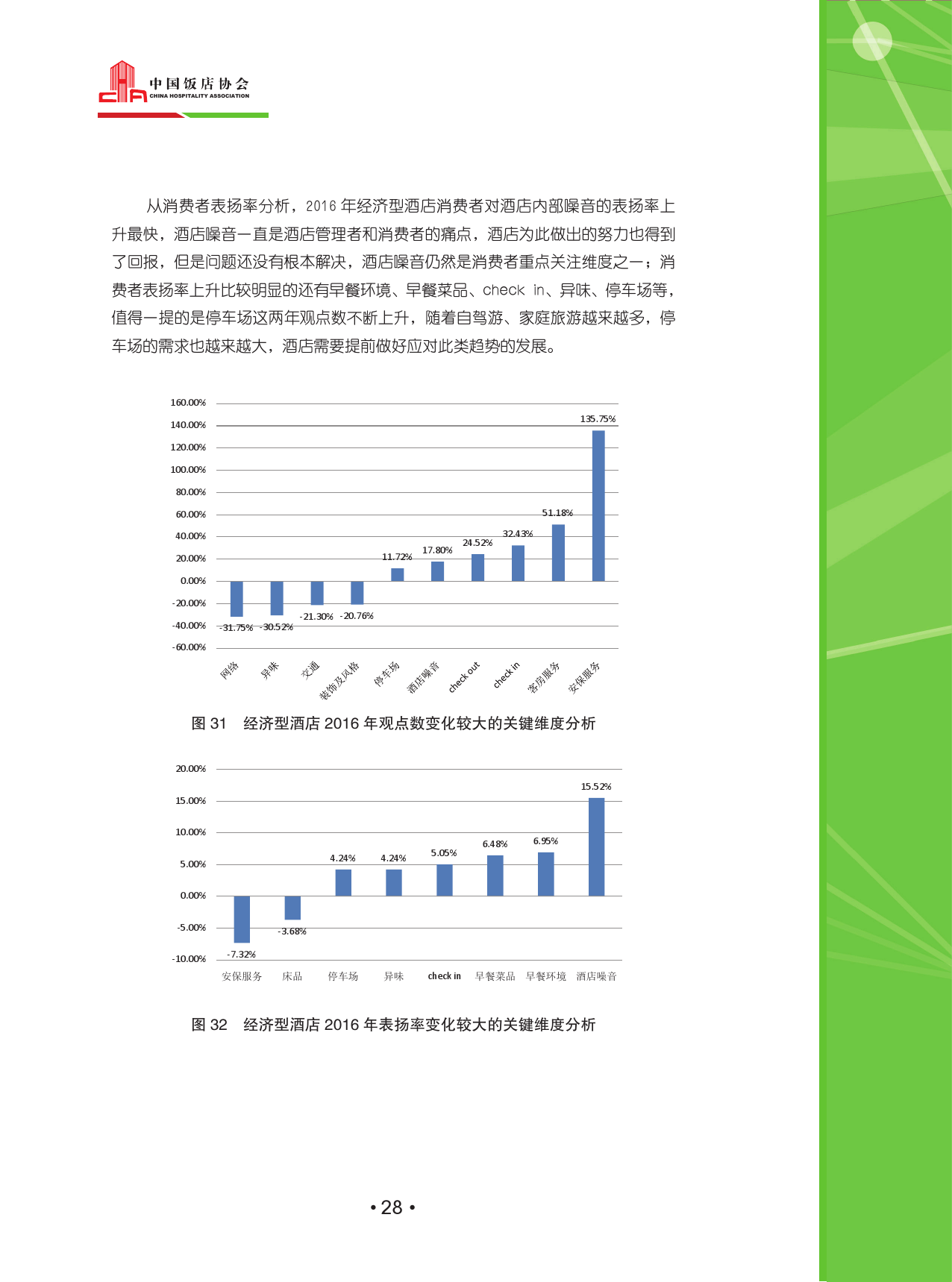 在今年的豪华型酒店重点维度分析中可以看到,消费者对于酒店前台服务、客房服务、以及隔音效果的改善等均赢得了消费者的满意,可见现在的消费者对于时间及服务质量的需求越来越高。值得注意的是,豪华型酒店的接机服务观点数也有了41.2%的增长,随着消费者出行的变化,酒店曾经的一些“冷门”服务也开始受到重视。