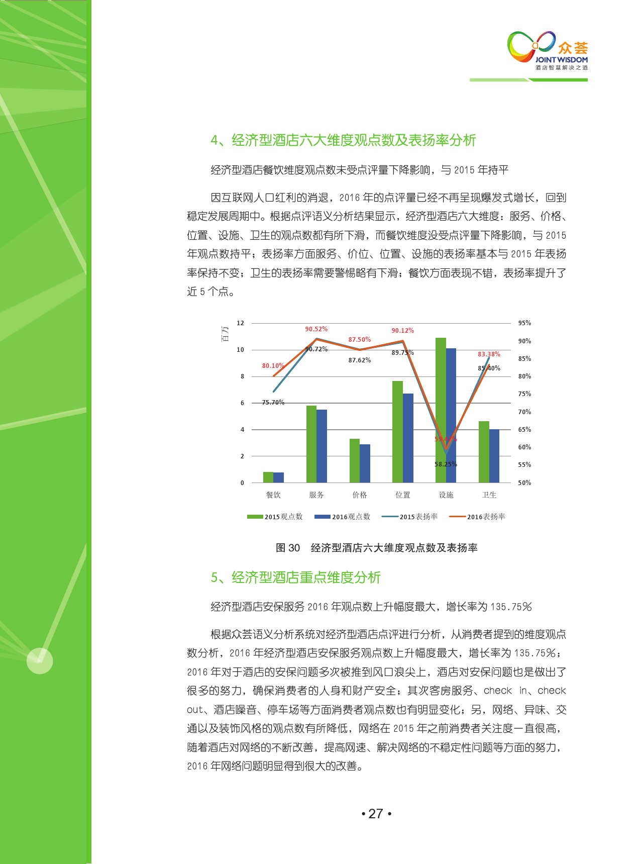 2016年的贵族们好像越来越低调了,豪华型酒店点评下滑速度高于整体酒店两个点。家庭亲子点评观点增长幅度最大,更多豪华型消费者们开始回归家庭。豪华型消费者对服务重视以及对服务水平要求非常高,这一点在总体观点都呈现下降时服务的观点数却基本上维持不变上可以体现出来,由此,豪华型酒店管理者们在高标准服务中找出个性化的服务从而赢得消费者的青睐是一门重要课题。