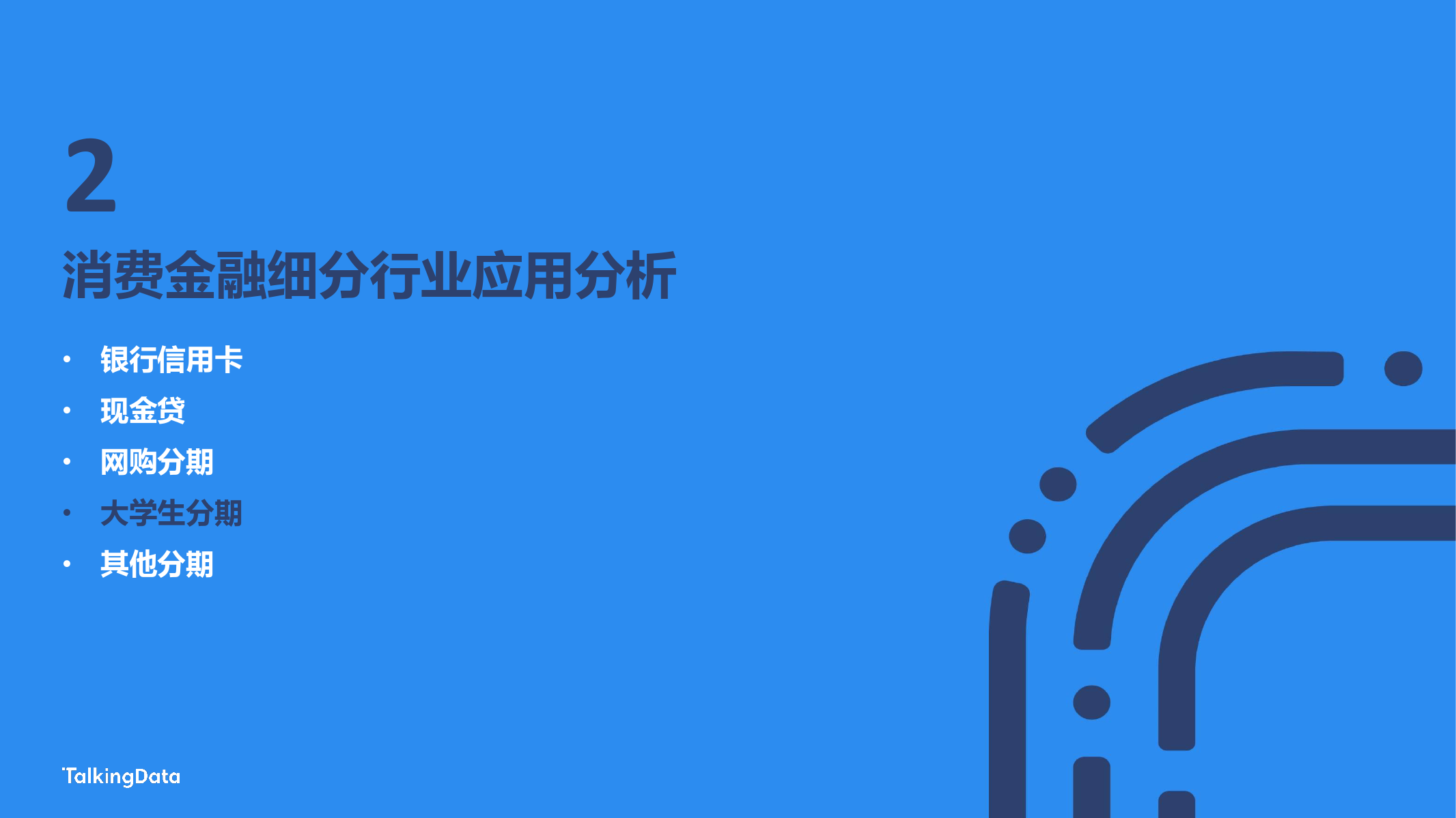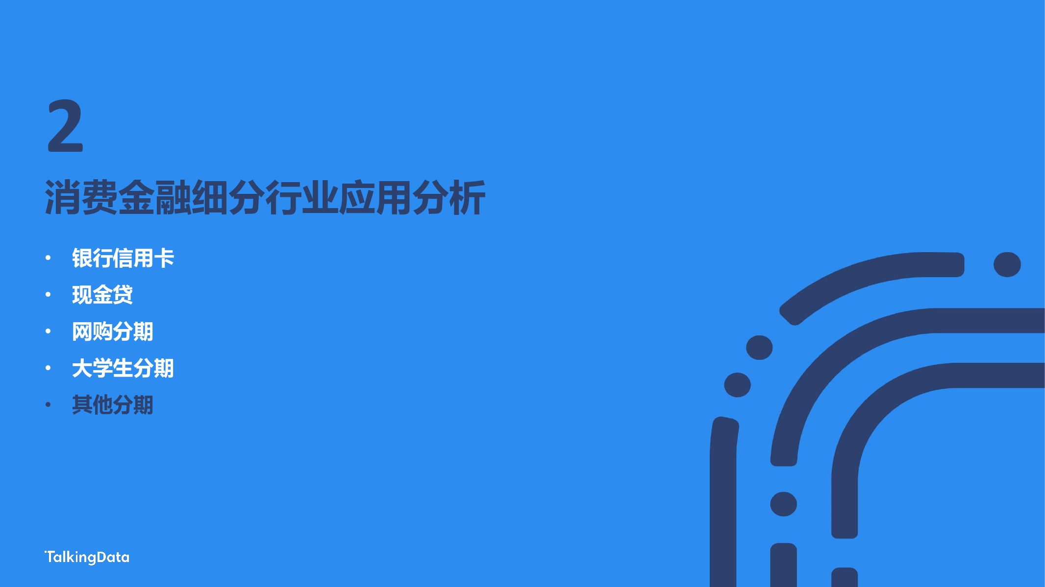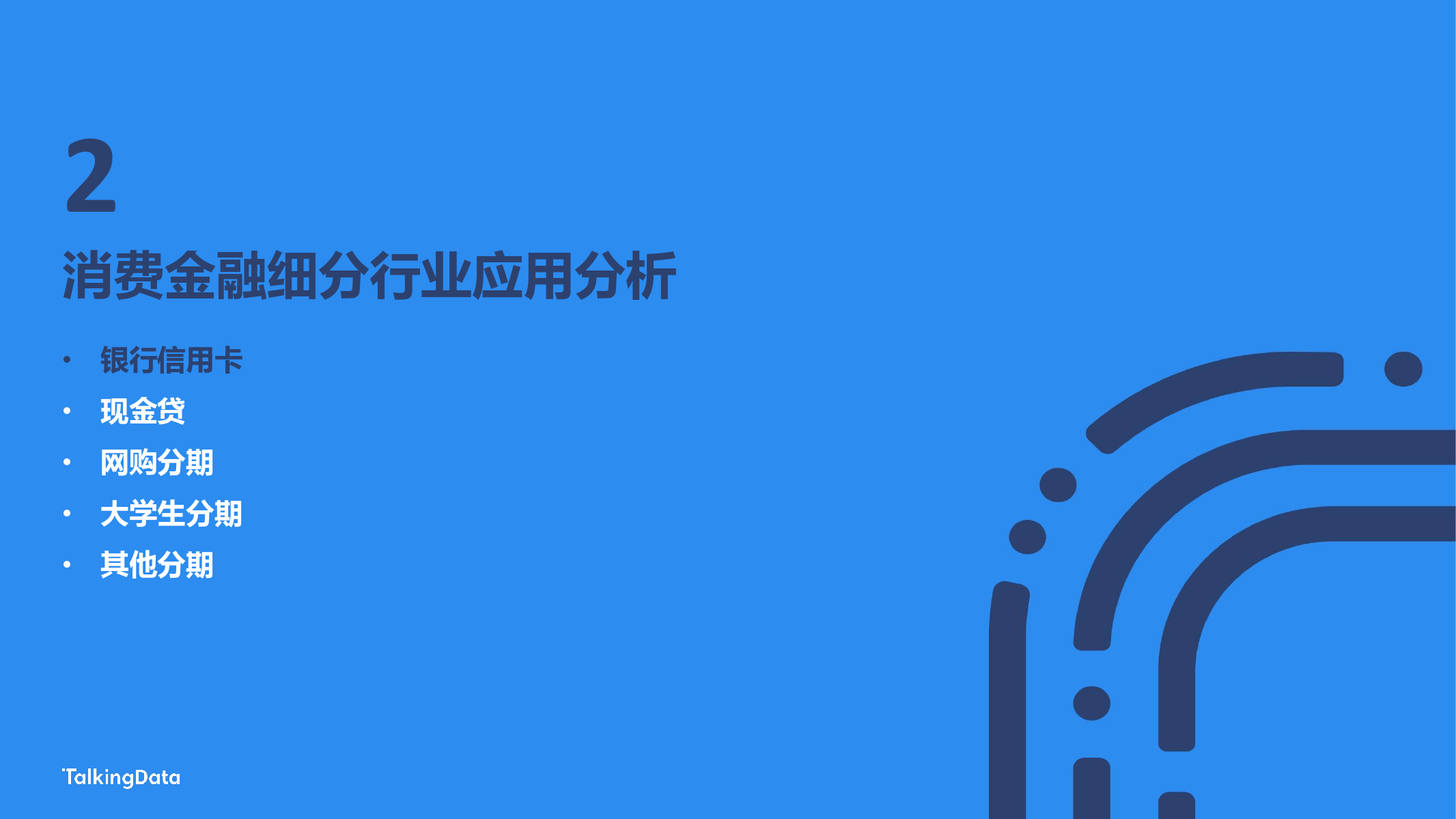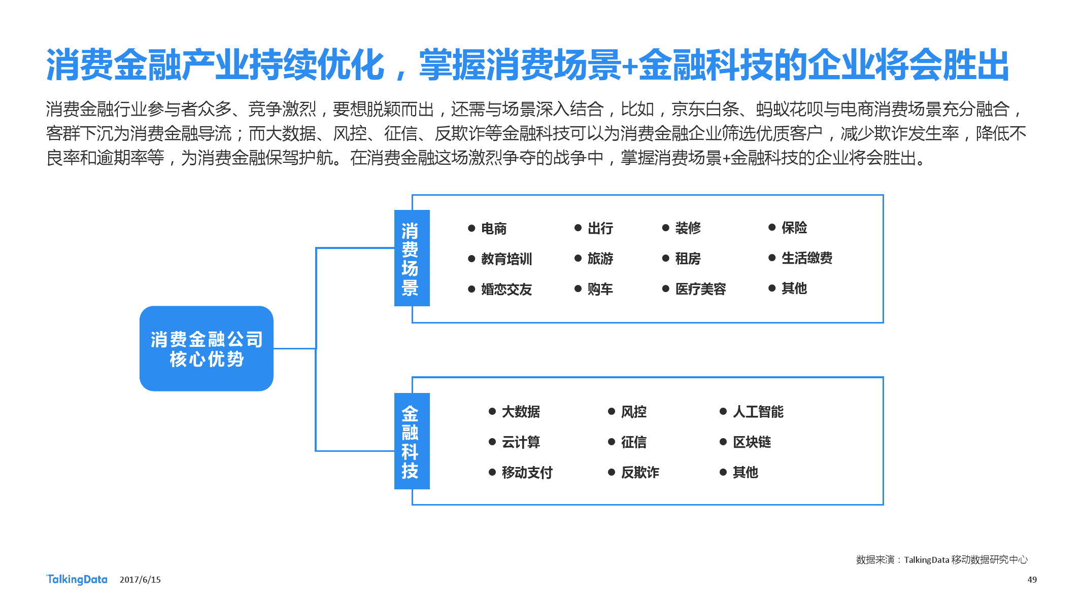 在此背景下,TalkingData 联合米么金服推出《2017年消费金融行业发展报告》,报告从行业发展现状及发展趋势、应用发展情况等方面对消费金融行业进行分析,同时选取了银行信用卡、现金贷以及医美分期等消费金融细分行业,对其用户进行画像洞察,希望能对消费金融行业从业者起到一定参考作用。
