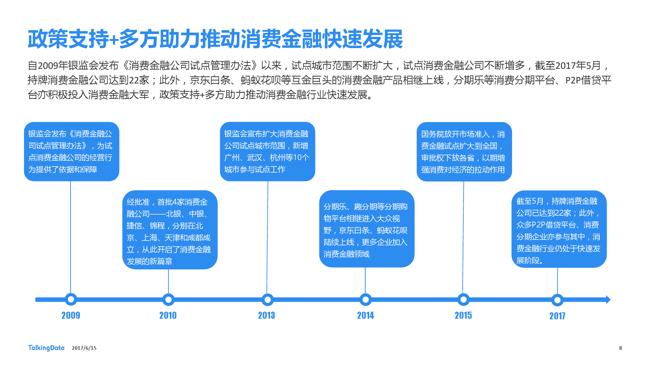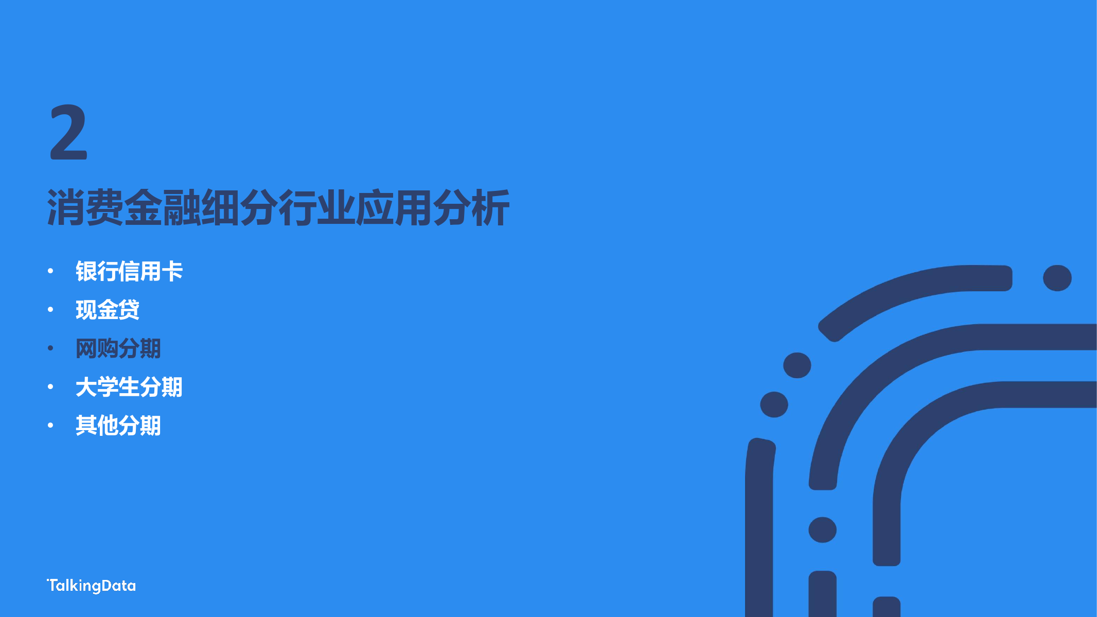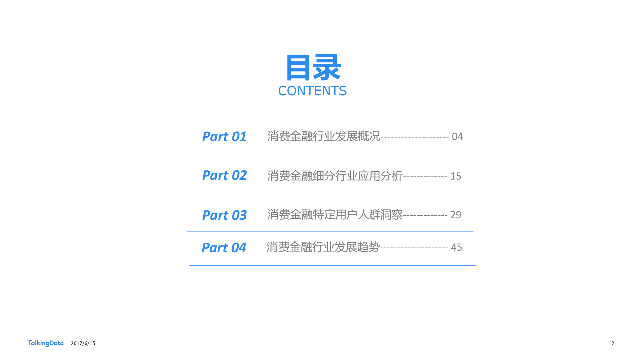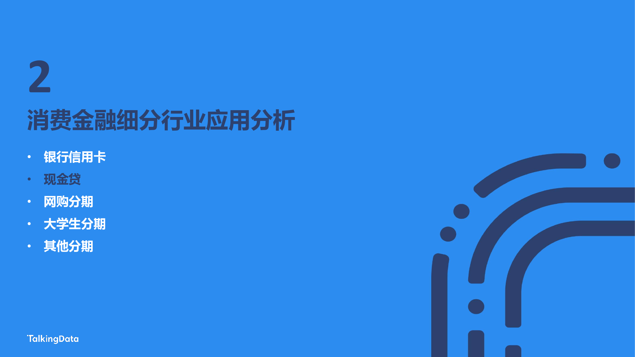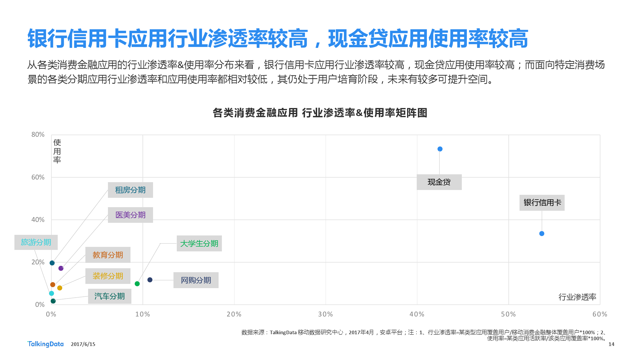 在此背景下,TalkingData 联合米么金服推出《2017年消费金融行业发展报告》,报告从行业发展现状及发展趋势、应用发展情况等方面对消费金融行业进行分析,同时选取了银行信用卡、现金贷以及医美分期等消费金融细分行业,对其用户进行画像洞察,希望能对消费金融行业从业者起到一定参考作用。