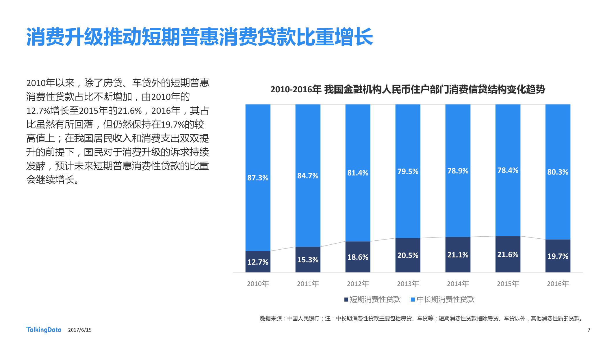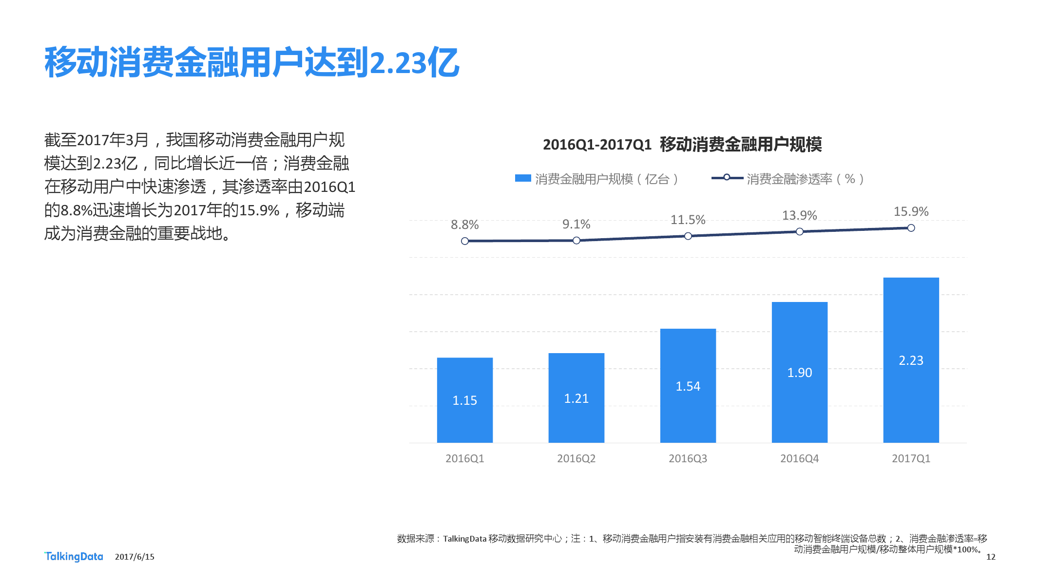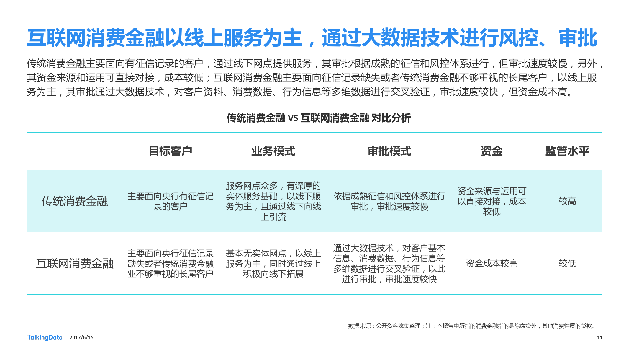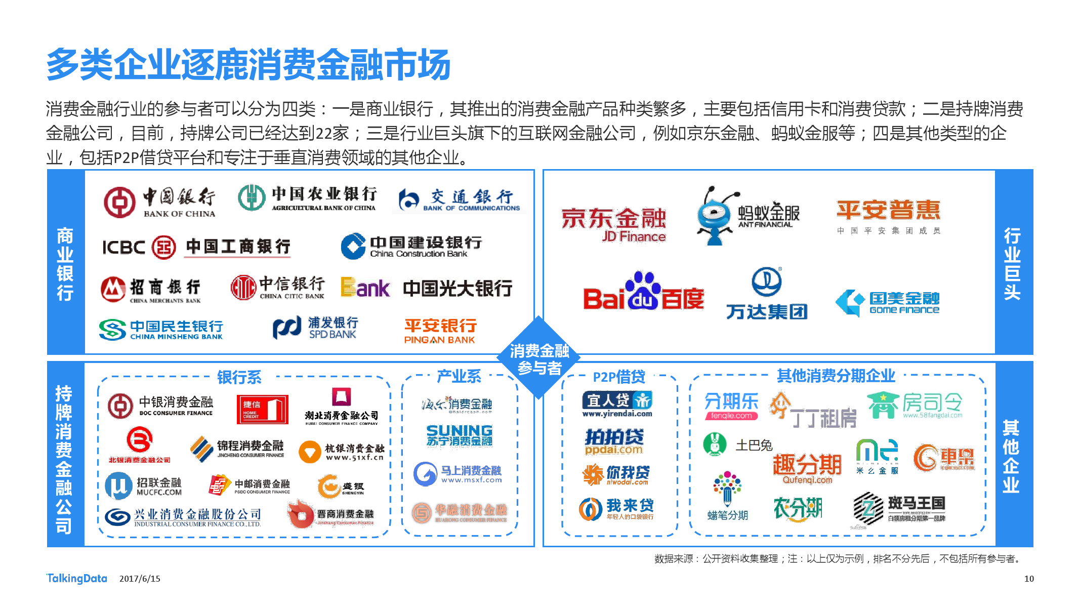 在此背景下,TalkingData 联合米么金服推出《2017年消费金融行业发展报告》,报告从行业发展现状及发展趋势、应用发展情况等方面对消费金融行业进行分析,同时选取了银行信用卡、现金贷以及医美分期等消费金融细分行业,对其用户进行画像洞察,希望能对消费金融行业从业者起到一定参考作用。