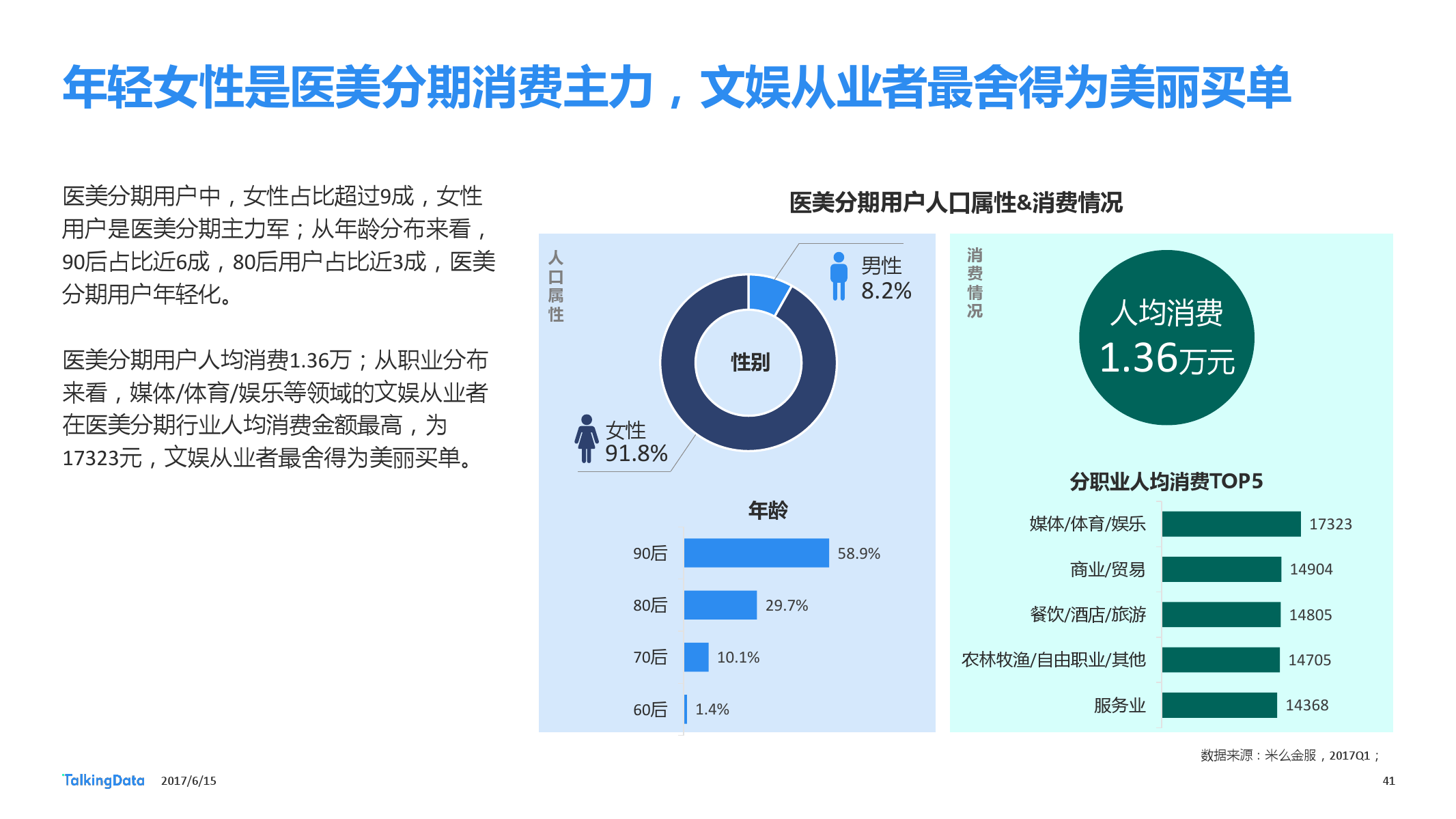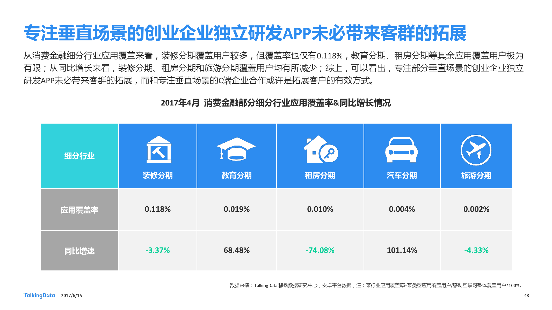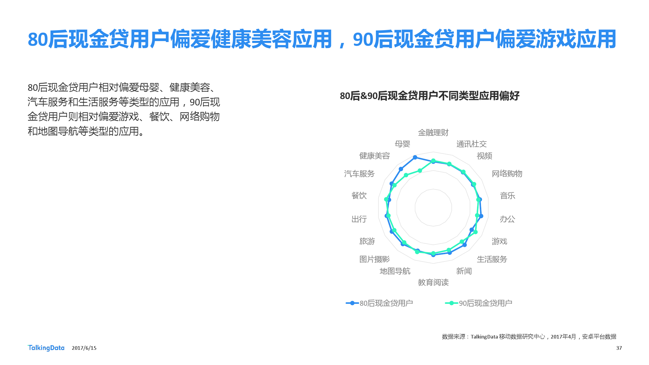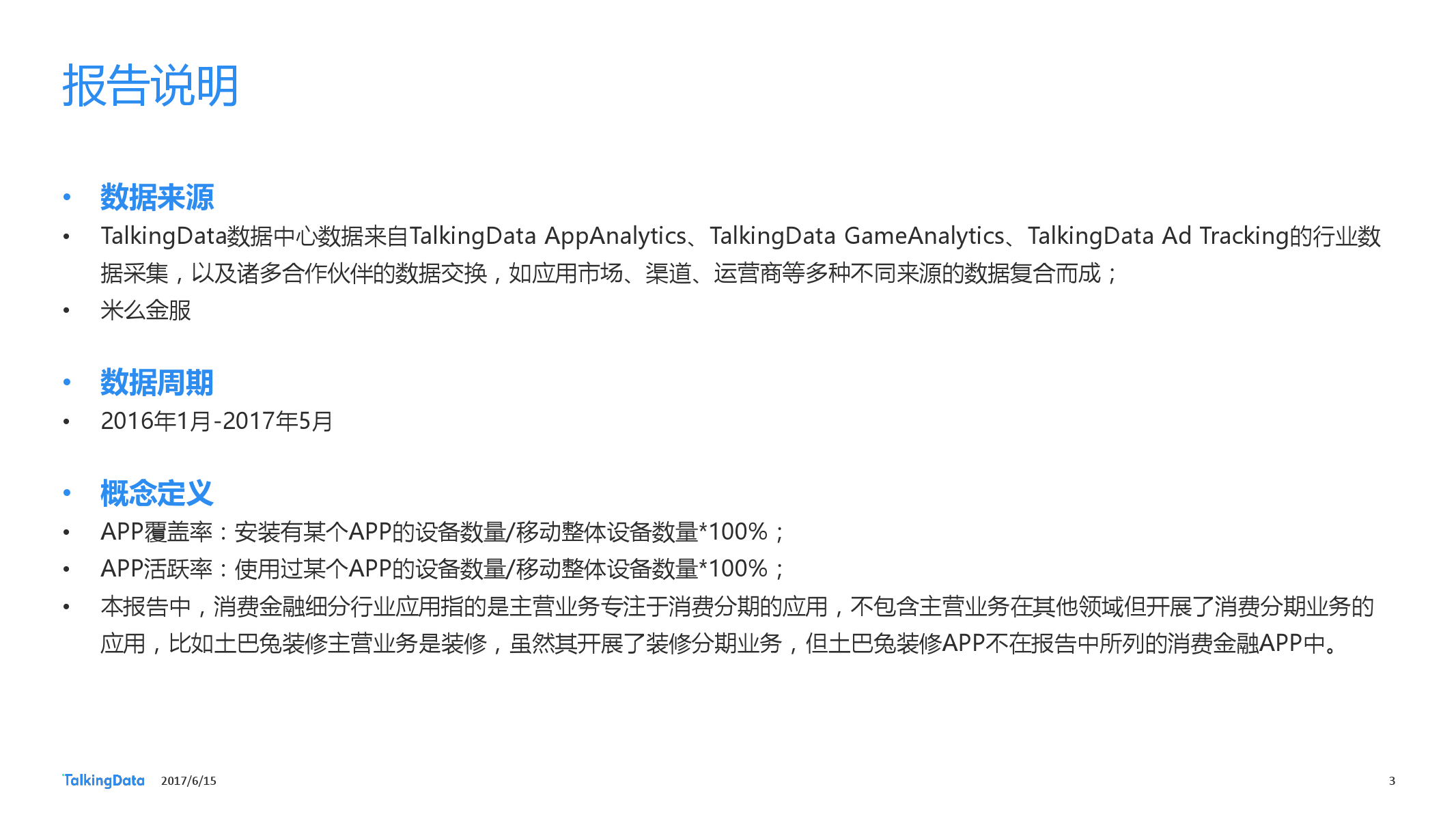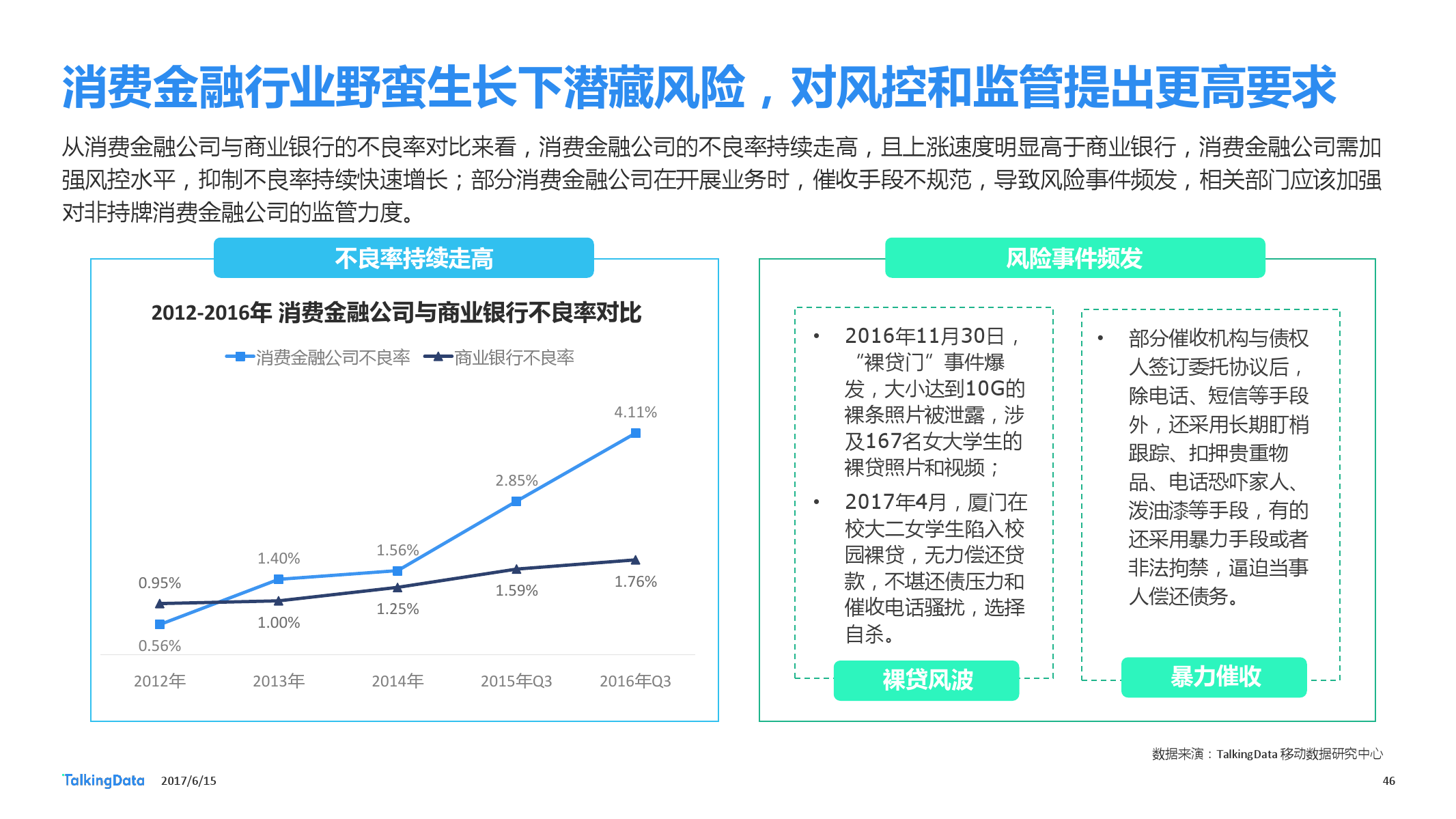 在此背景下,TalkingData 联合米么金服推出《2017年消费金融行业发展报告》,报告从行业发展现状及发展趋势、应用发展情况等方面对消费金融行业进行分析,同时选取了银行信用卡、现金贷以及医美分期等消费金融细分行业,对其用户进行画像洞察,希望能对消费金融行业从业者起到一定参考作用。