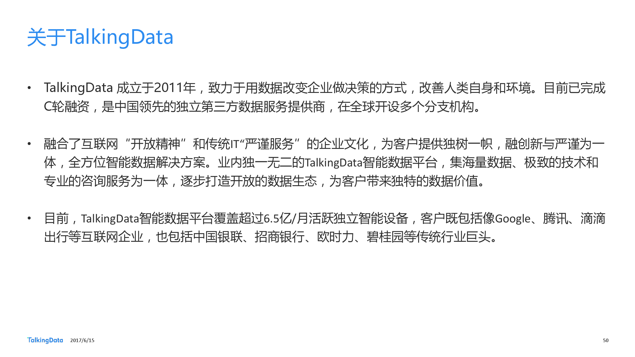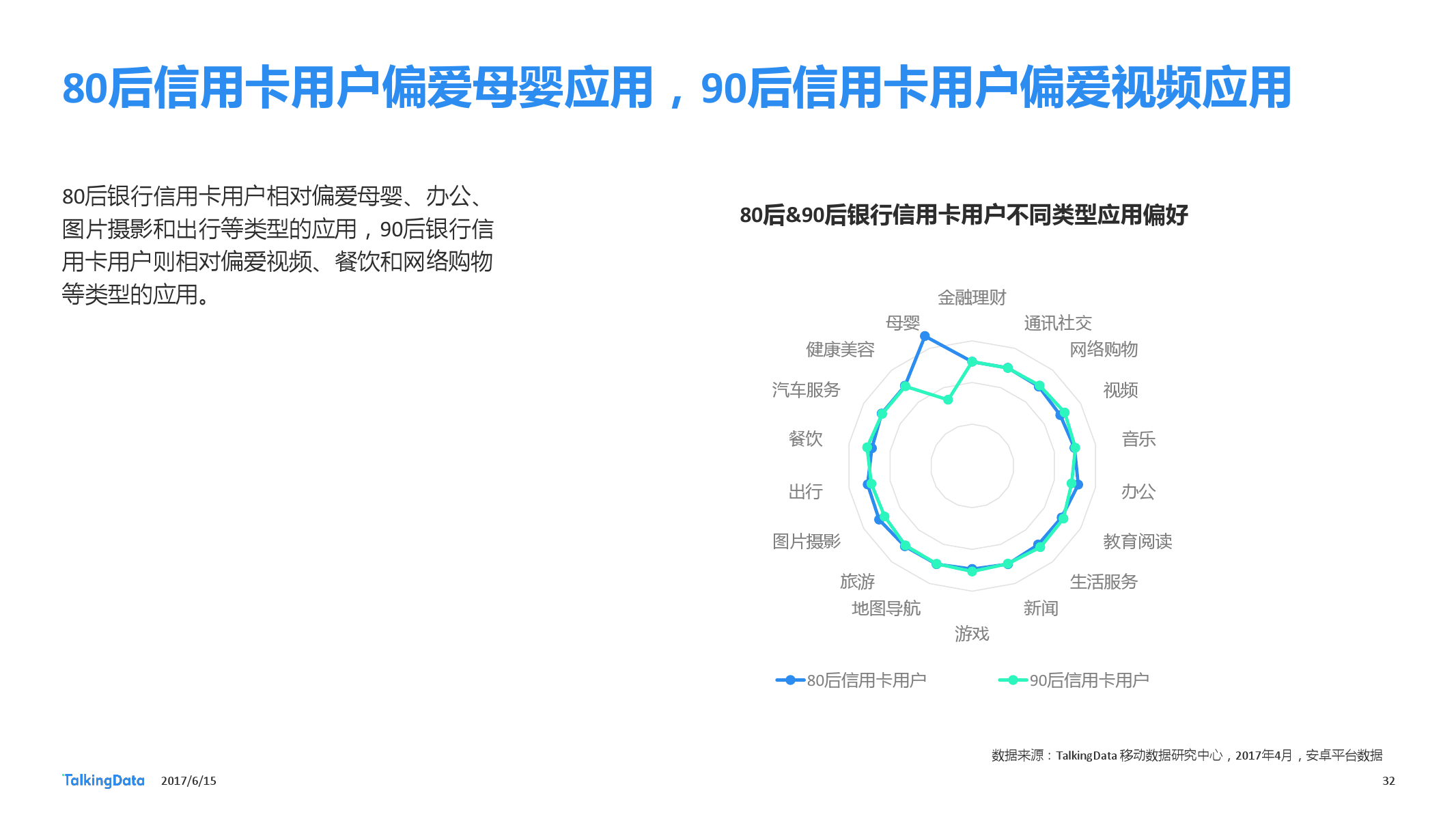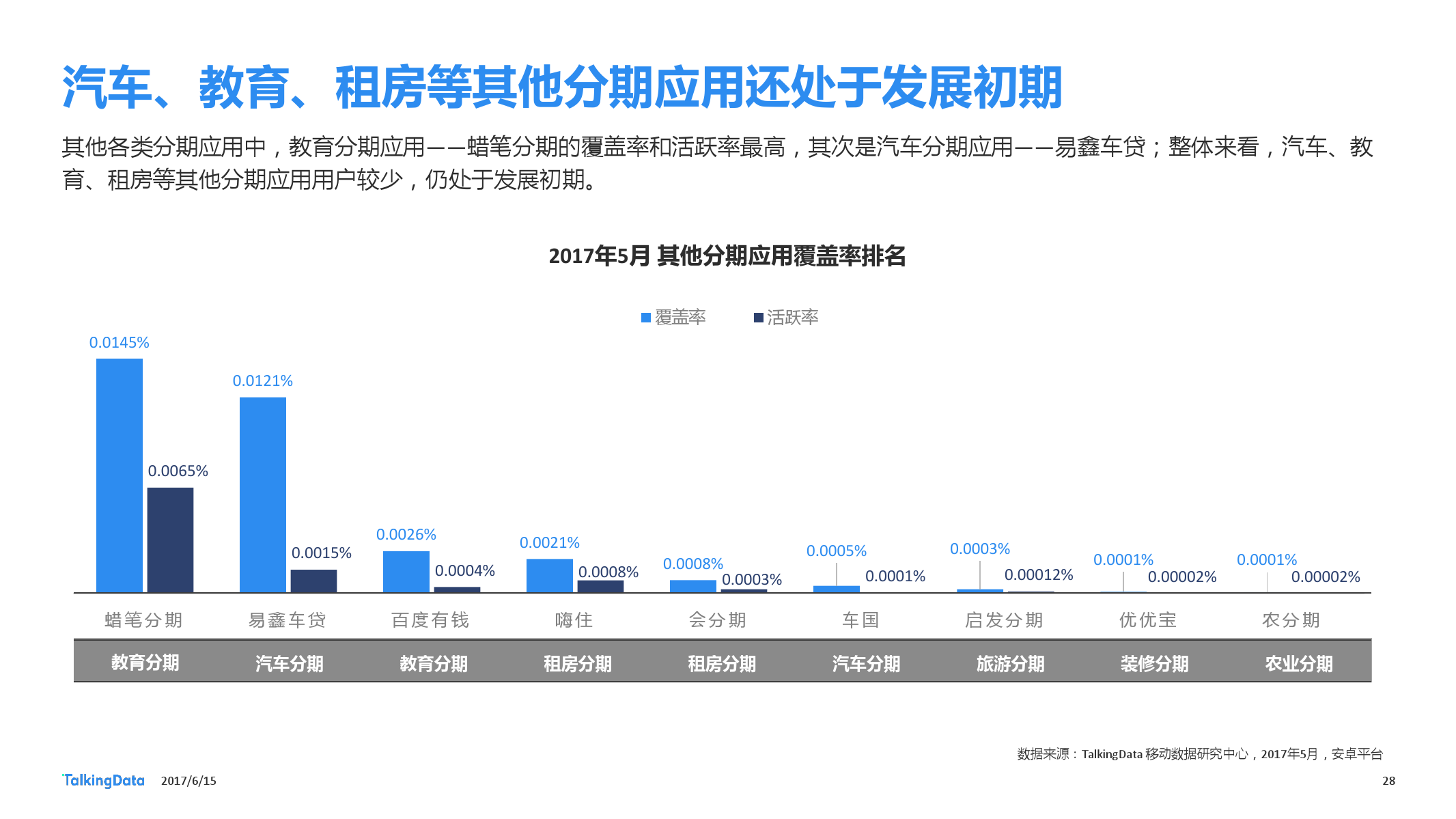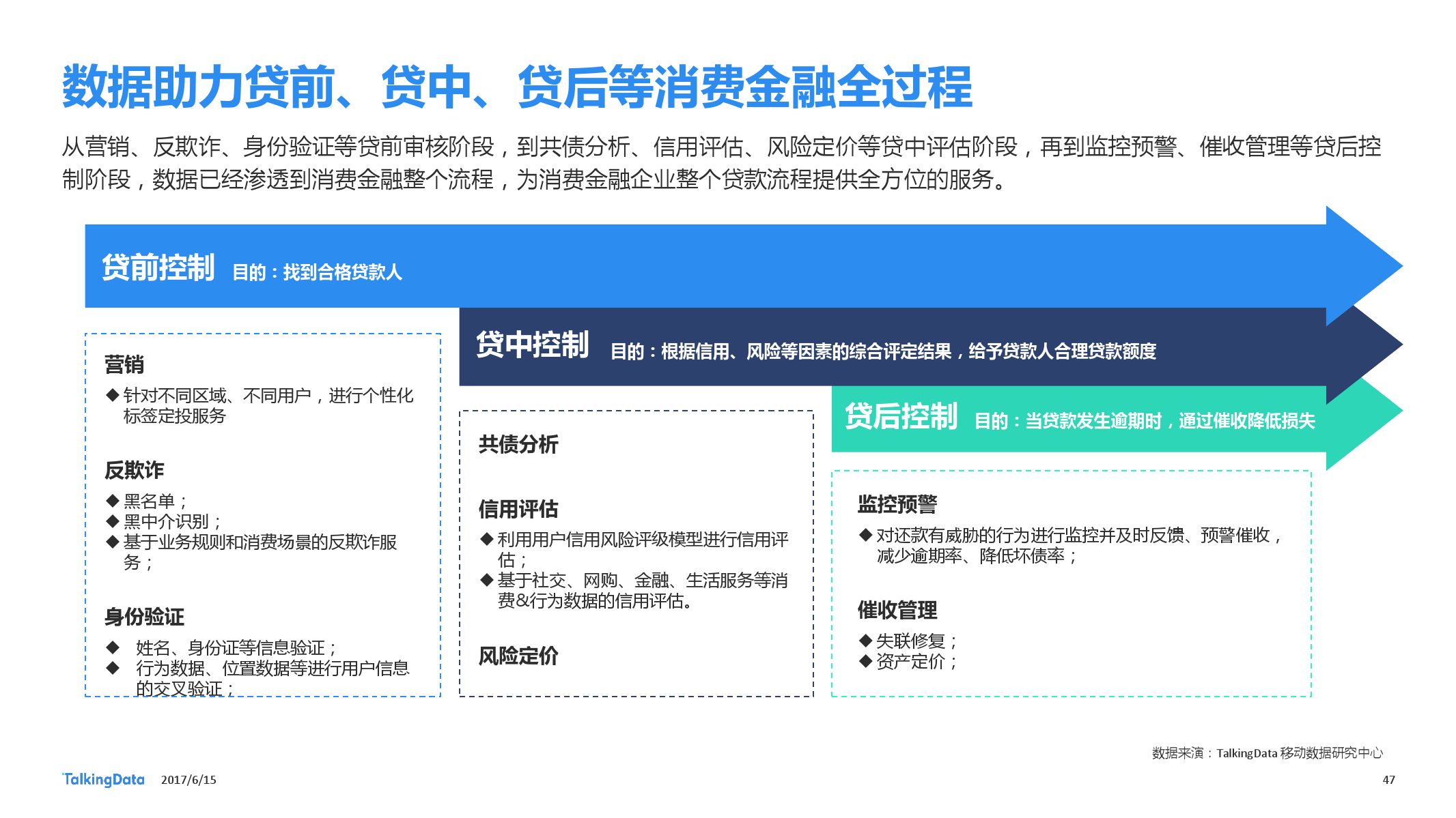 在此背景下,TalkingData 联合米么金服推出《2017年消费金融行业发展报告》,报告从行业发展现状及发展趋势、应用发展情况等方面对消费金融行业进行分析,同时选取了银行信用卡、现金贷以及医美分期等消费金融细分行业,对其用户进行画像洞察,希望能对消费金融行业从业者起到一定参考作用。