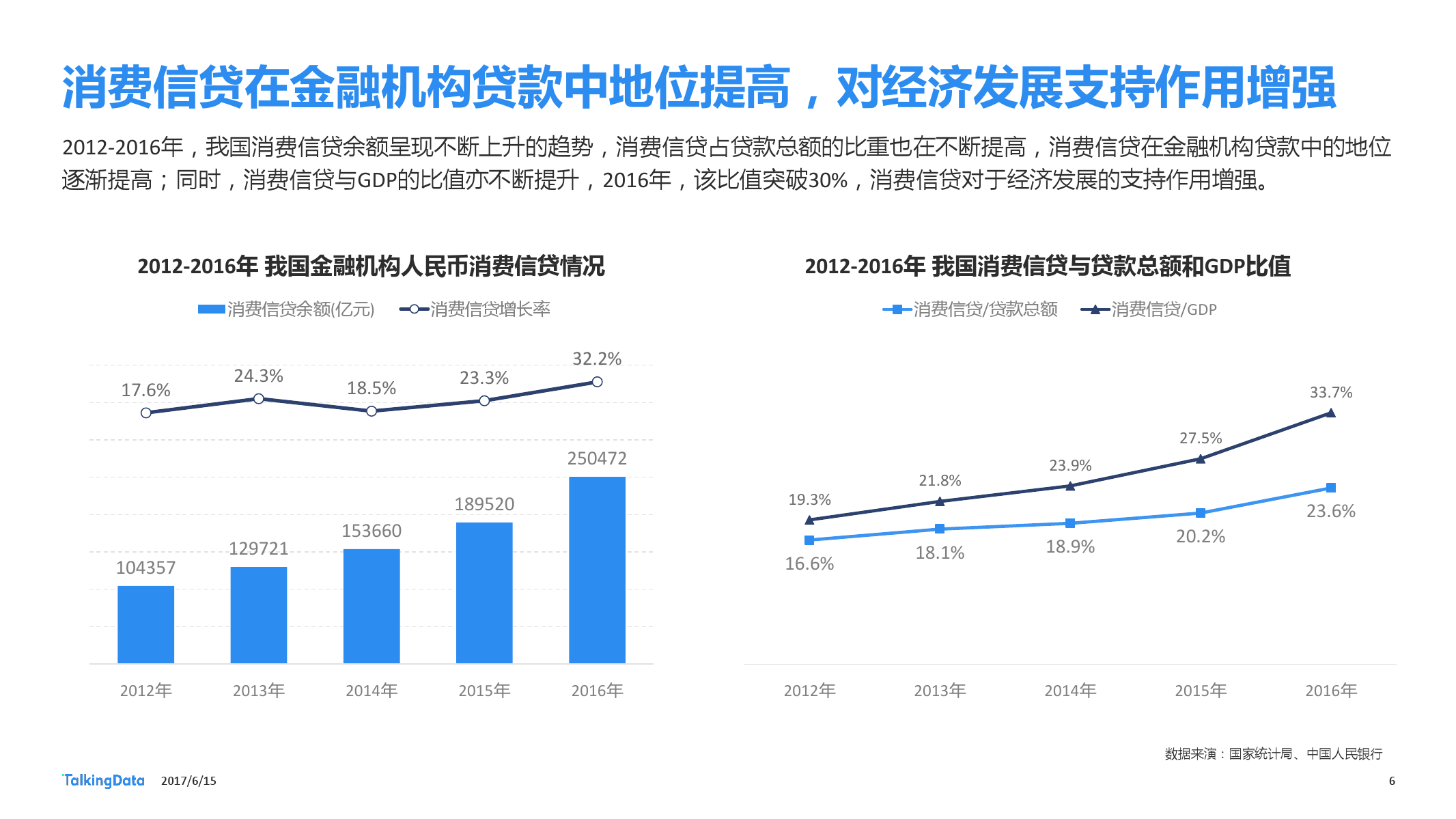 随着收入与支出的双双提高,居民消费水平不断提升,国民对于消费升级的诉求不断发酵,由此带来消费性贷款的持续走高;同时,监管机构及政府推出多项政策助力消费金融的发展,2009年银监会发布《消费金融公司试点管理办法》,消费金融公司应运而生,2013年国务院强调要助推消费升级,创新金融服务,并提出鼓励民间资本设立消费金融公司,2016年政府工作报告中再次提及消费金融,为消费金融的发展带来新的机遇。
