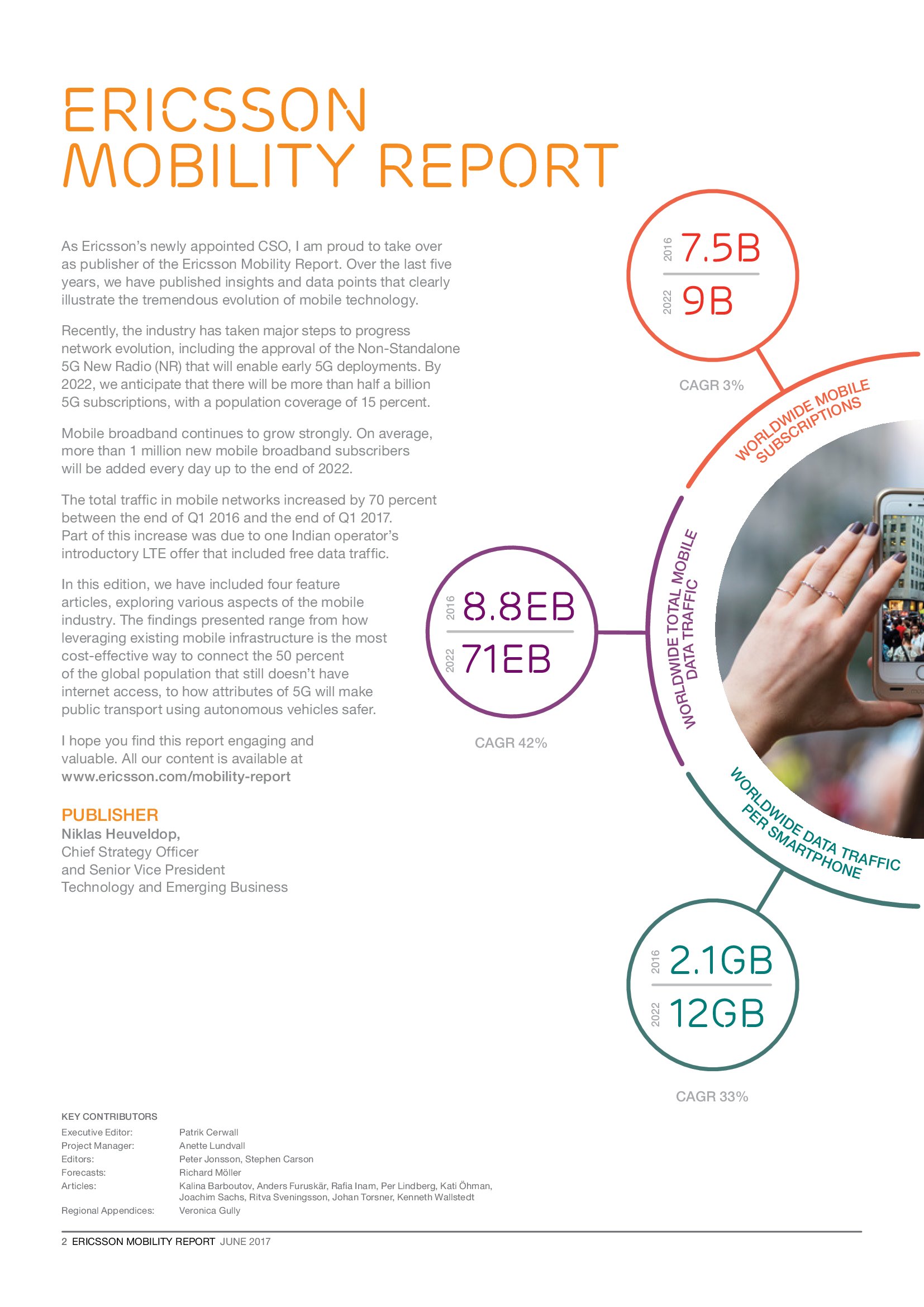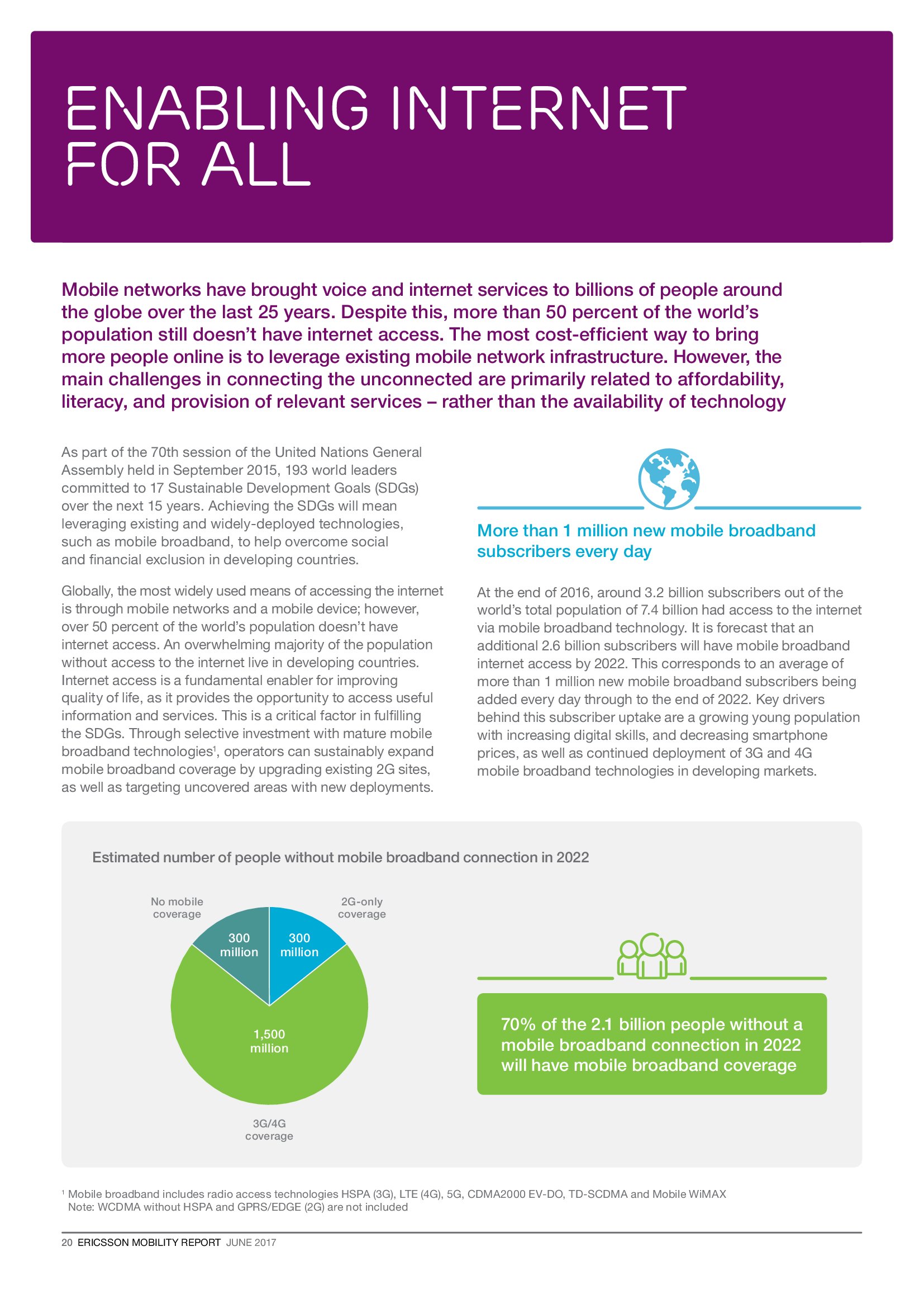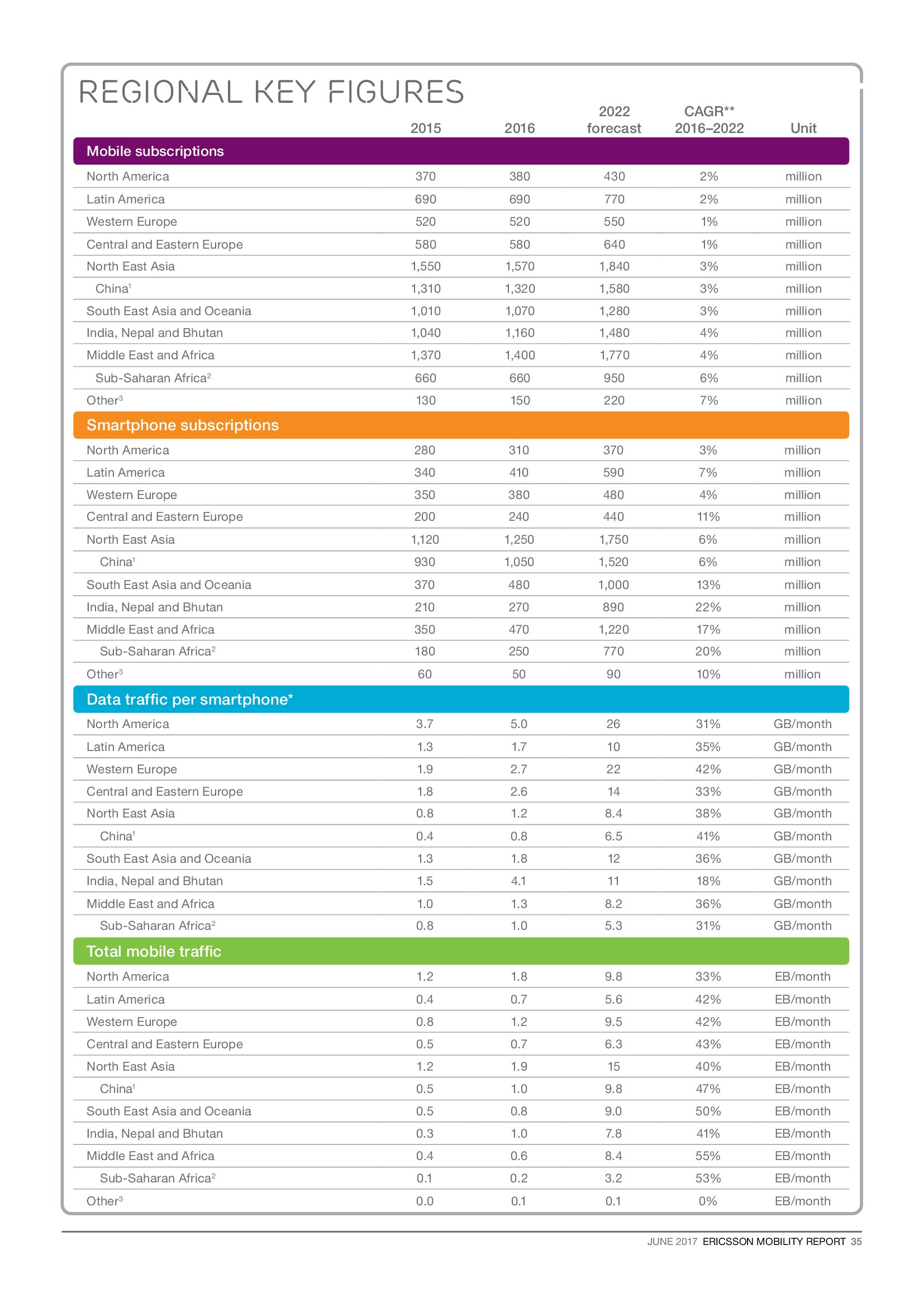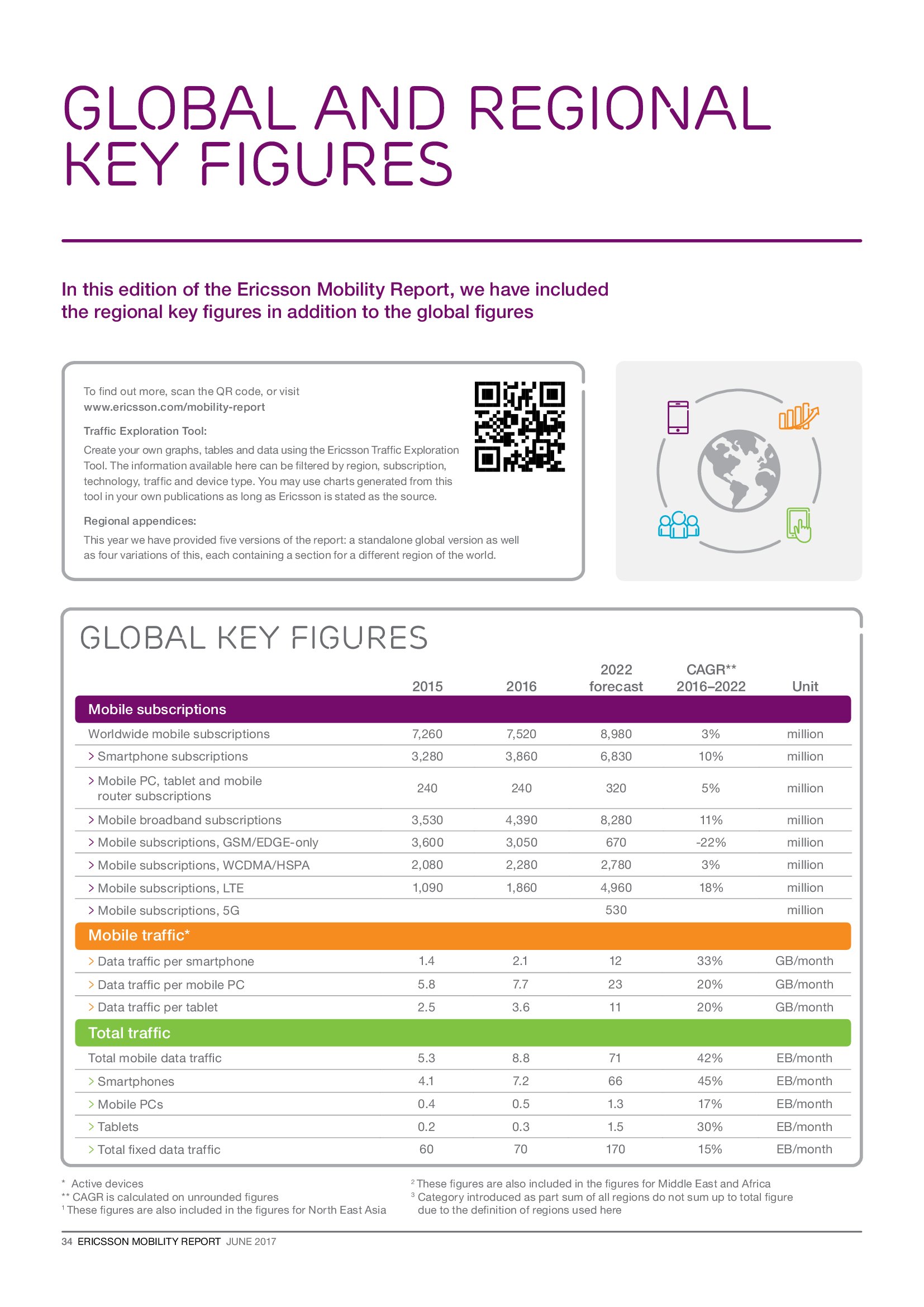 到2022年,全球开户入网手机数量将达到90亿,移动宽带用户将达到83亿人,独立手机用户将达到62亿人。