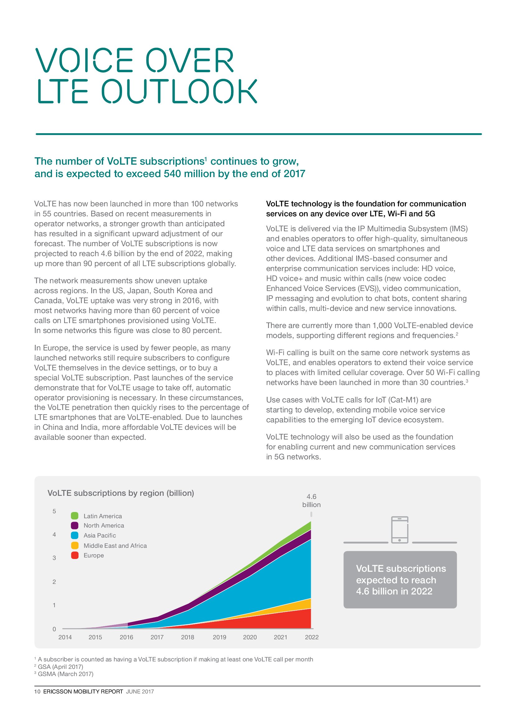 2017年,VoLTE用户数量将继续增长,到年底将超过5.4亿人。