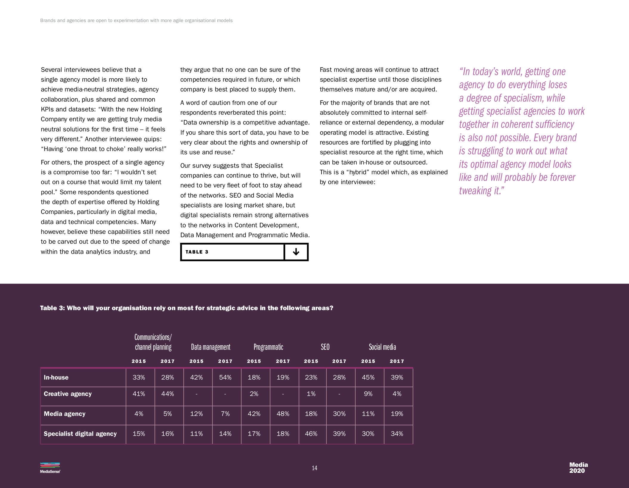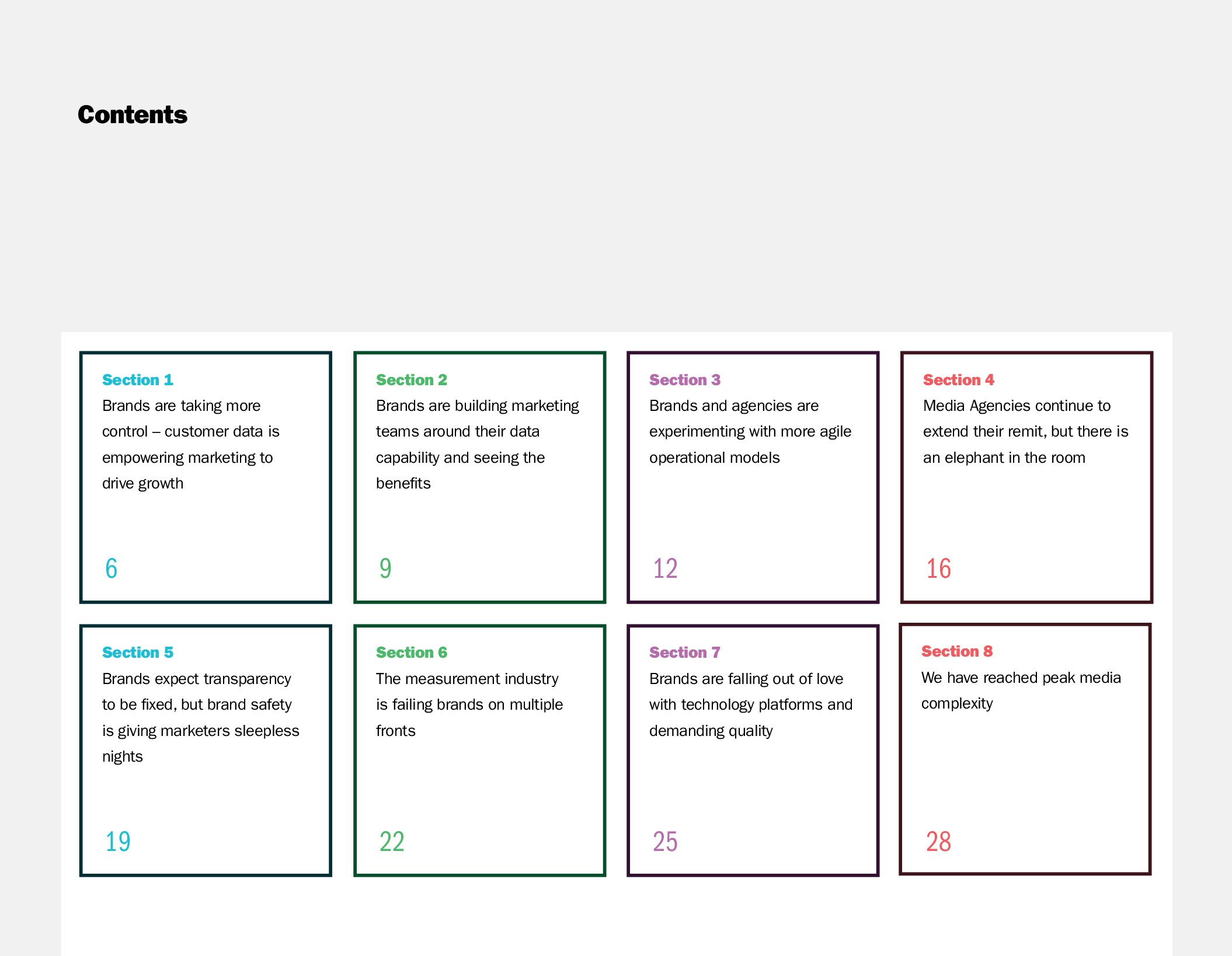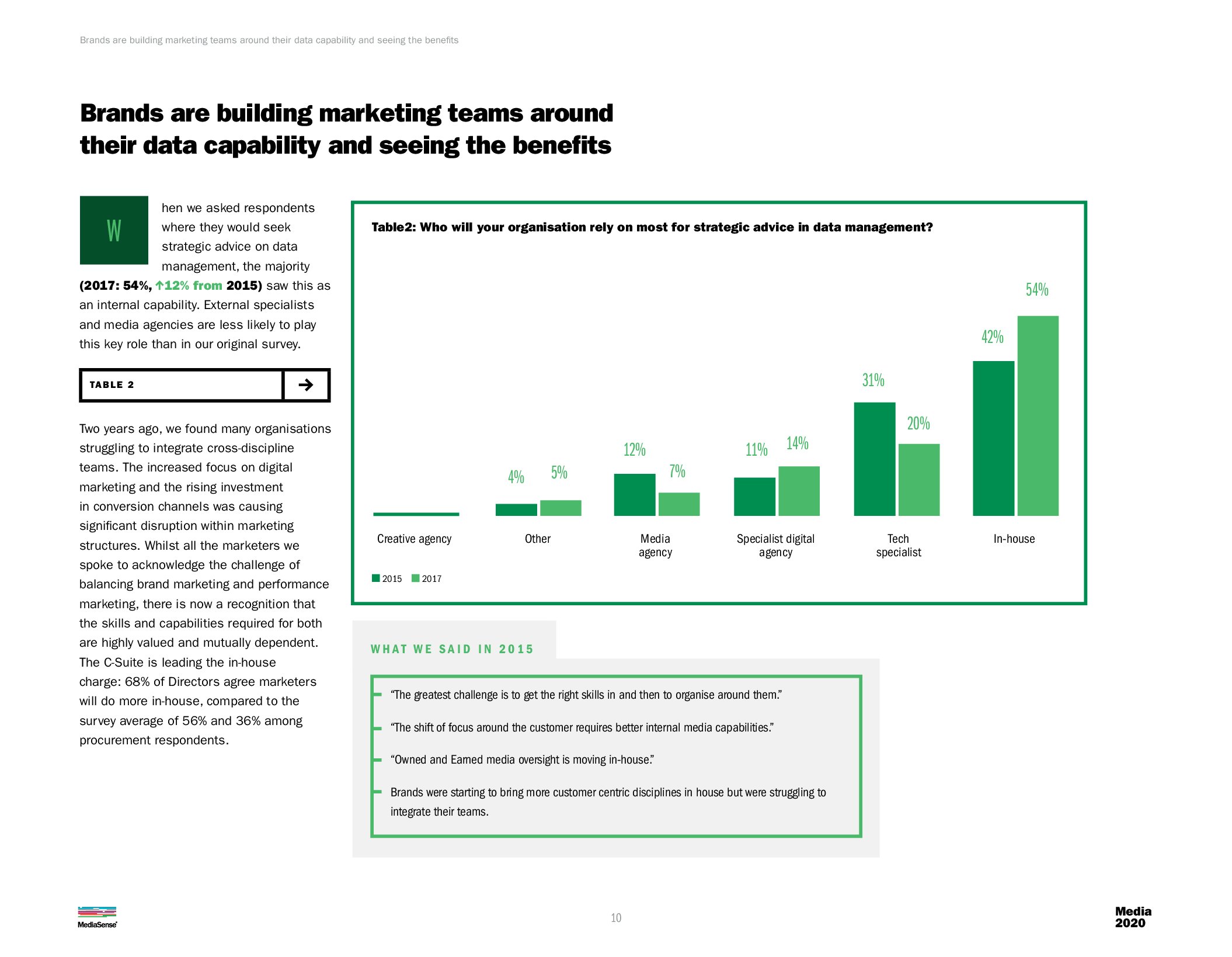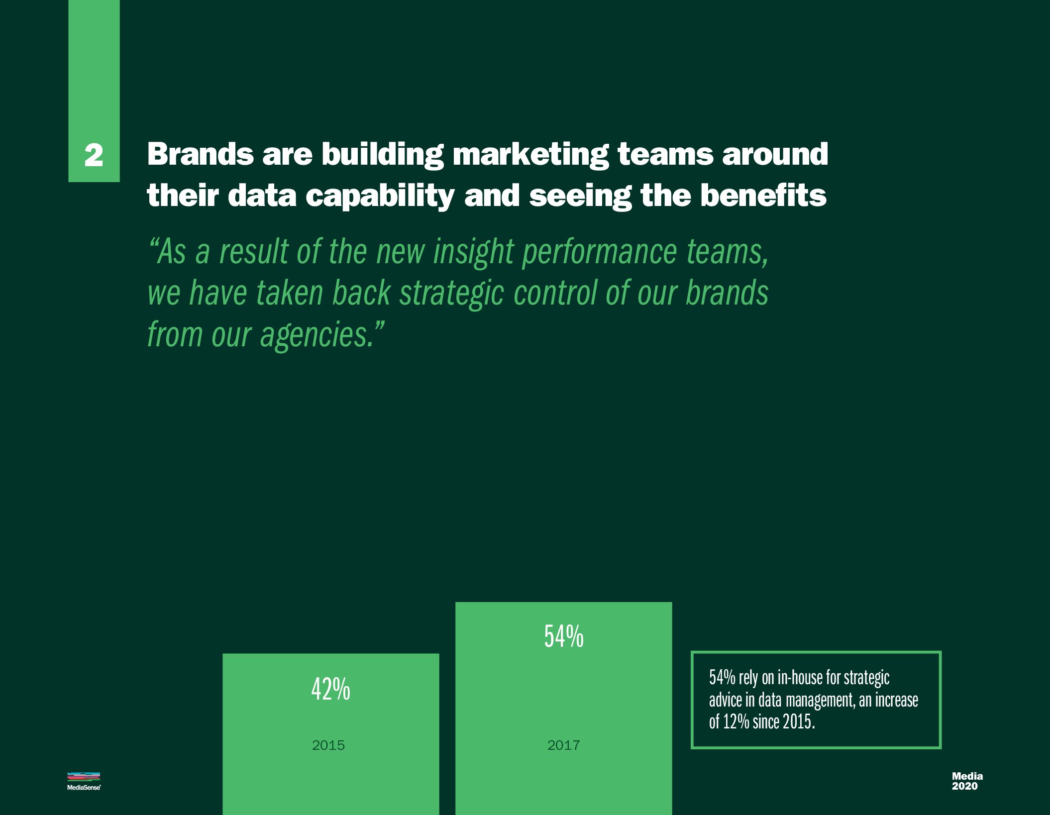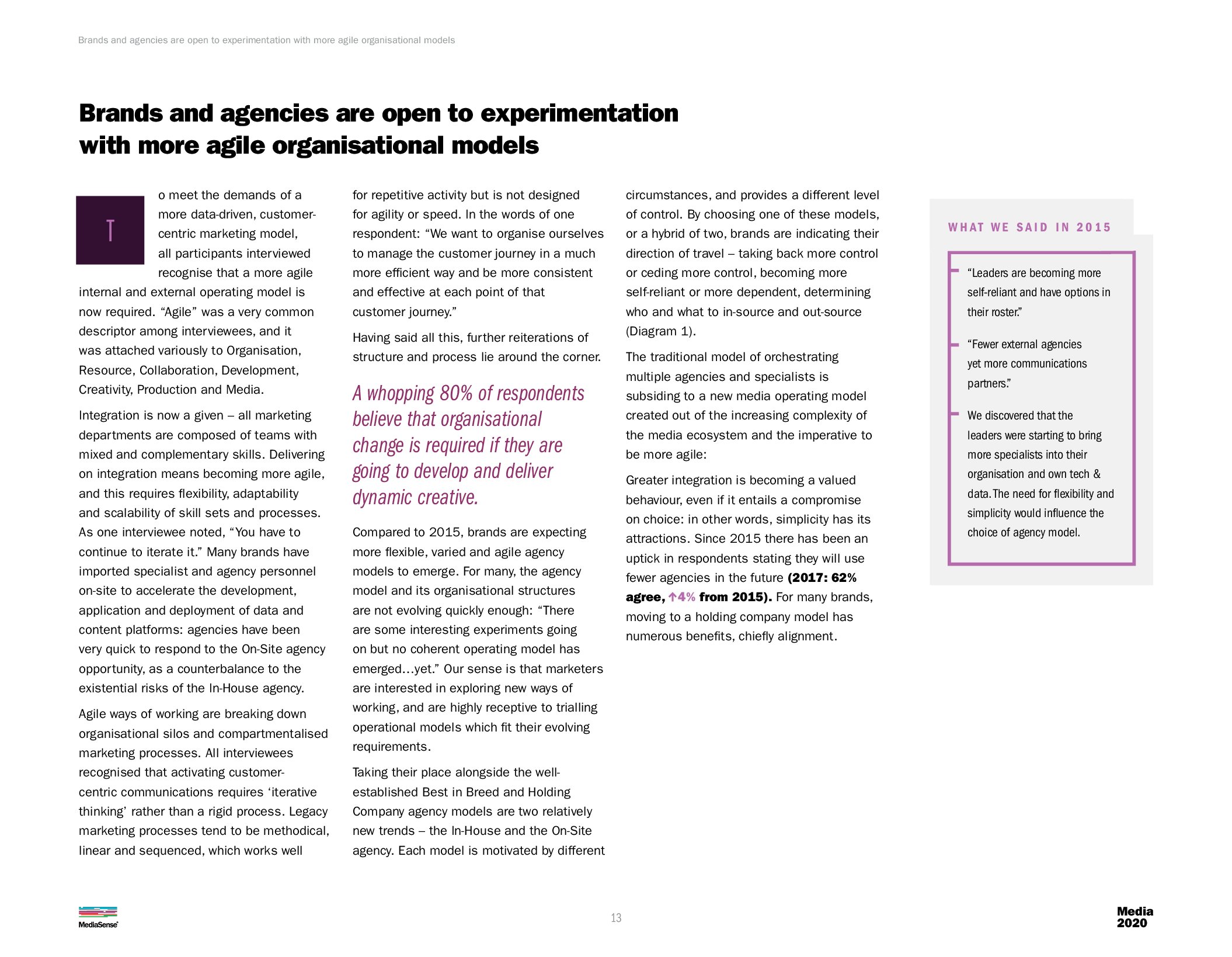 - 品牌和广告商正在测试更敏捷的操作模式,但是,超过80%的受访者认为重大组织调整仍然是必须的。