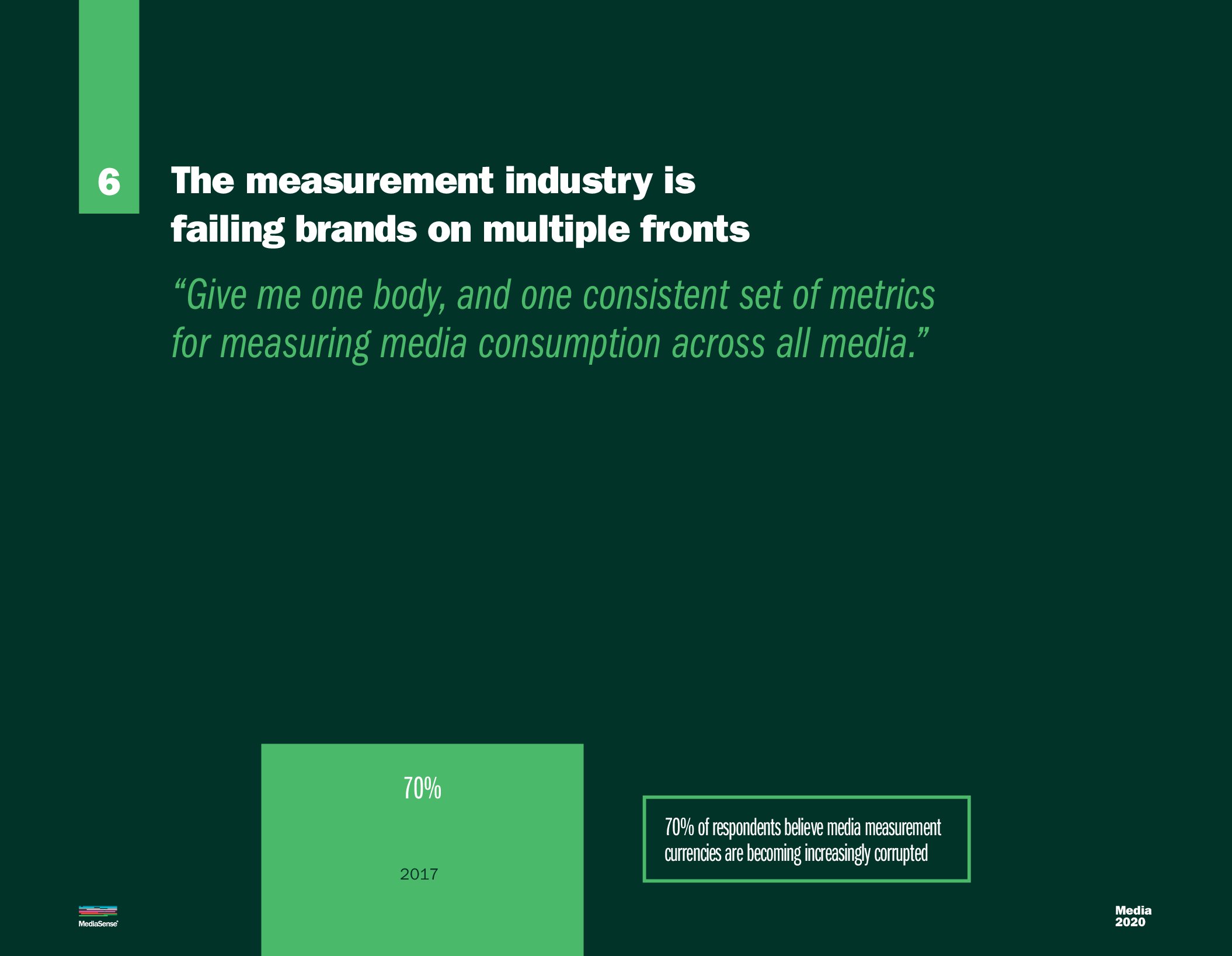 - 测量让品牌失望。数据变得前所未有的重要,但是,测量却不可靠。