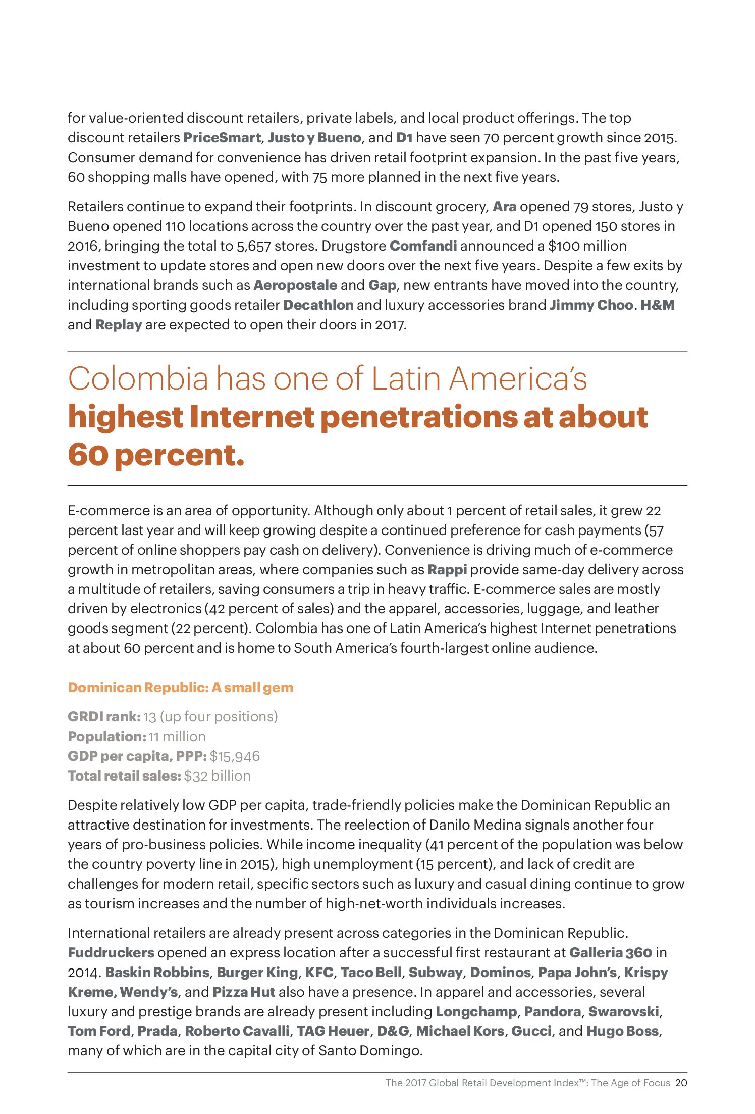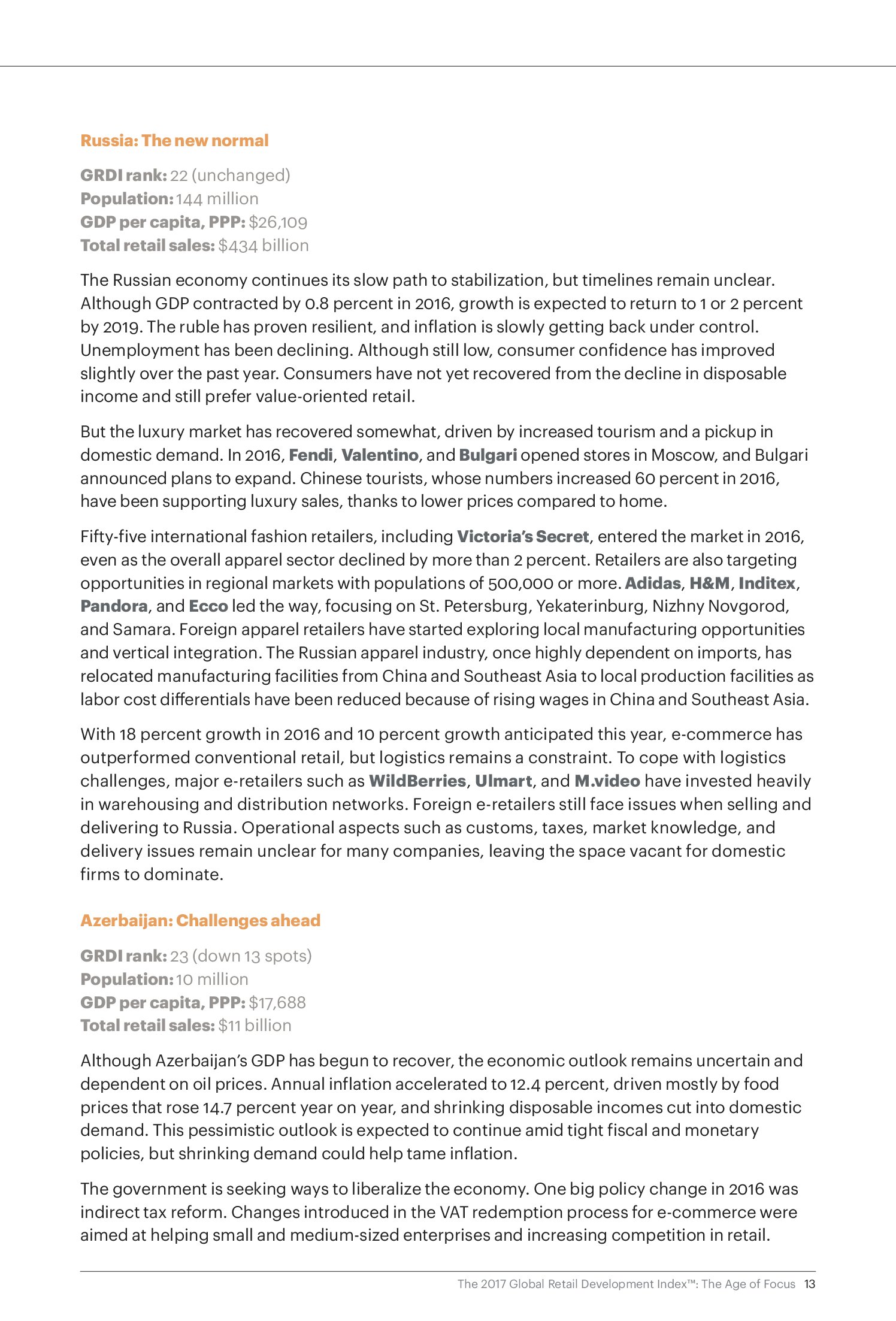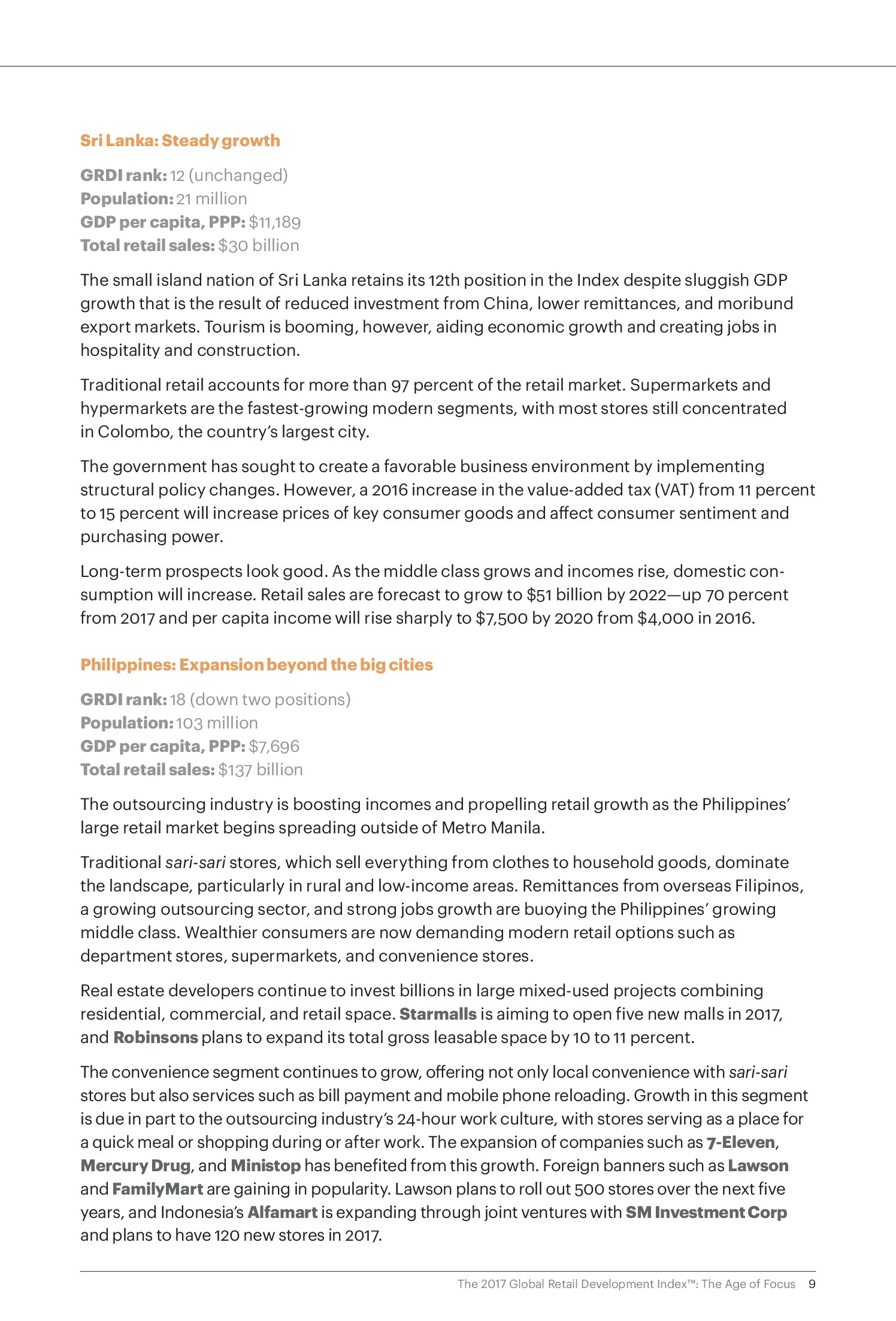 数据显示,亚太地区已经成为商业发展的温床。GRDI排名前十位的国家中,有一半在亚太地区,包括印度、中国、马来西亚、越南和印度尼西亚。特别是中国和印度,拥有庞大的人口,零售总额达数万亿,经济和政治风险相对较低,加上市场潜力巨大,促使这两个国家排名最高。