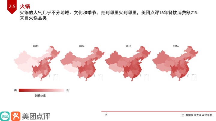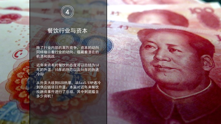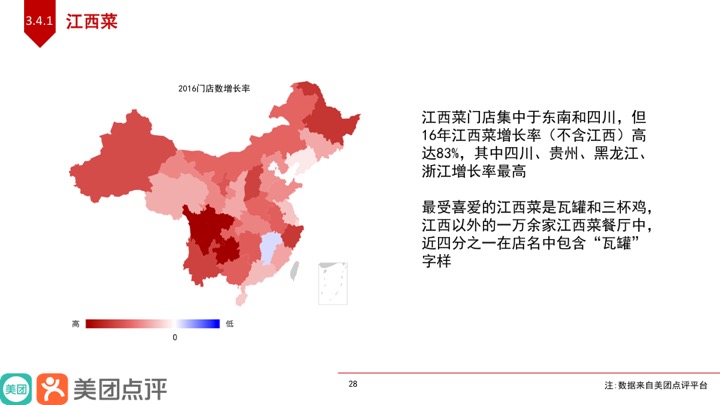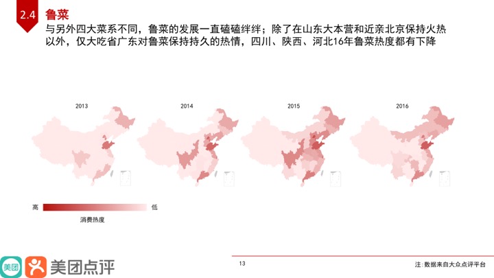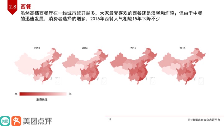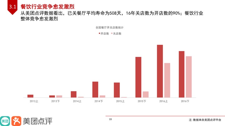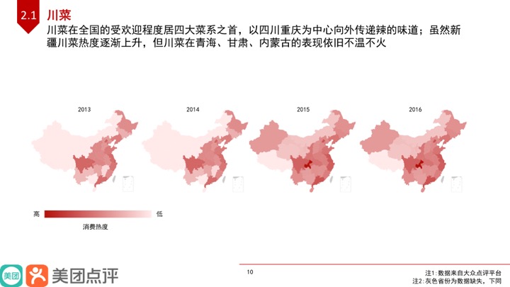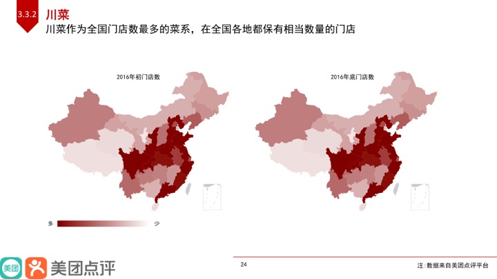 报告显示,川、苏、鲁、粤四大菜系中,川菜在全国的受欢迎程度居四大菜系之首;已关餐厅平均寿命为508天,2016年关店数为开店数的90%,餐饮行业整体竞争越发激烈;资本对餐饮的态度呈现降温趋势——14年升温、15年热恋、16年急速冷却。