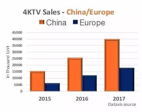 此外,Dataxis预测,到2017年底,欧洲4K电视销量将达到1700万台。