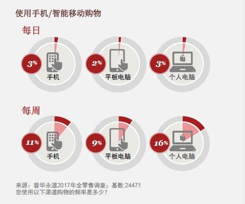 普华永道的美国全球零售及消费品行业主管合伙人SteveBarr说:“我们正处在使用手机的临界点”。“消费者正在非常舒适地使用他们的移动设备,不仅用于搜索价格和产品,还用于完成实际交易。事实上,超过三分之一的美国受访者称使用移动设备完成购买,高于以前的调研比例”。