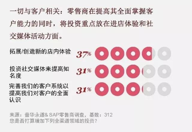 展厅为消费者提供舒适、诱人、甚至豪华的环境,供他们了解产品,听取产品尺寸和款式方面的建议,下单订购。然后,订购的产品从展厅之外的仓库或门店运送到消费者的家中。由于展厅不需要花费与商品的销售和运输等相关的维护费用,对于零售商来说,展厅的配置可以非常经济合算。零售商似乎准备把钱投到门店上。正如普华永道/SAP的零售商调查所显示的一样,37%的零售商表示,他们正计划增加门店体验方面的投资—在针对关于他们想做什么类型的全渠道投资这个问题上,这是最多的回答选项。