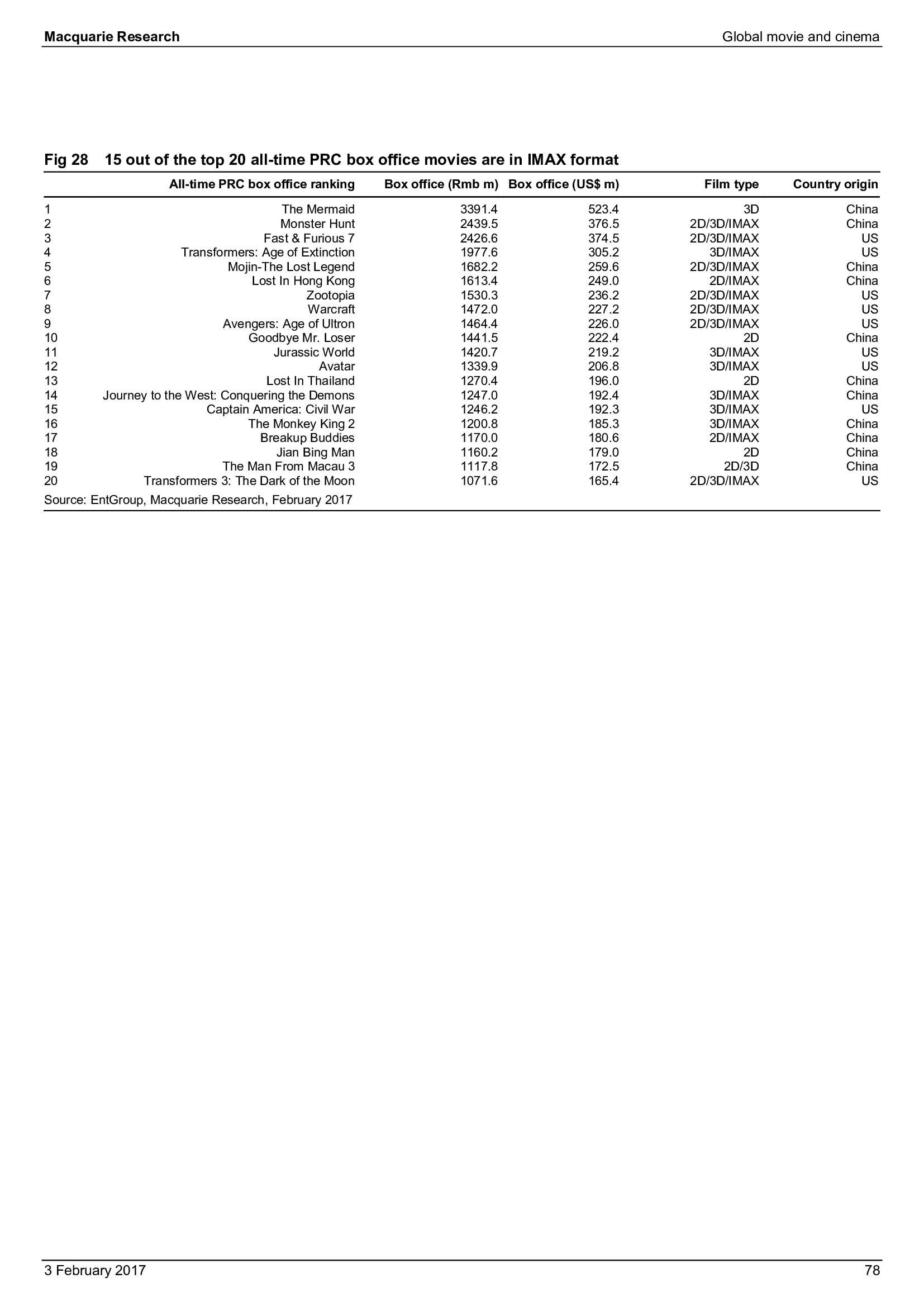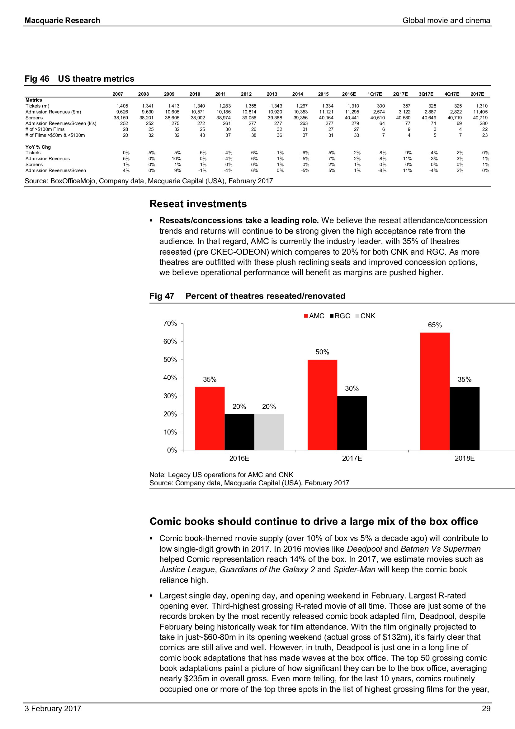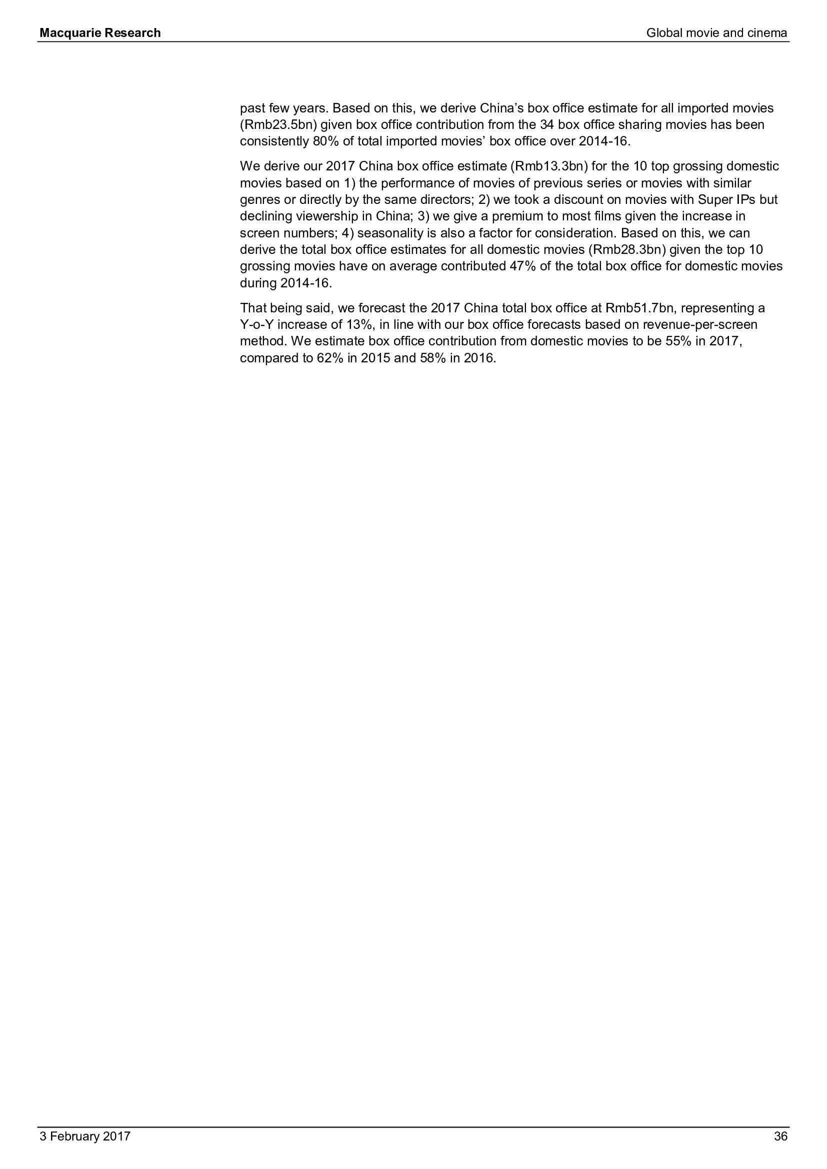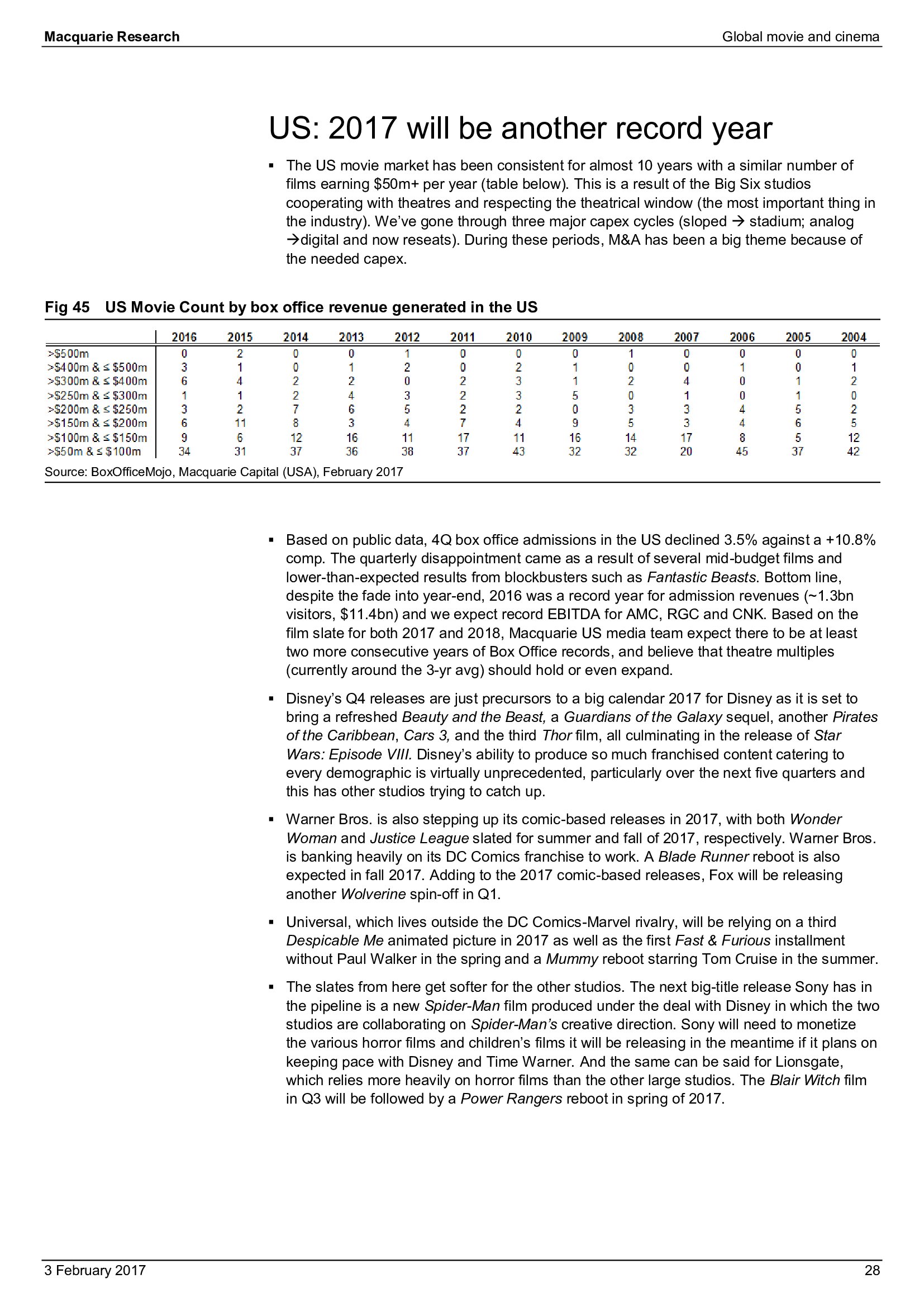 Macquarie Research发布了“2017年全球电影和影院报告”,报告分析了全球电影行业发展趋势。