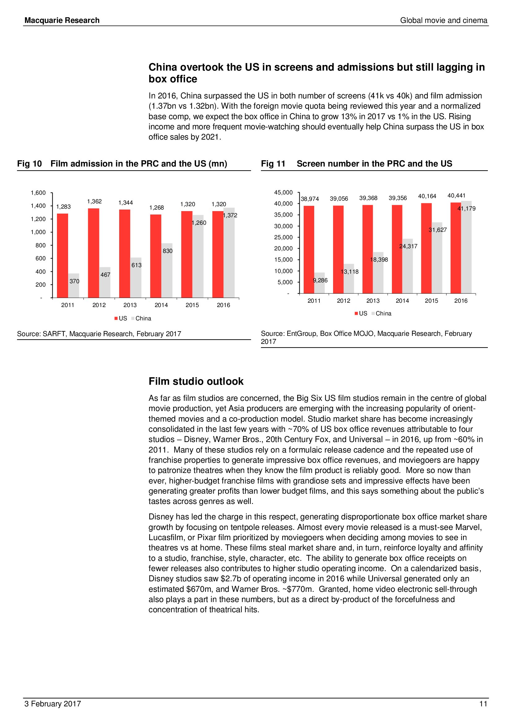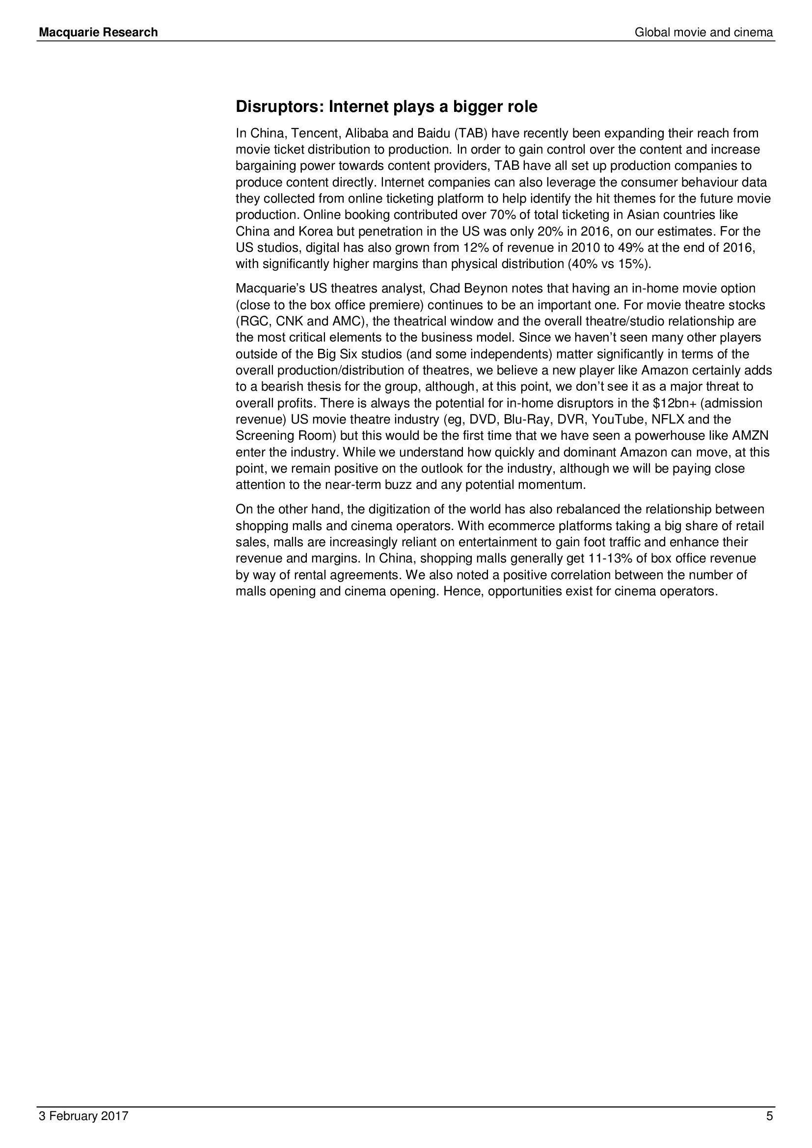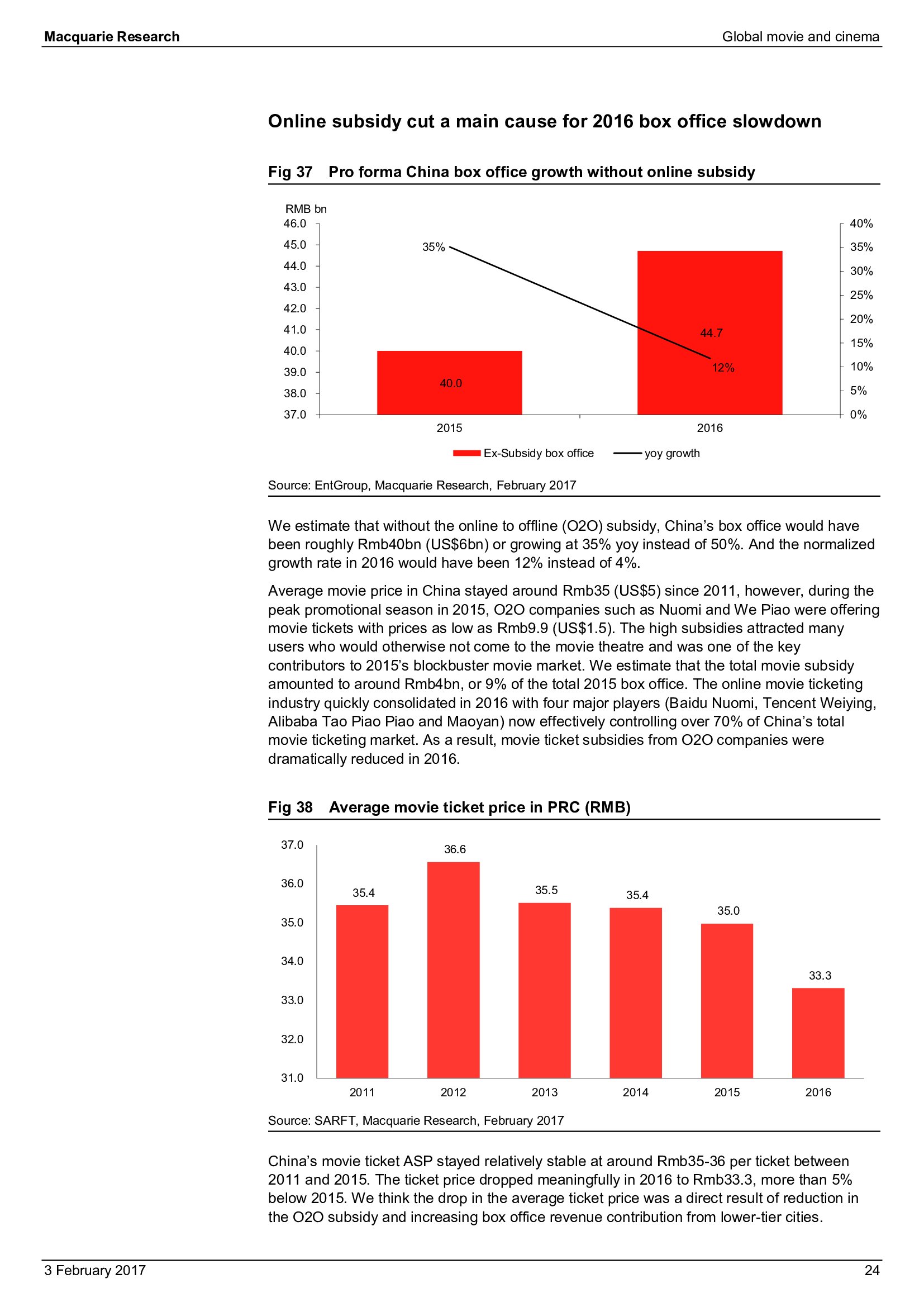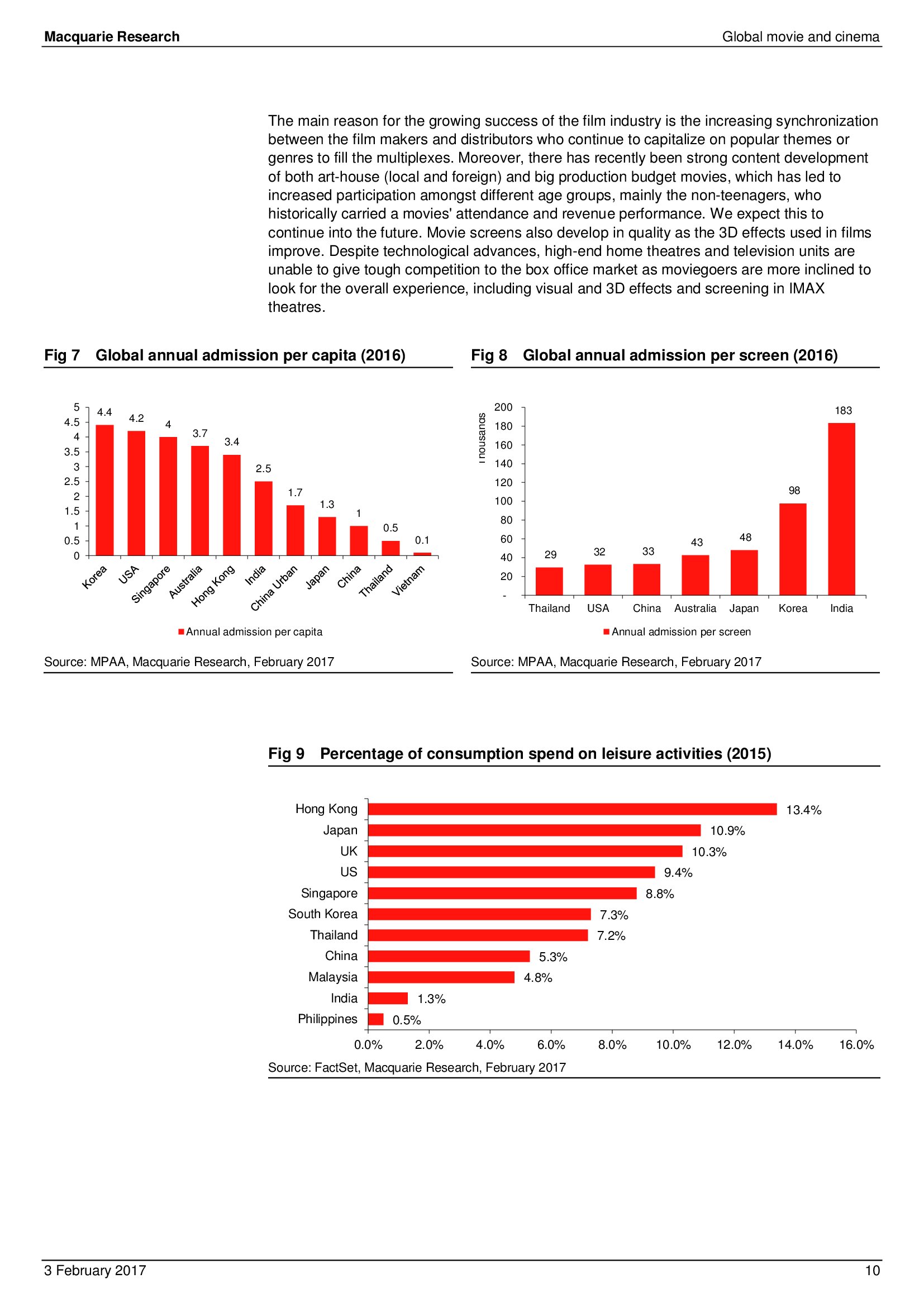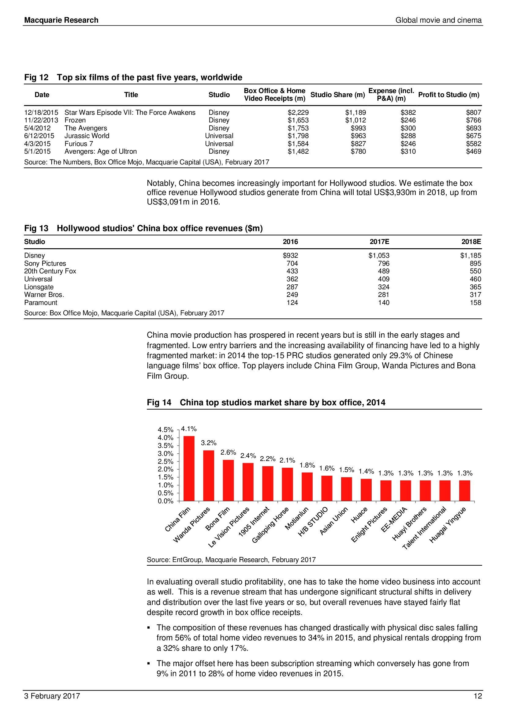 Macquarie Research发布了“2017年全球电影和影院报告”,报告分析了全球电影行业发展趋势。