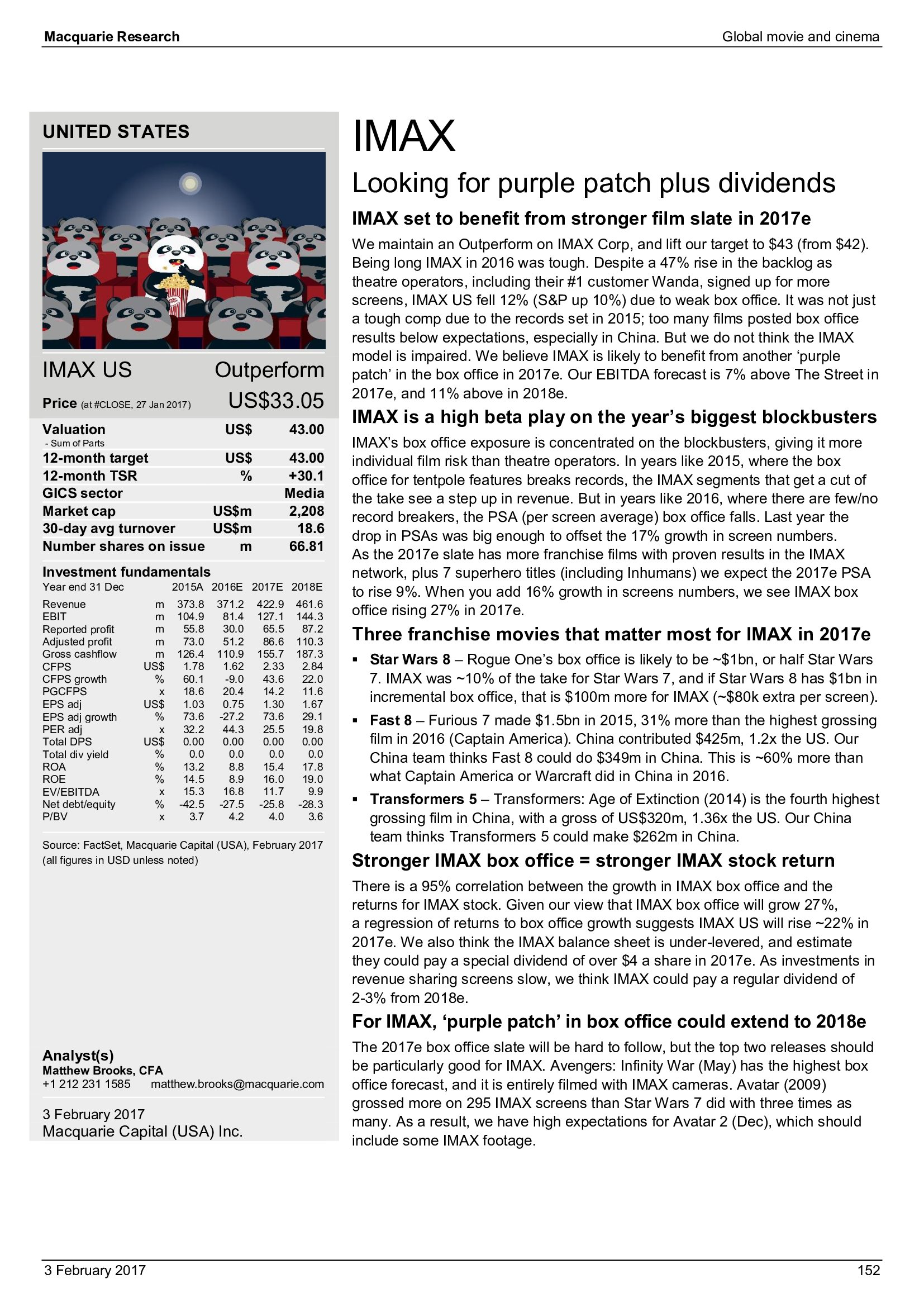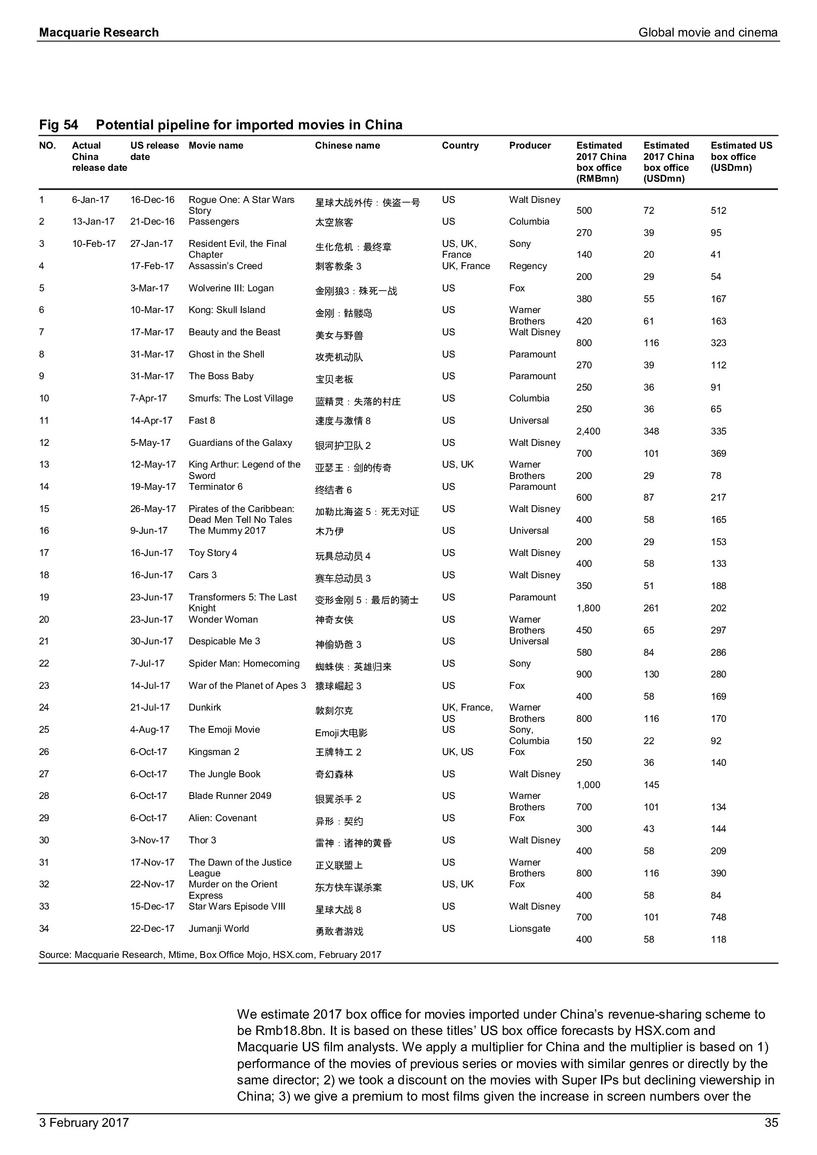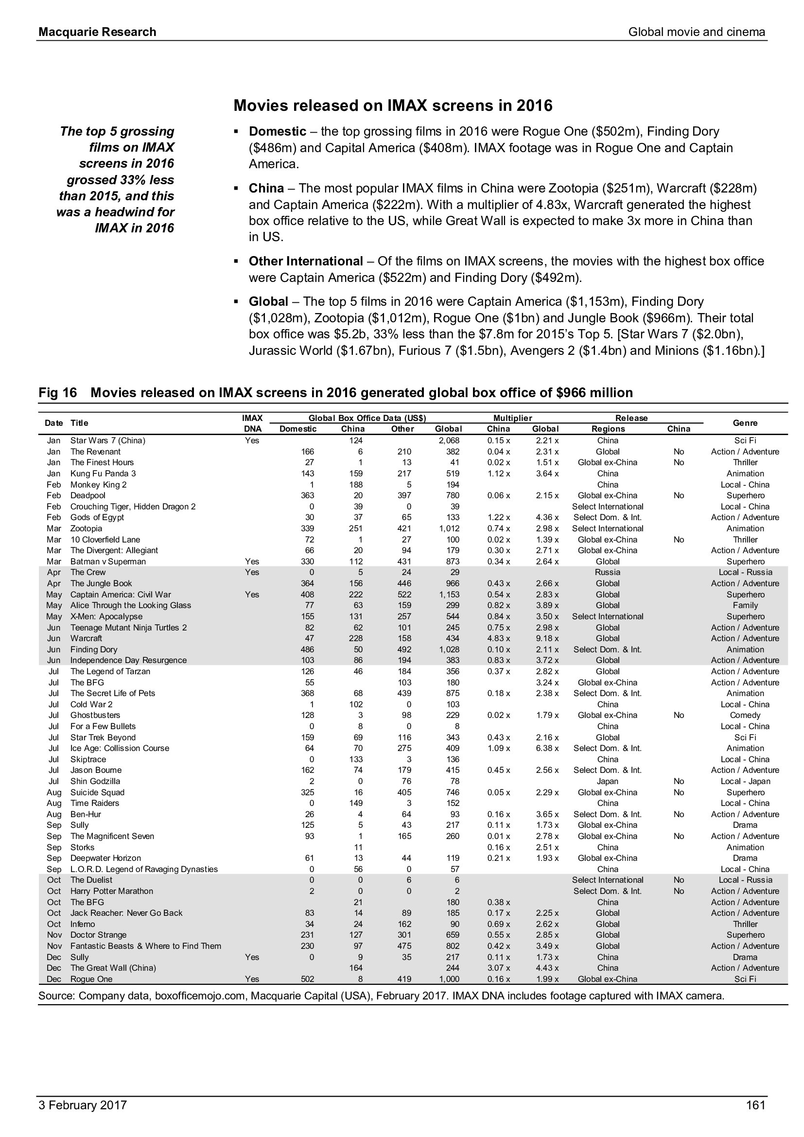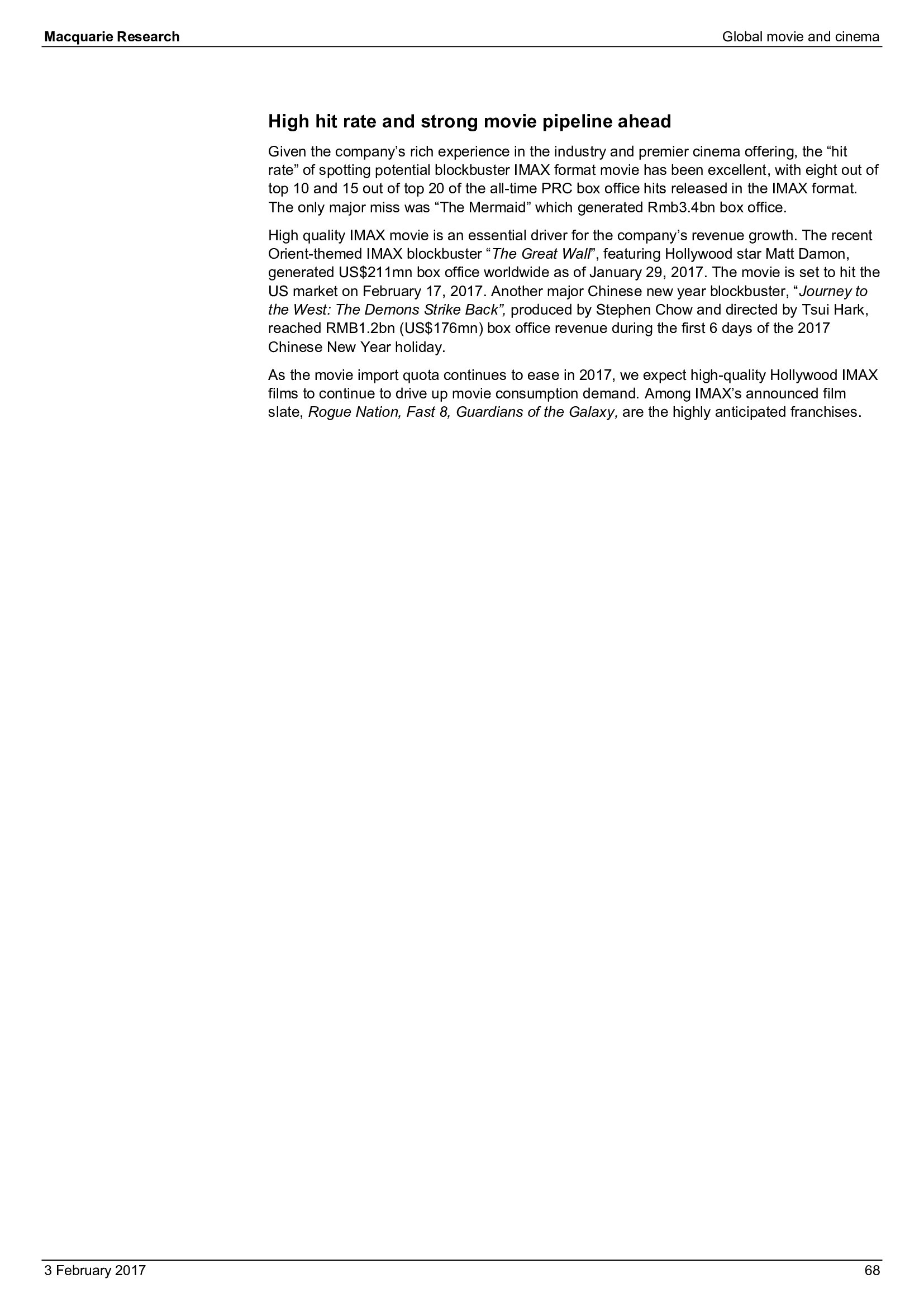 Macquarie Research发布了“2017年全球电影和影院报告”,报告分析了全球电影行业发展趋势。