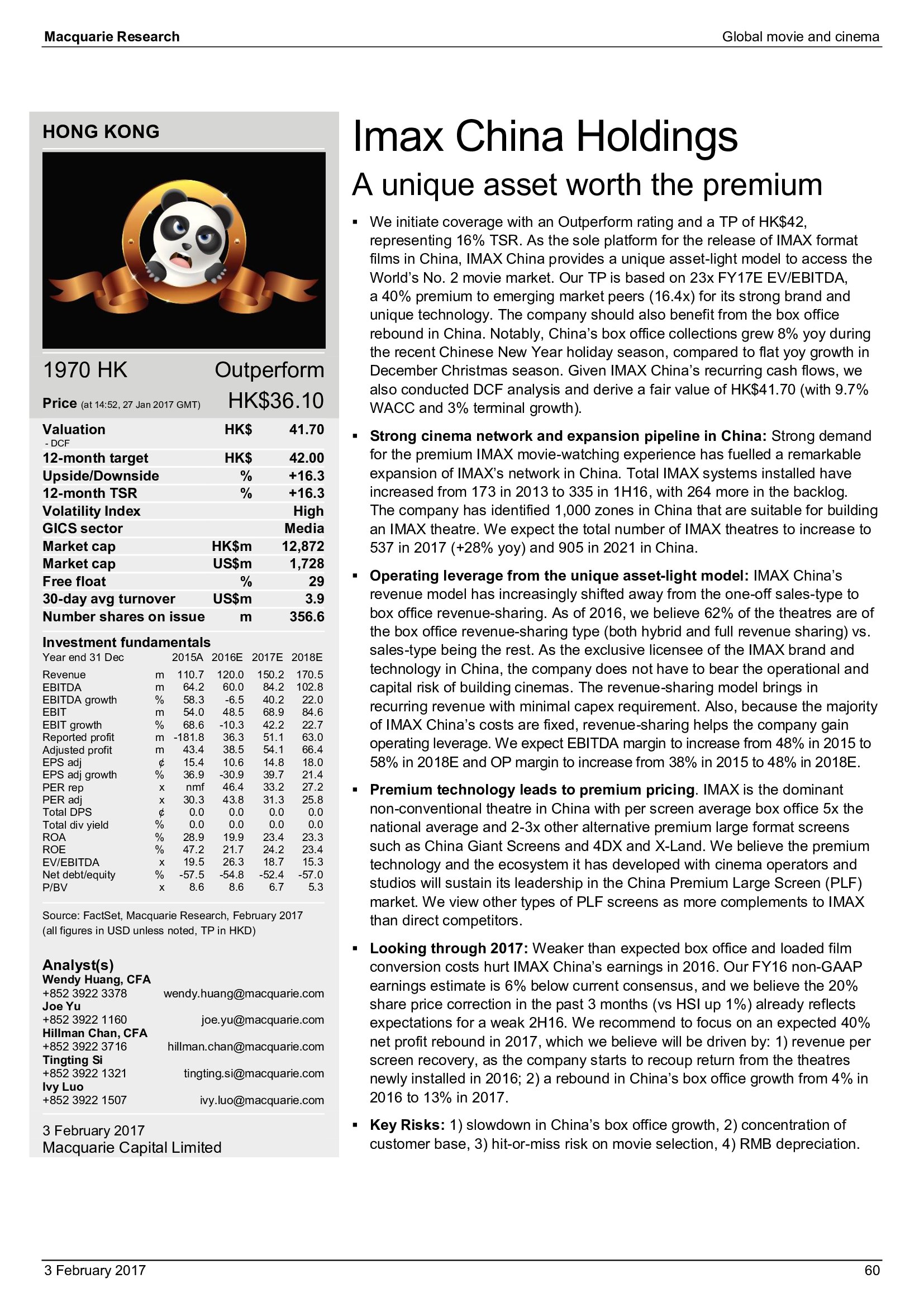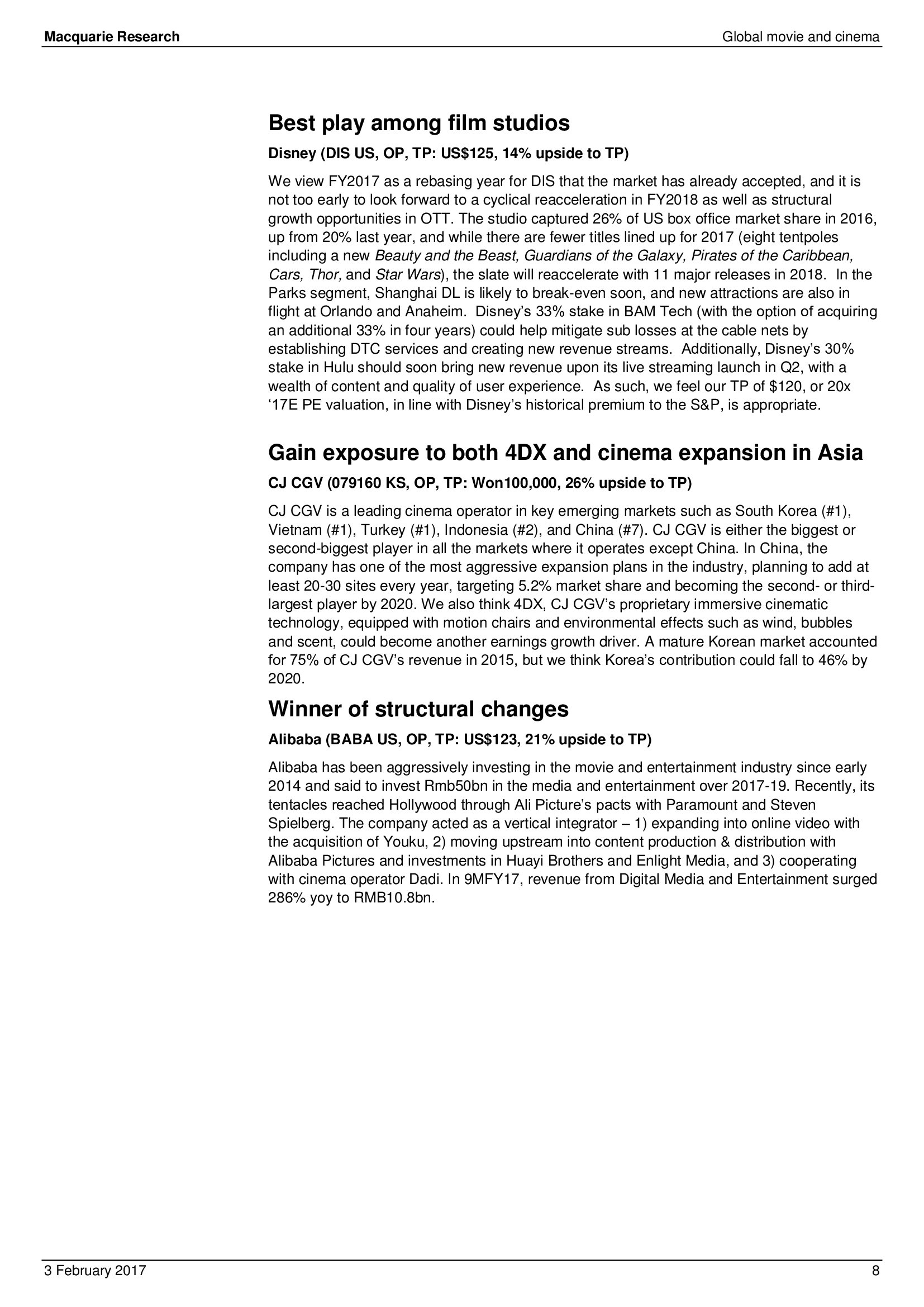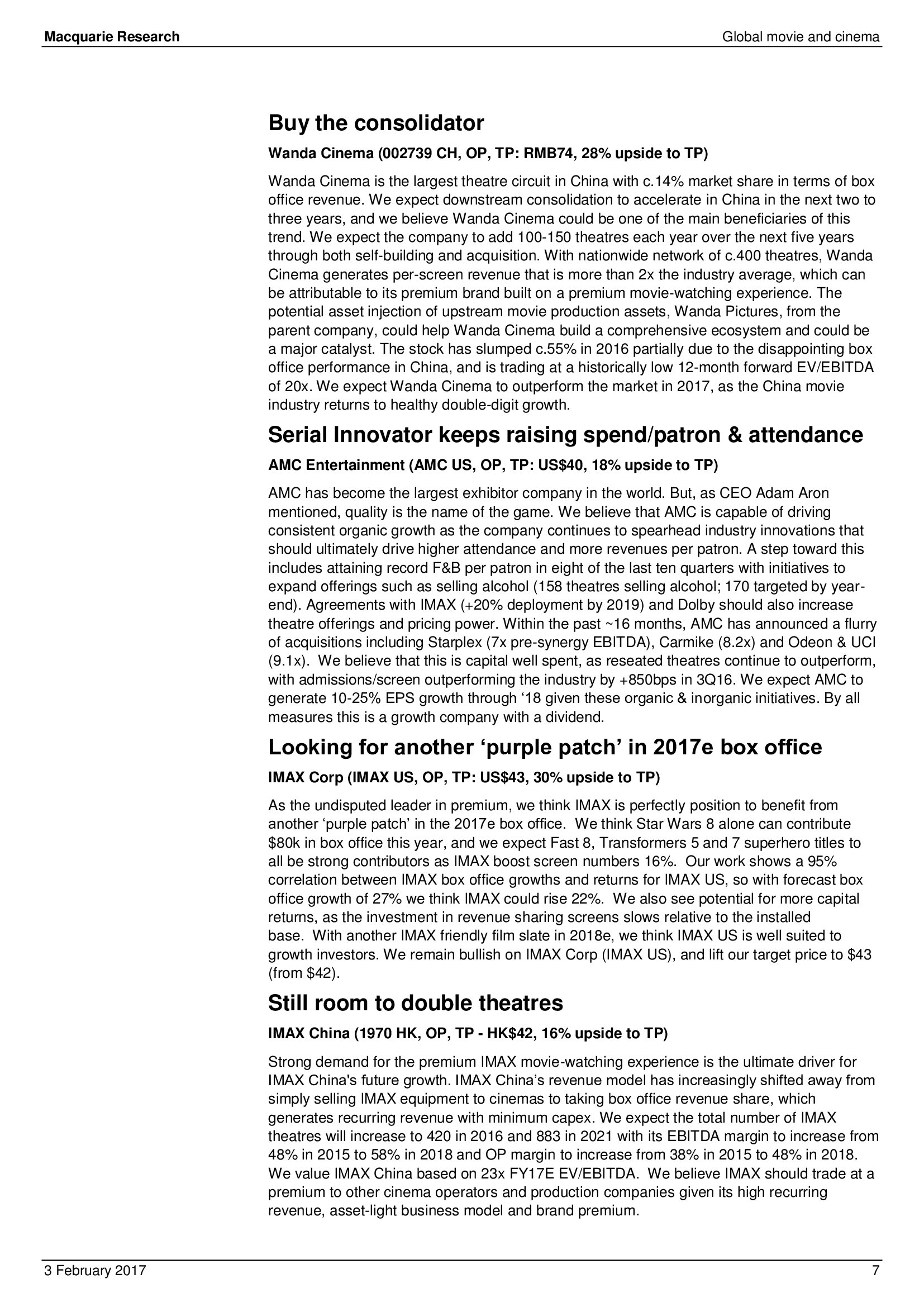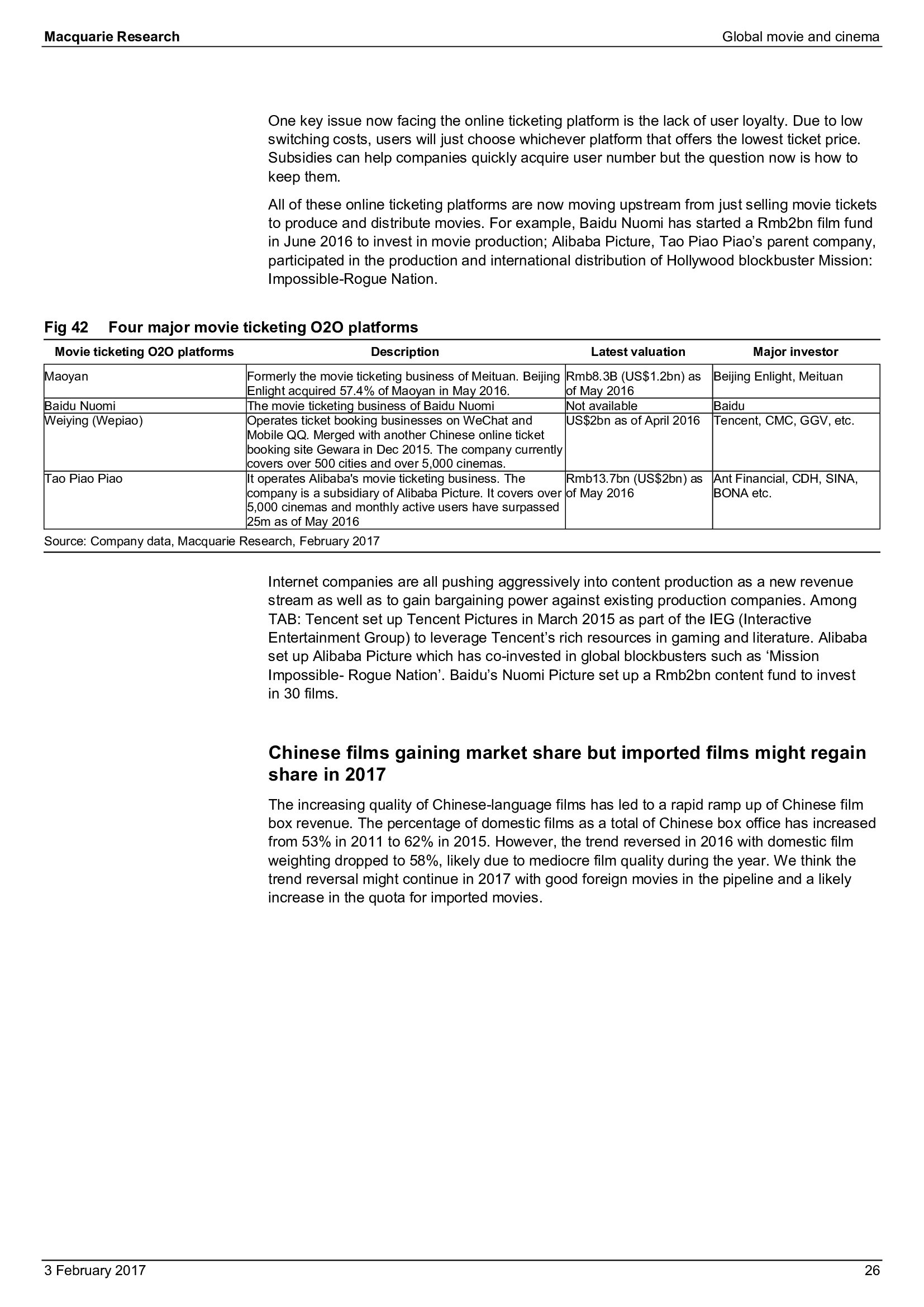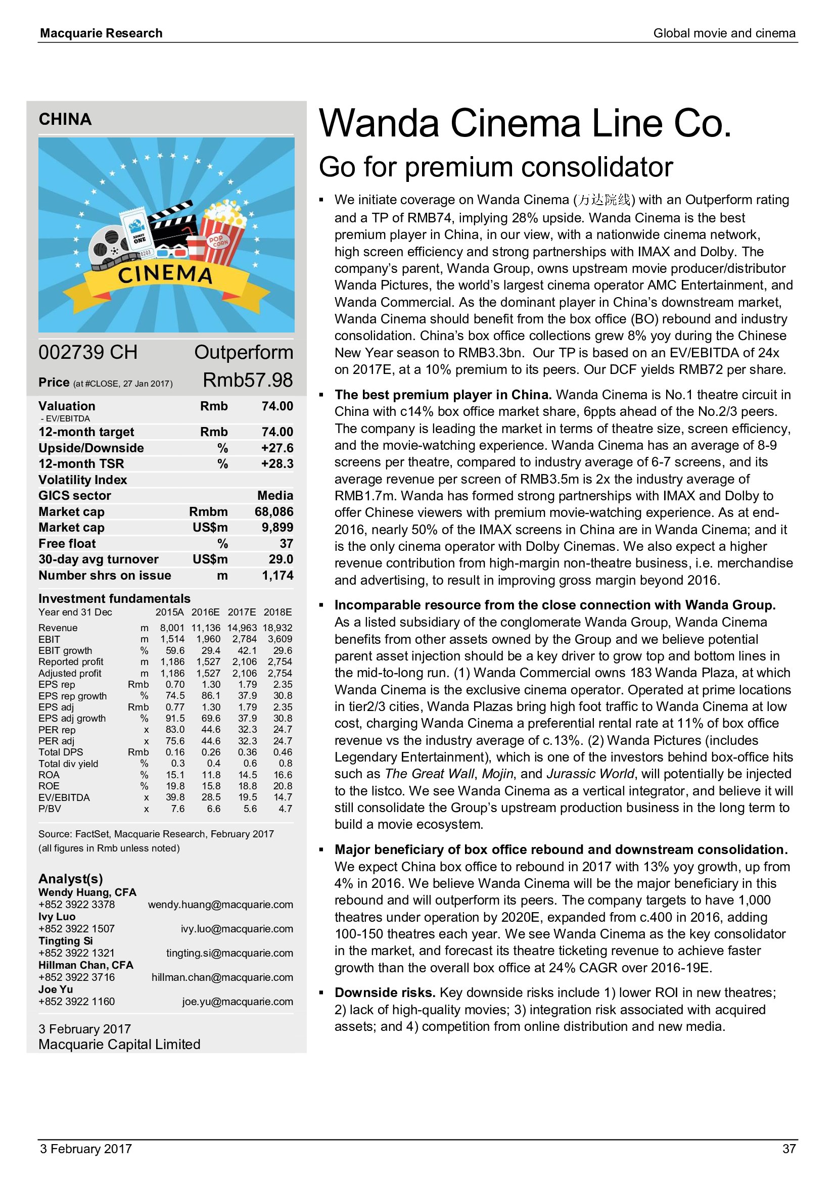 Macquarie Research发布了“2017年全球电影和影院报告”,报告分析了全球电影行业发展趋势。