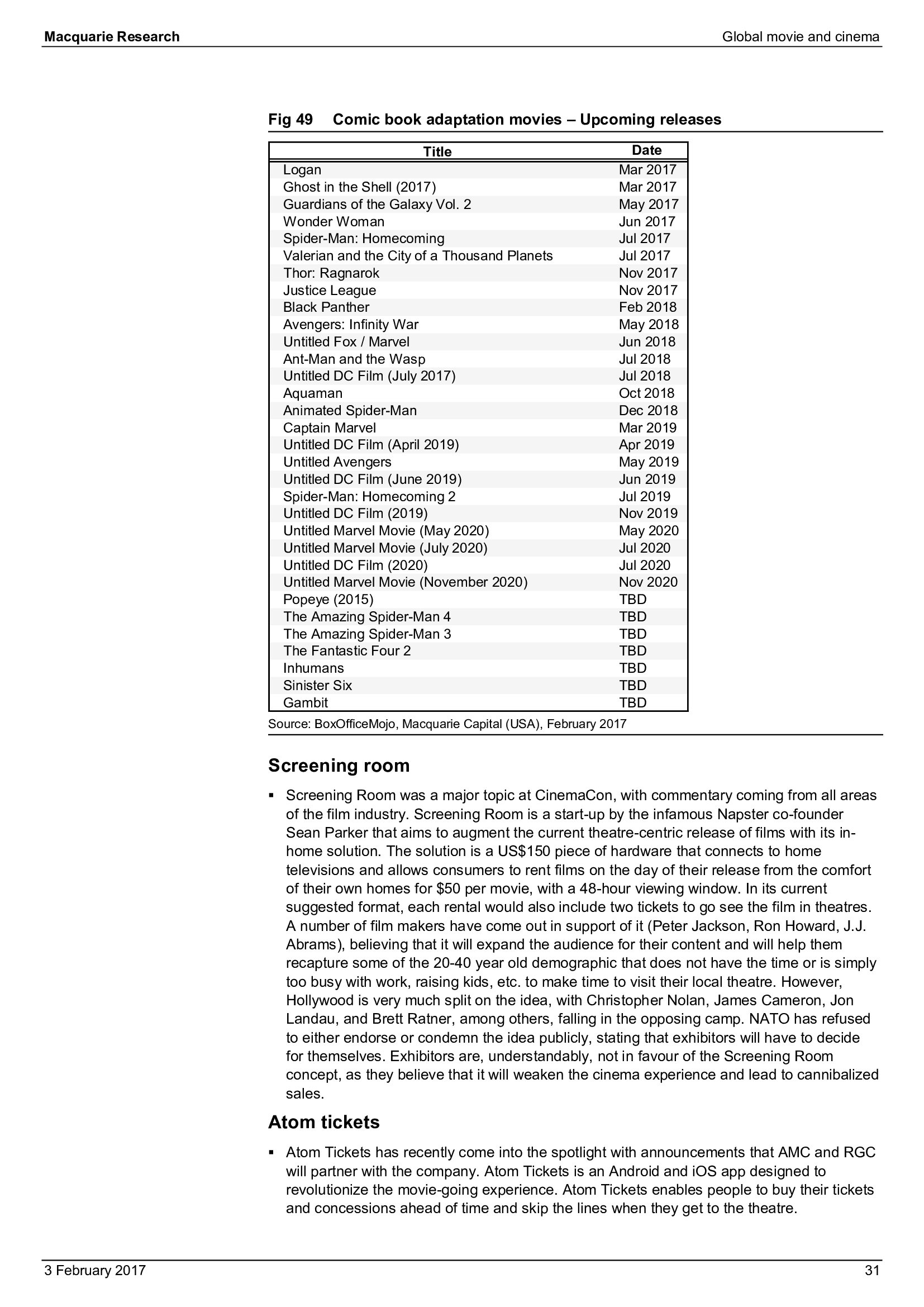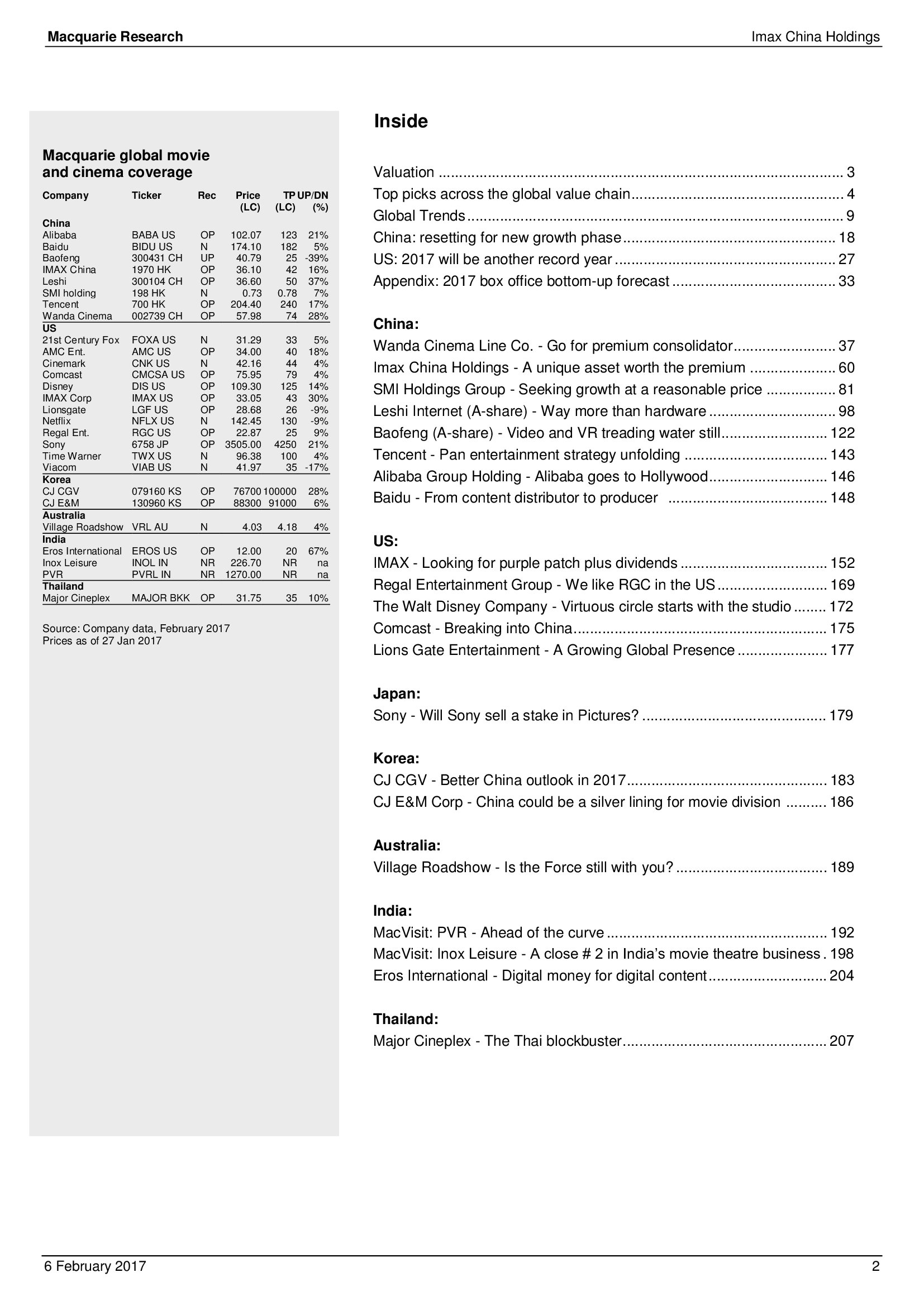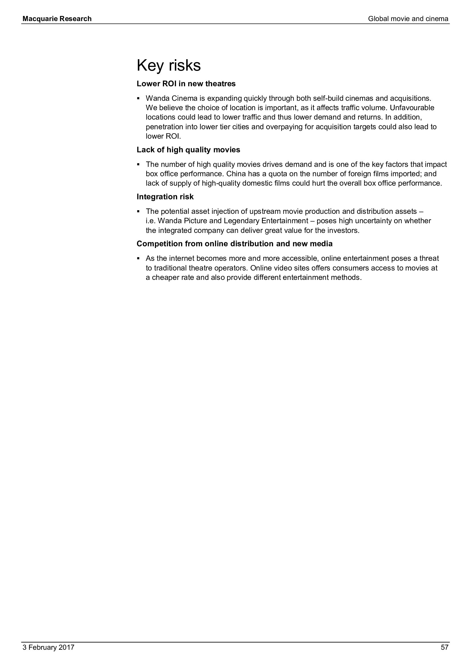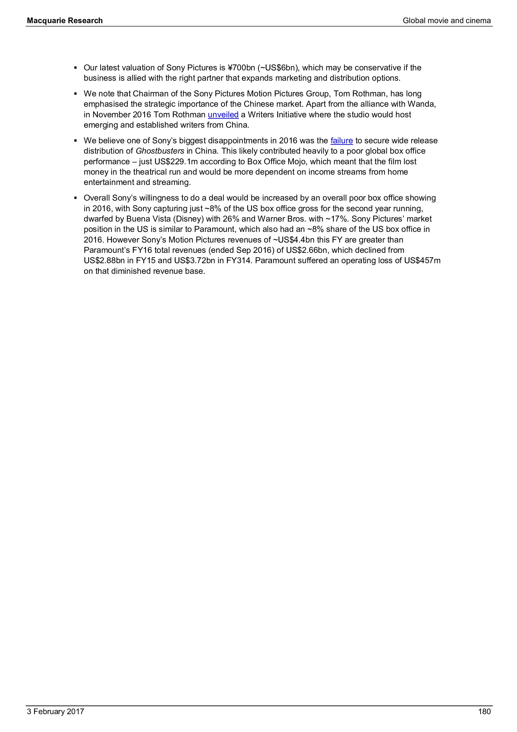 Macquarie Research发布了“2017年全球电影和影院报告”,报告分析了全球电影行业发展趋势。