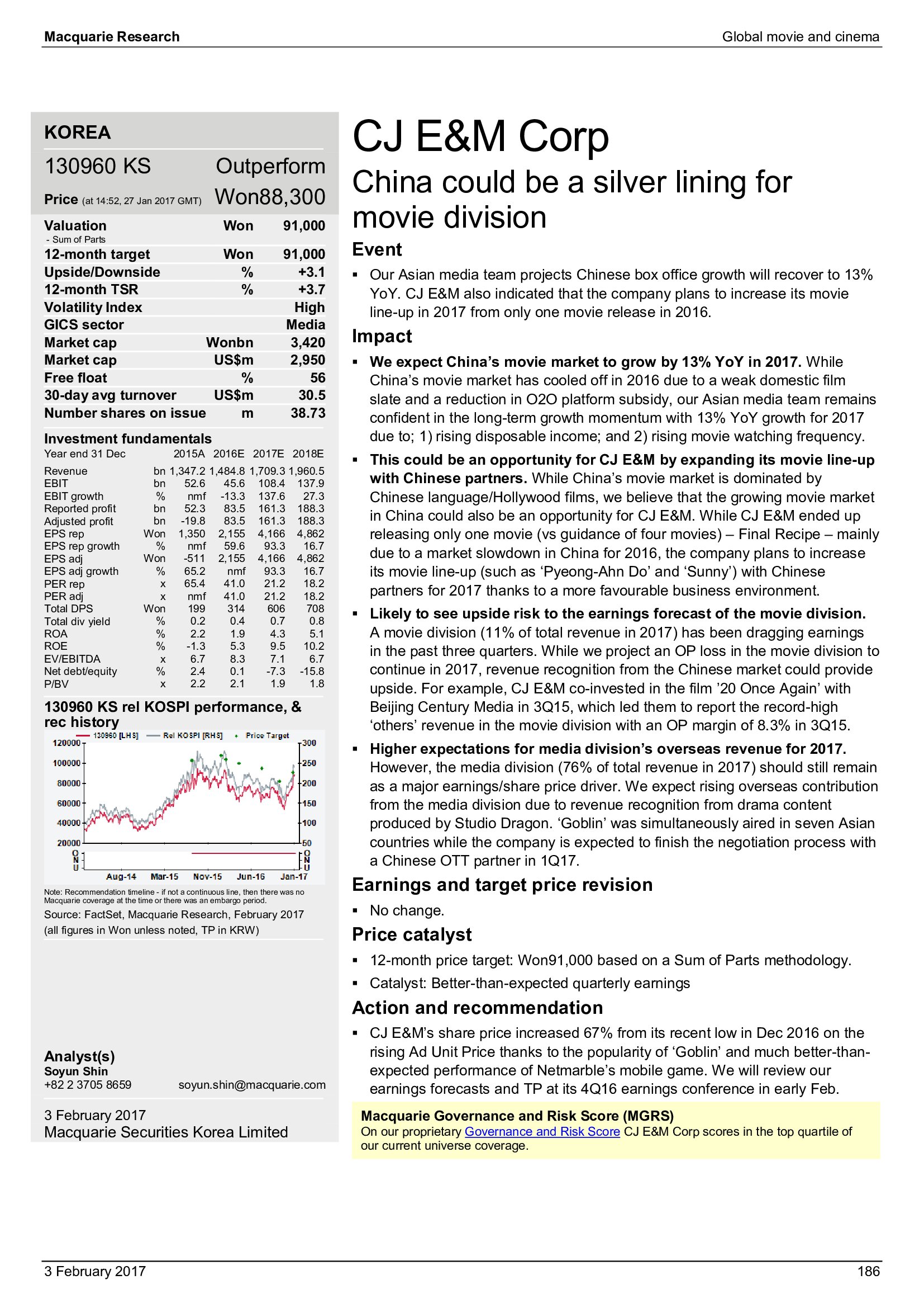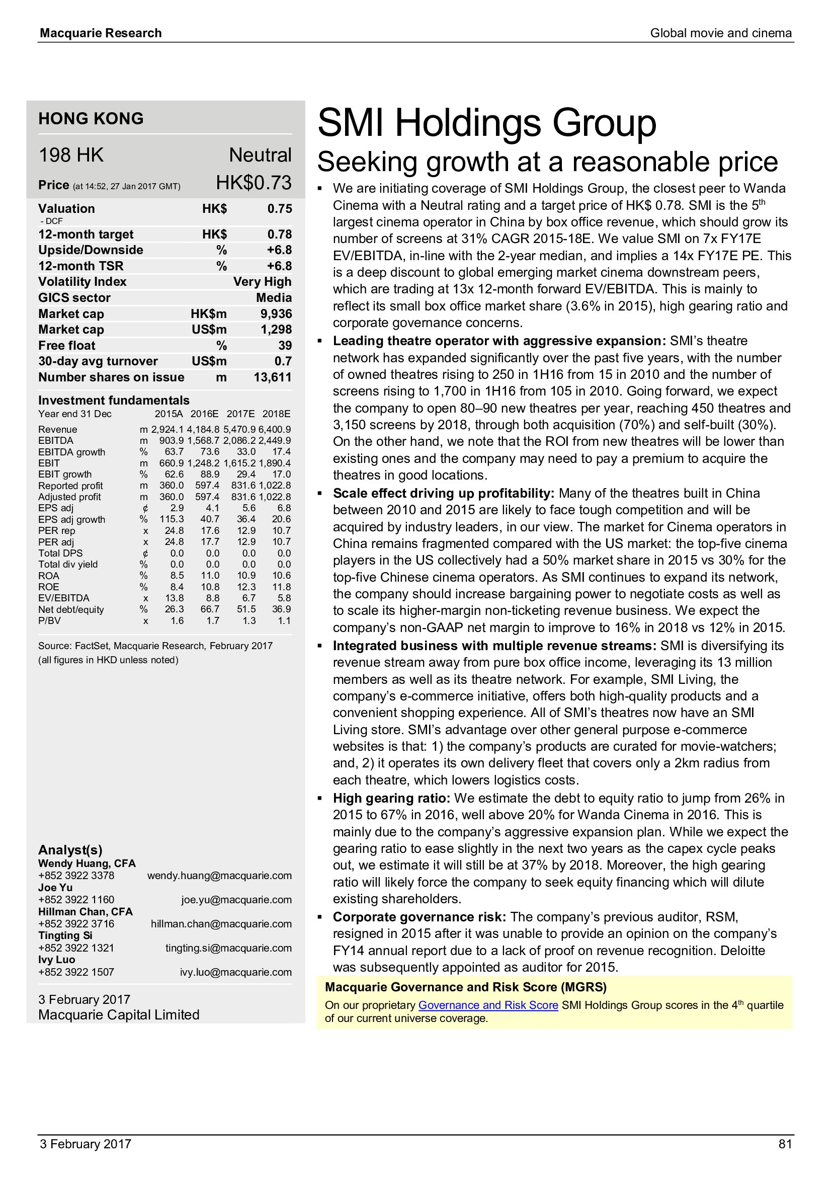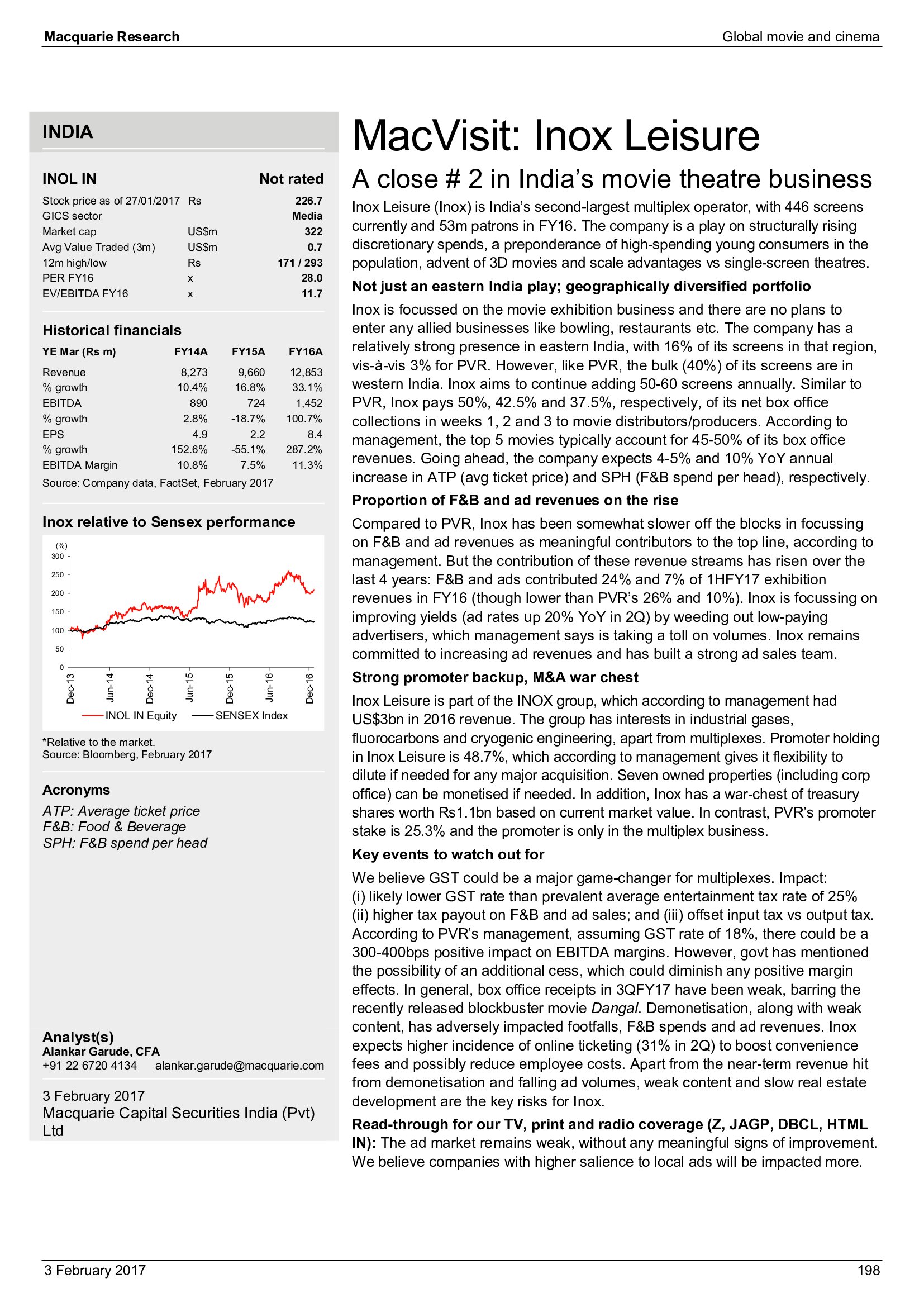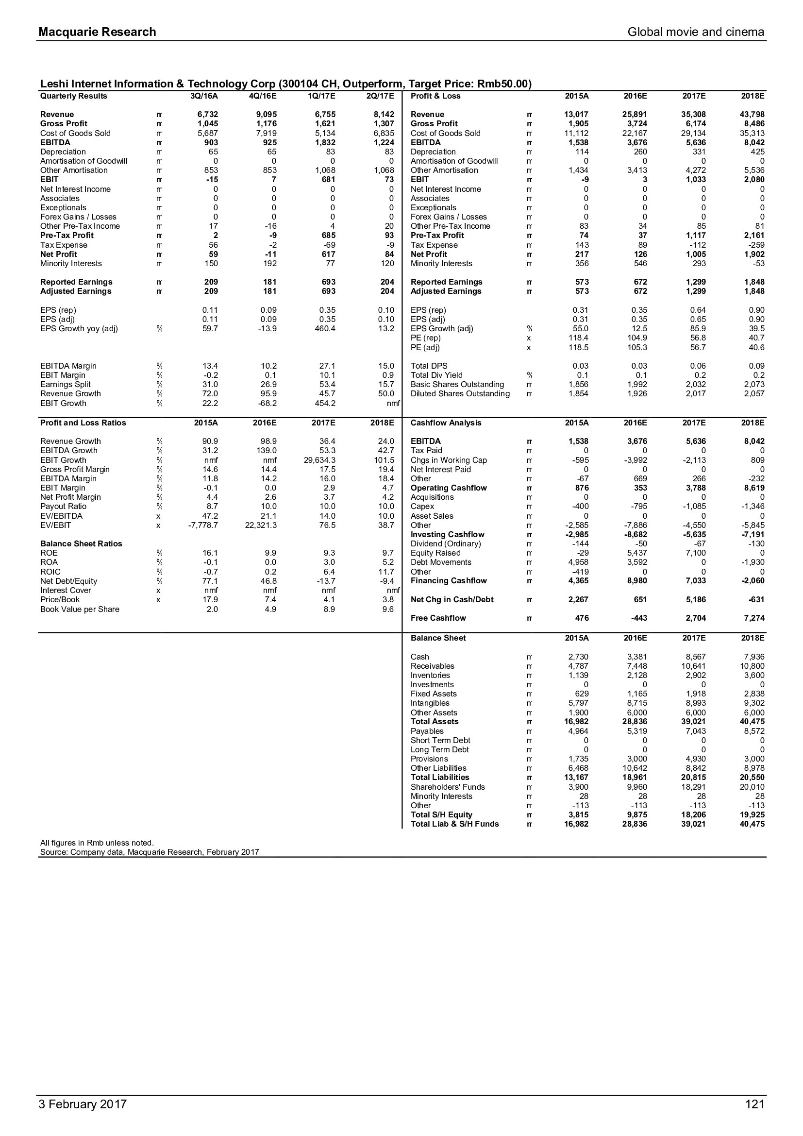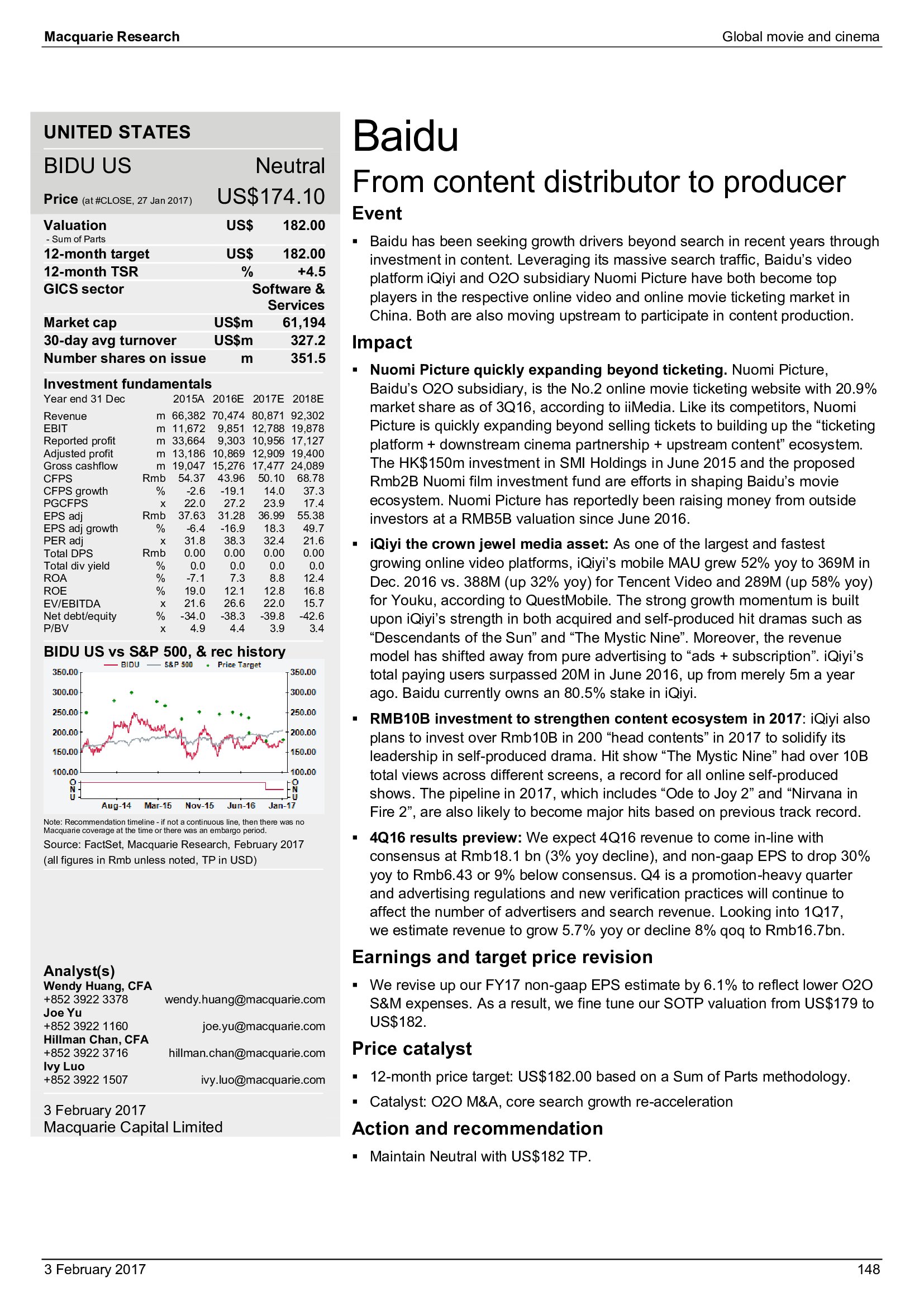 Macquarie Research发布了“2017年全球电影和影院报告”,报告分析了全球电影行业发展趋势。