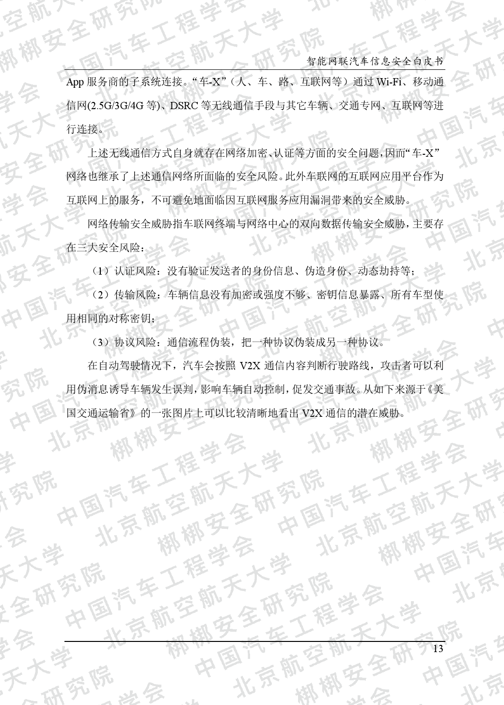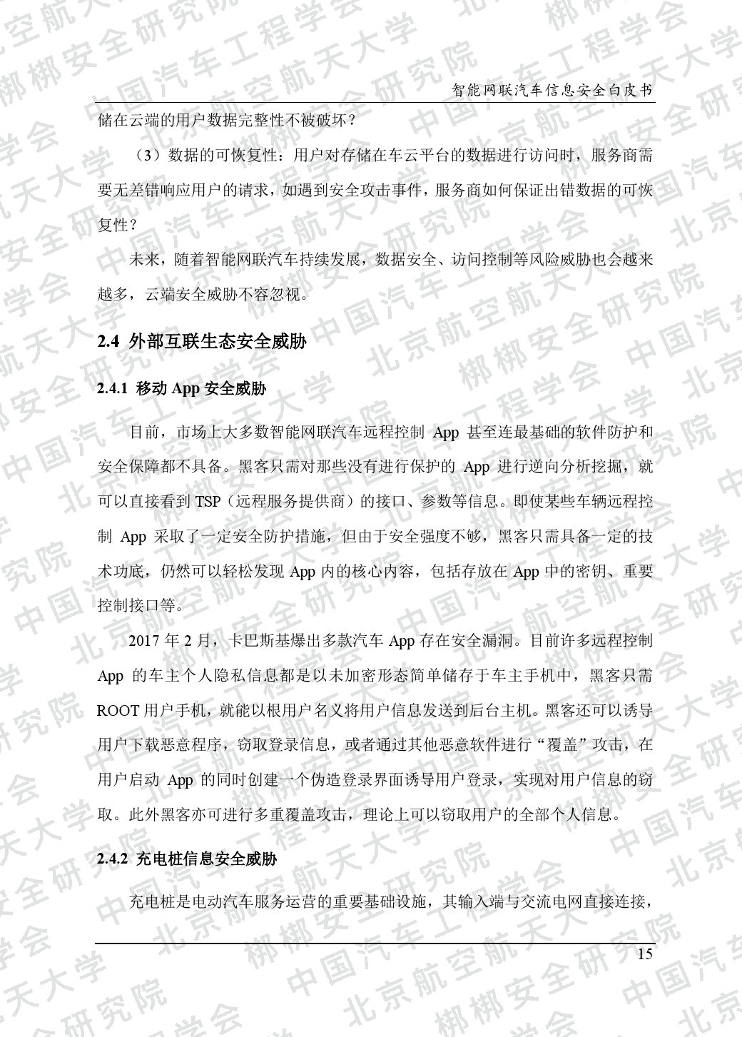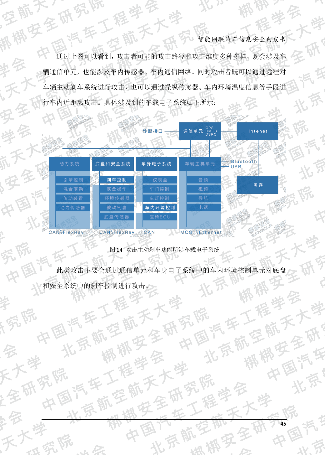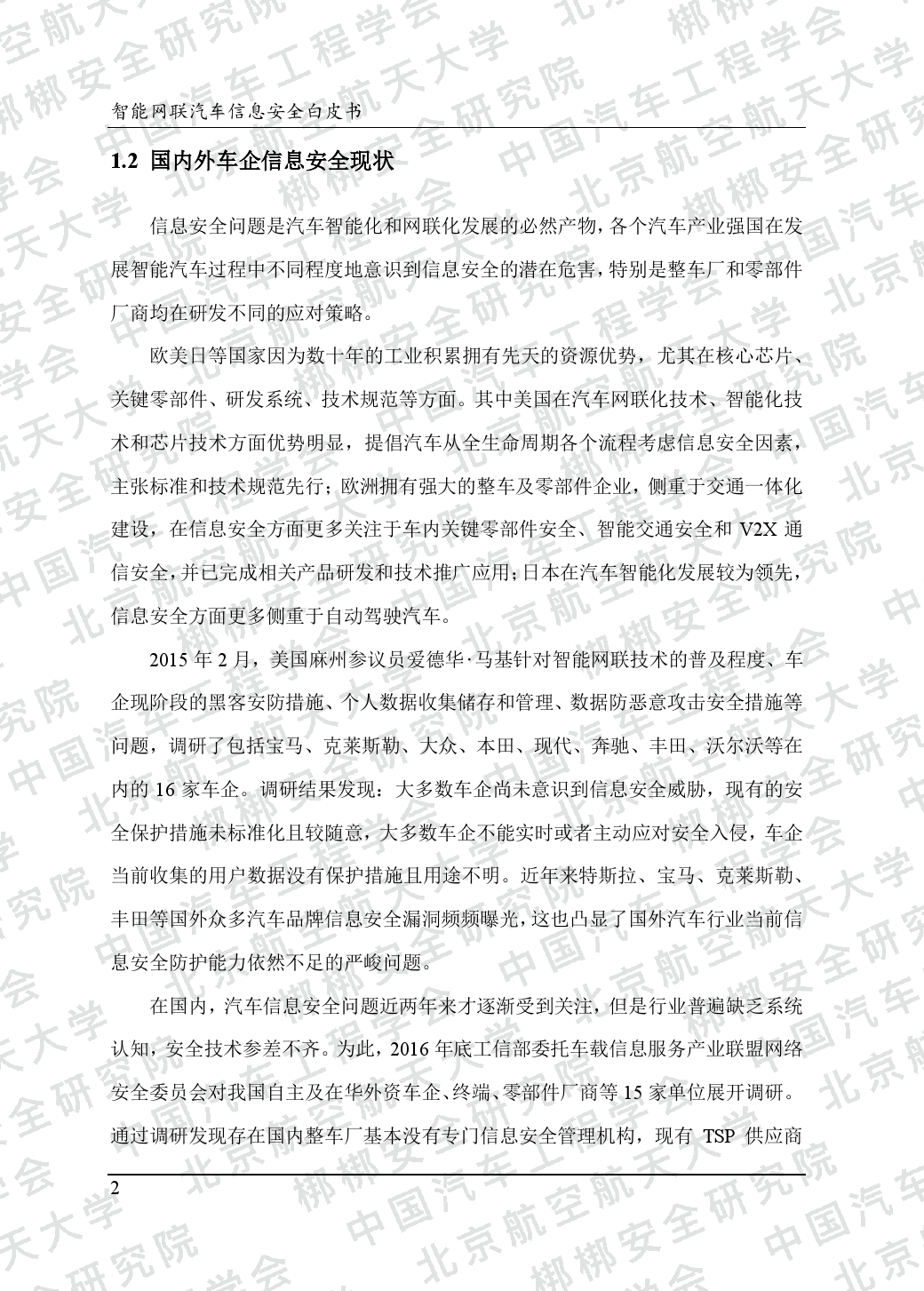 2017年6月12日,在中国智能网联汽车产业创新联盟成立大会上,由中国汽车工程学会、北京航空航天大学、梆梆安全研究院联合编撰的《智能网联汽车信息安全白皮书》正式发布。
