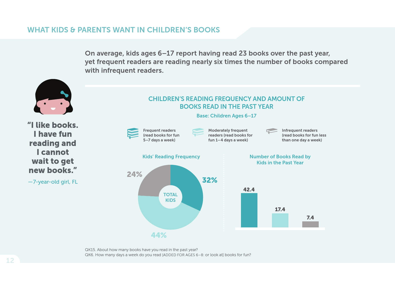 不知道有没有家长暗自窃喜,才23本,我家孩子轻松超越。但是,细看右下角的柱状图,经常阅读者过去一年平均读42.4本书,中等阅读者17.4本。