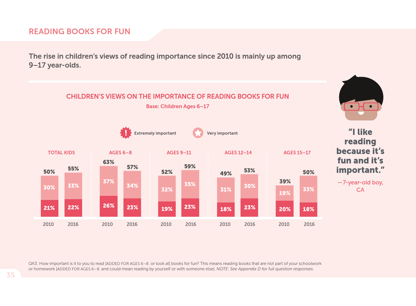 这个报告每2年会调查英文母语国家(美国,英国,澳洲)孩子的阅读情况,今年已经是第六版,于2017年初发布。