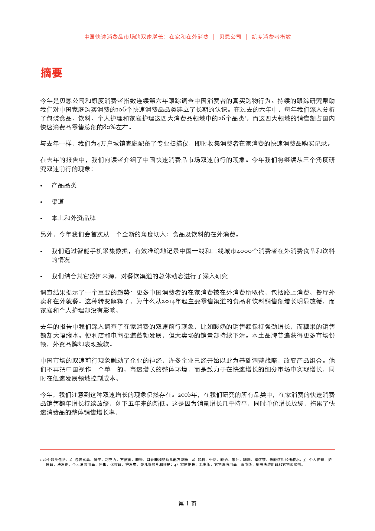 “这是我们第一次从在外消费这一全新视角来分析中国快速消费品市场。结果表明全国消费者购买食品、饮料的方式正在发生根本性转变,”报告合著者、贝恩大中华区消费品业务合伙人布鲁诺(Bruno Lannes)先生表示。“从诸多方面来看,这种变化打开了研究‘双速’趋势的新视野,在《2016年购物者消费报告:如何把握双速前行中的中国购物者》中,我们已经认识到了这一趋势。”