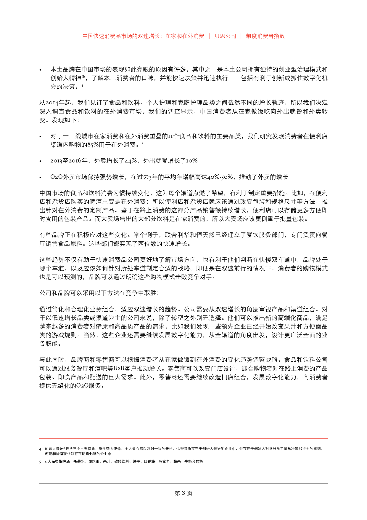 报告的研究结果显示,中国家庭的快速消费品依然呈现“双速”发展,与此同时,不同于以往在家烹饪,许多中国消费者如今更加亲睐餐厅外卖或外出就餐。