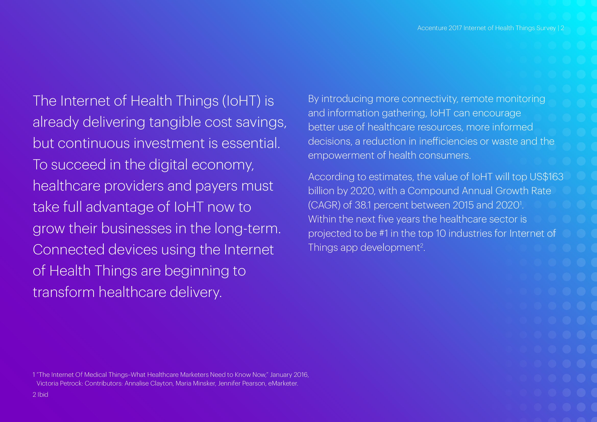 埃森哲发布了“2017年医疗物联网报告”,预计2020年,物联网市场将达到1630亿美元,2015-2020年复合年均增长率为38.1%,而医疗行业则是物联网应用最多的领域。