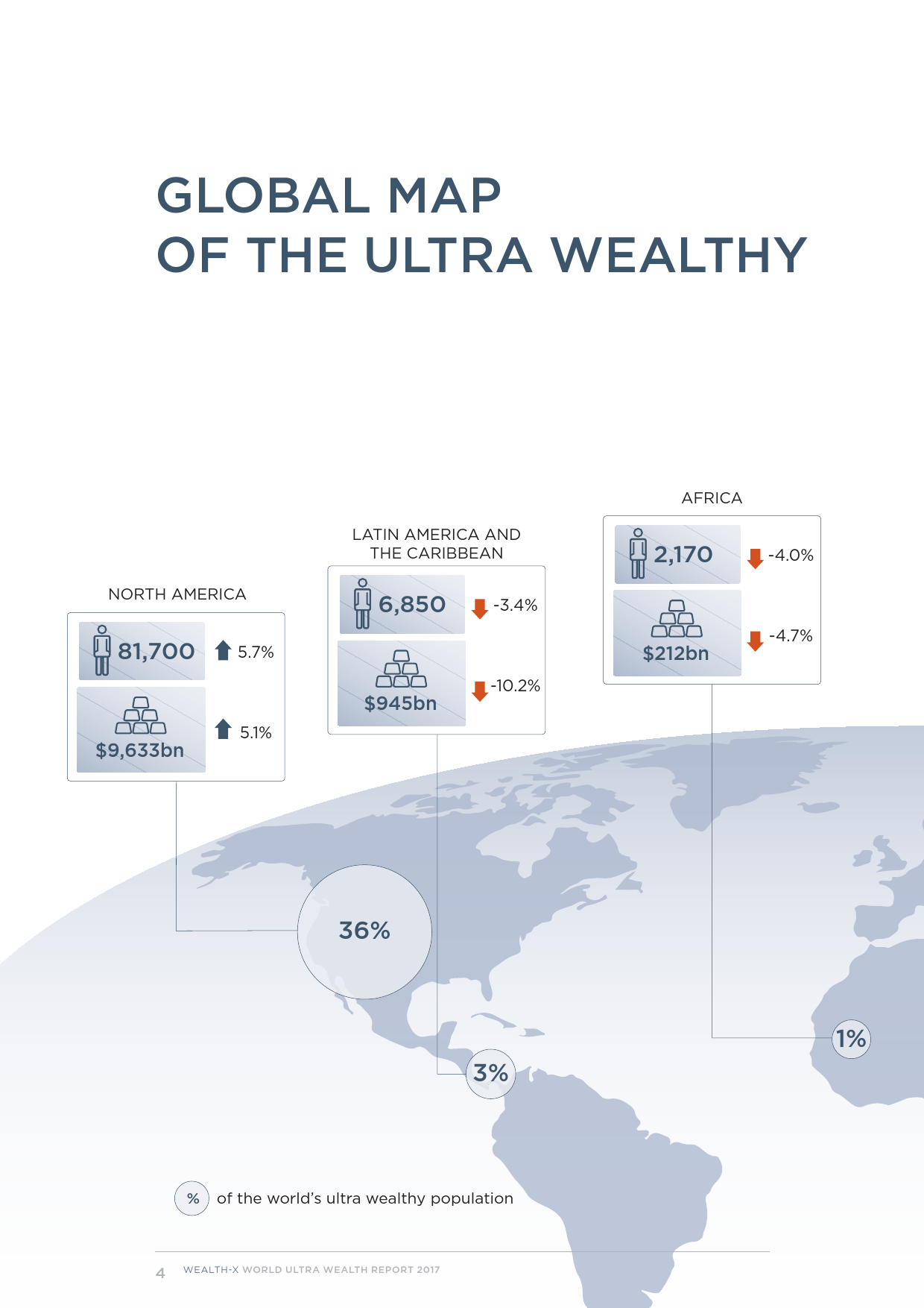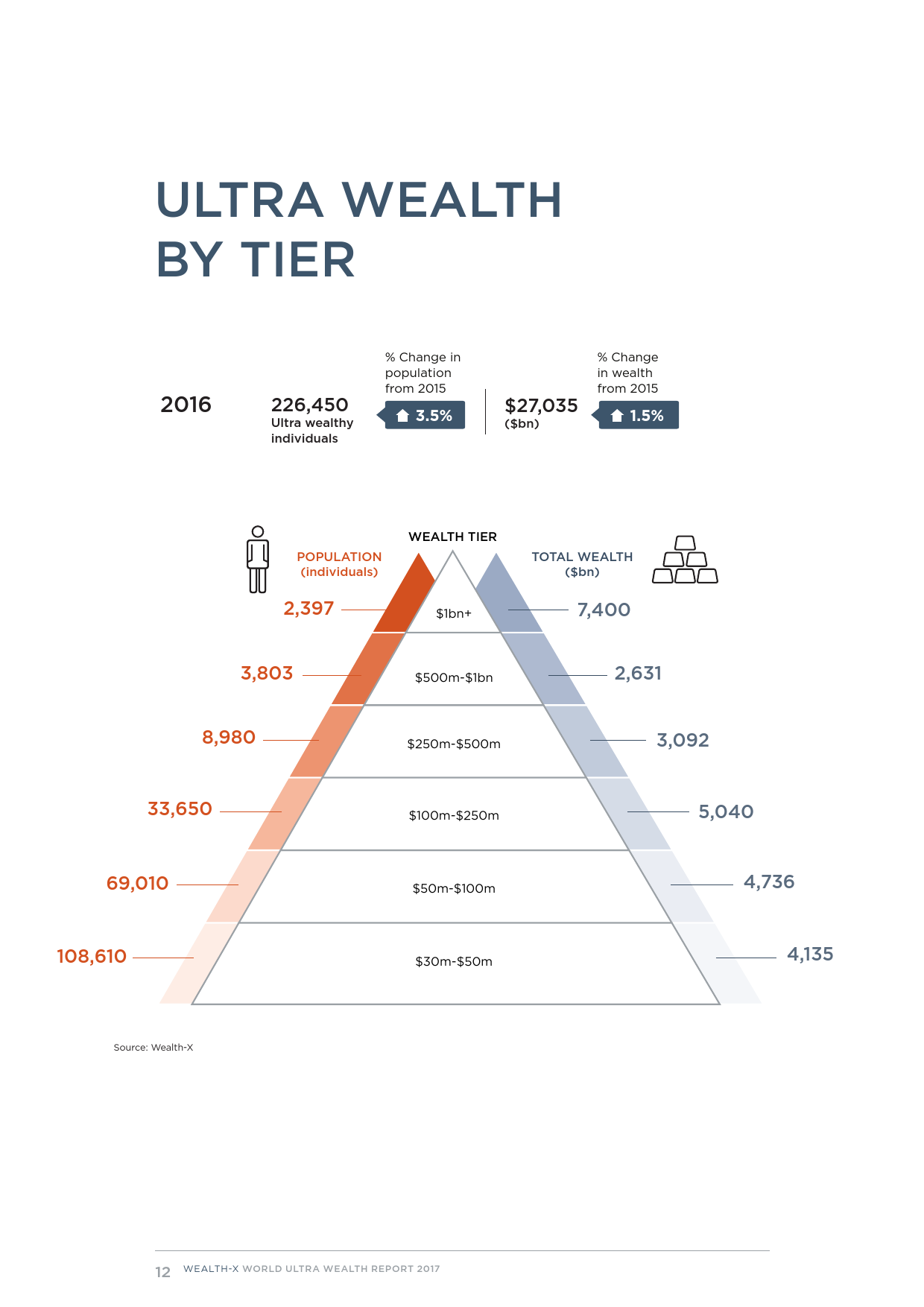 私人财富咨询机构Wealth-X周二发布的《2017全球超级财富报告》显示,过去一年全球超级富翁的人数增加3.5%,扭转了2015年下降7.1%的势头,他们的总财富也有所增加。
