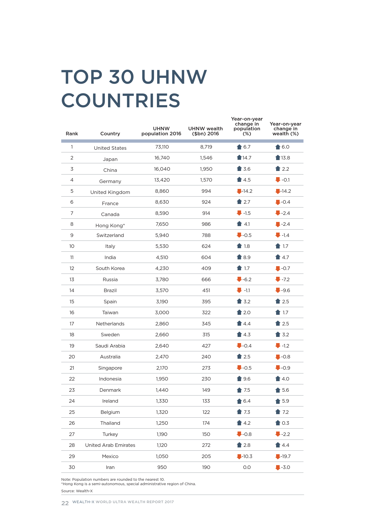 全球超级富豪人数最多的国家和地区仍是美国,共73110人,较2015年增加6.7%;总财富增加6%,至87190亿美元。