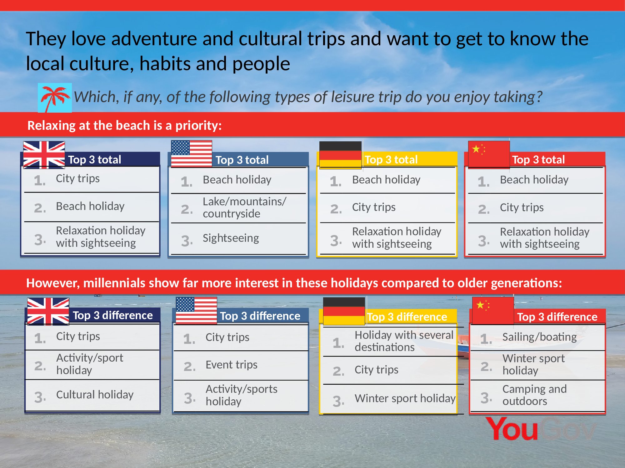 - 认识到千禧一代正在寻找不同的旅游体验,更个性化、更具冒险精神、更具文化性。