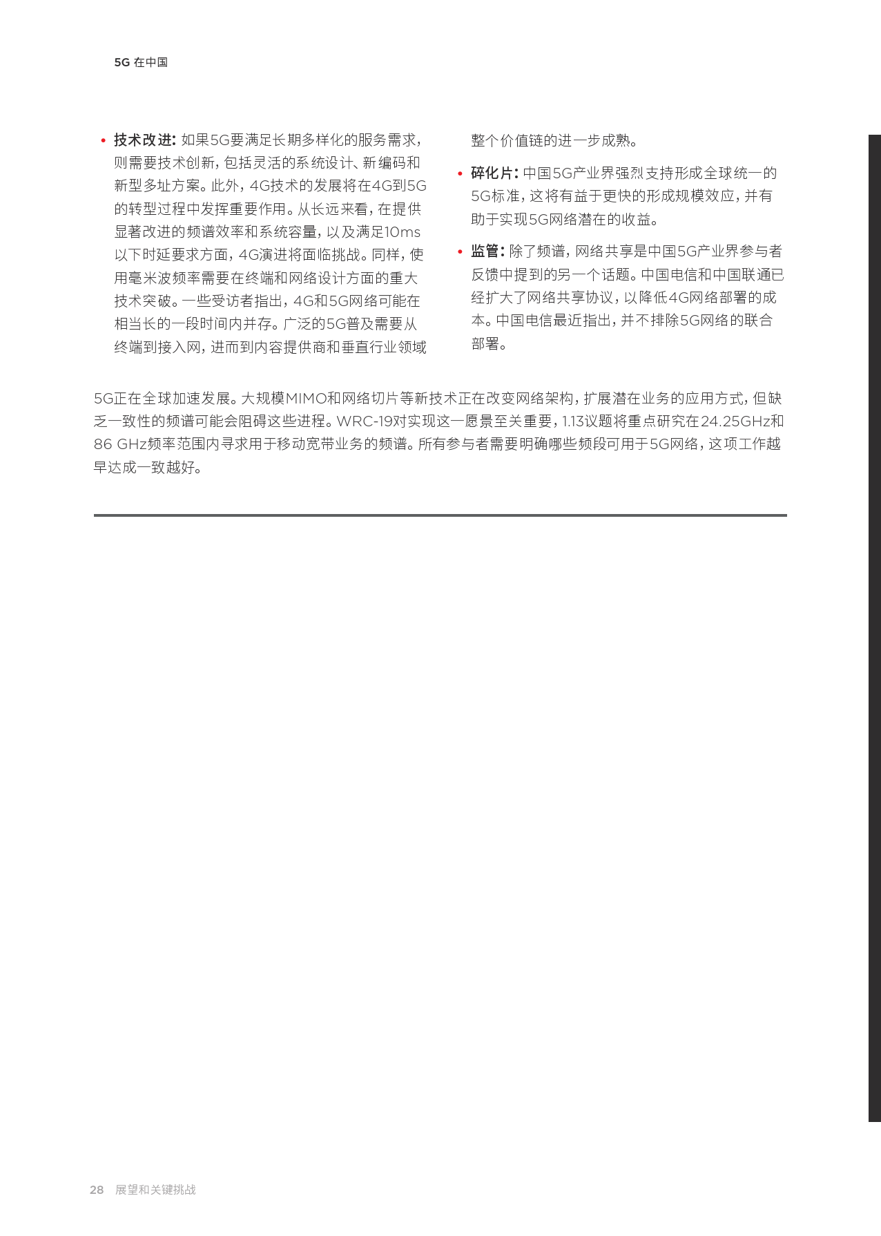 对于未来,中国预计将在2020年实现5G商用,预计2025年将有4.28亿5G用户。中国5G产业界强烈支持形成全球统一的5G标准,这将有助于快速形成规模效应,实现5G的潜在收益。