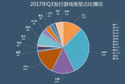在本次Q3发行计划中,涵盖了39家游戏公司的120+款游戏产品,其中超过80%的游戏产品都定档在了Q3期间发行,虽然说存在变数,但是暑期档大家都不想错过。包括腾讯、网易、蜗牛、完美世界等在内的知名厂商在Q3都有各自的产品发行,布局市场。根据统计数据显示,在发行游戏类型方面与Q2整体比较相似,以MMO为首,其占总量的27%,数量上有38款;紧随其后的是卡牌,其占总比的15% ,有18款,说到卡牌,在Q3大部分卡牌游戏都不是单纯的卡牌收集,而是类型融合,融合卡牌与其他类型之后,可玩性会更高;ARPG同样都占比15%;策略稍弱只有12%的占比,这4大类型占比超过总量的70%,依然是市场的主要趋势。