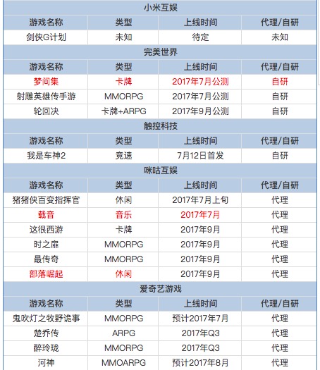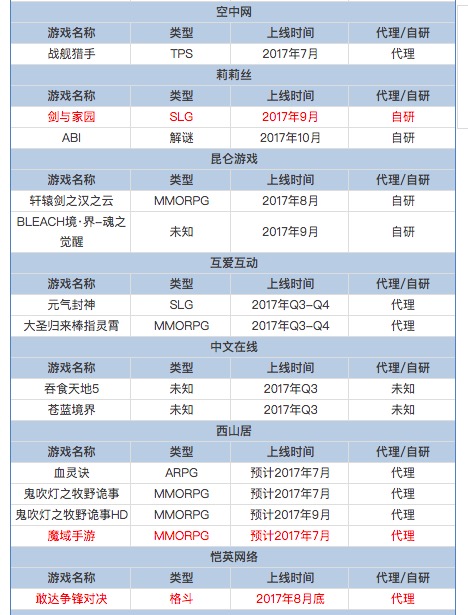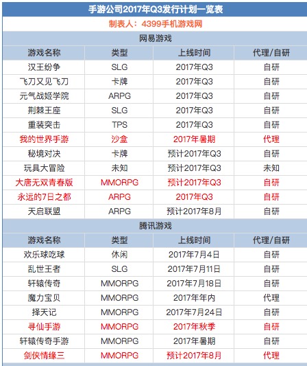 2017年上半年即将结束,在马上开始的下半年以及即将来临的暑期档,各大厂商已经开始在布局Q3的各种新品,不仅为了下半年的产品布局,暑期档的竞争也是相当的激烈互不相让,为此4399游戏鹰眼收集了部分厂商的发行计划,方便大家了解各大游戏公司未来的动态。