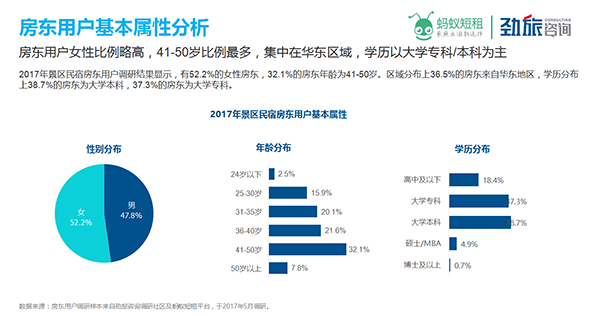 为了更好的了解景区民宿市场的现状,《中国景区民宿市场研究报告2017》中还专门针对房东群体进行了调研分析。