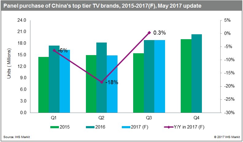 根据IHS Markit的最新数据,2017年第三季度,韩国和中国电视制造商的面板需求将有所增长。