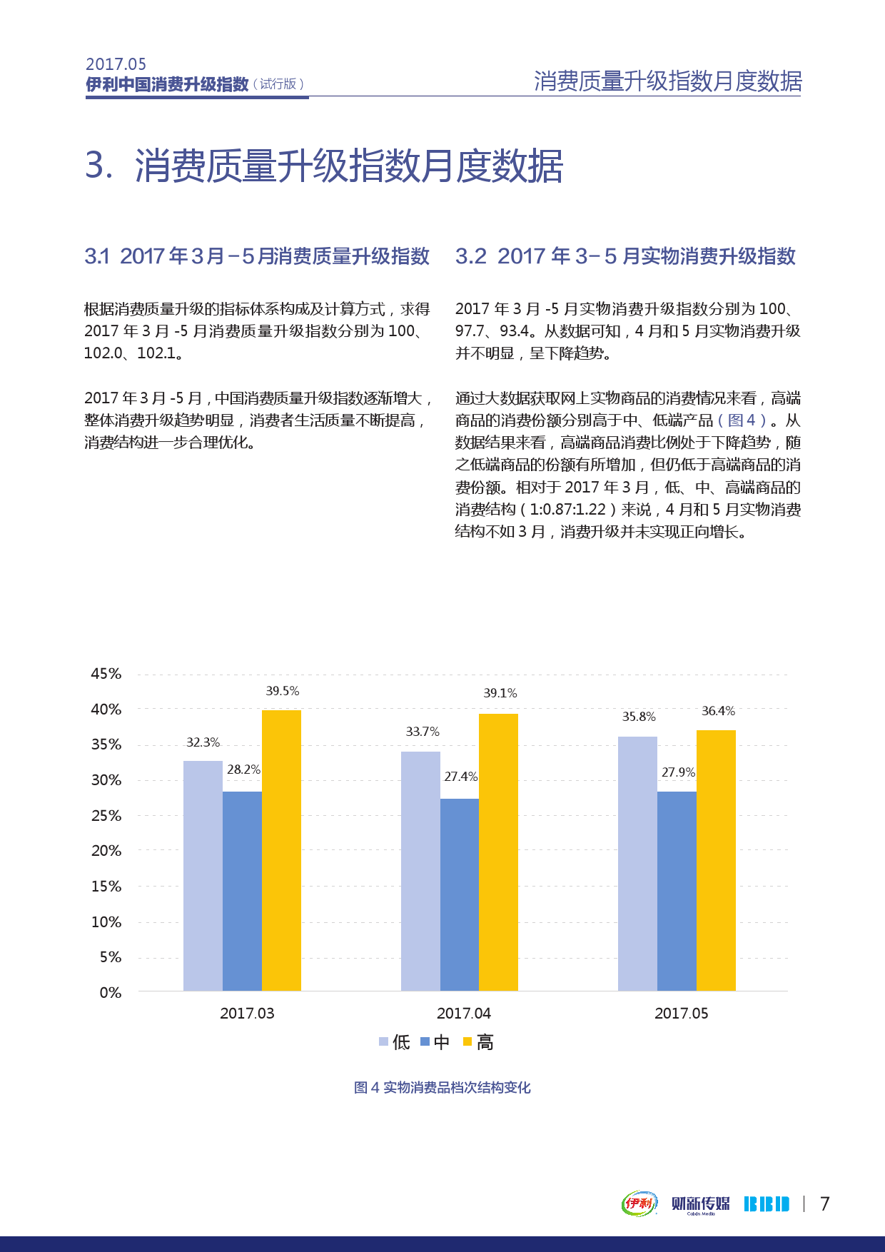 报告以2017年3月消费状况作为基期数据标准,计算获得2017年3月-5月消费质量升级指数分别为100、102.0、102.1。