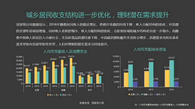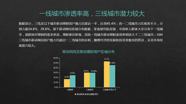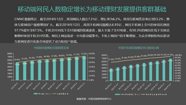 报告显示,2016年随着居民可支配结余资金的稳定增长,人们对理财的潜在需求在持续提升。同时,手机网民人数稳定增长以及移动支付技术的快速发展等为移动理财的发展提供了基础。