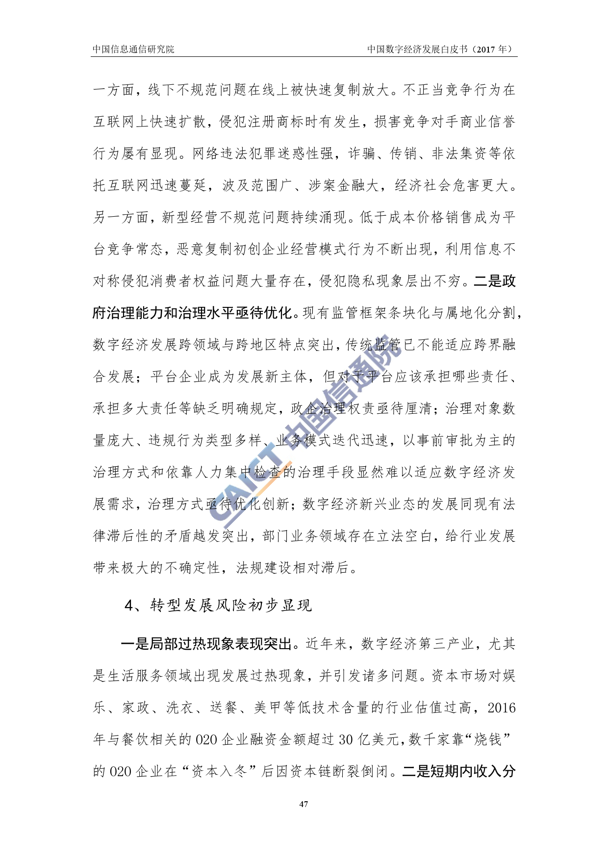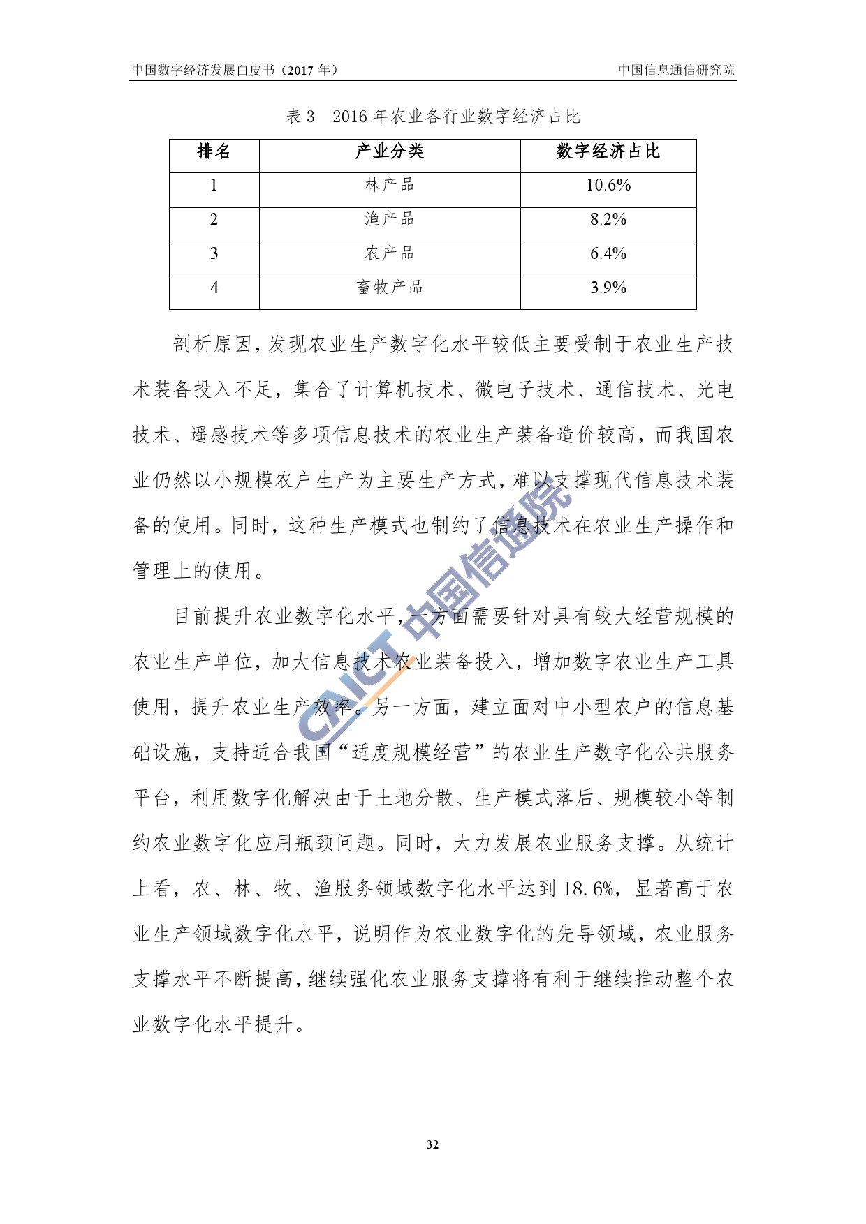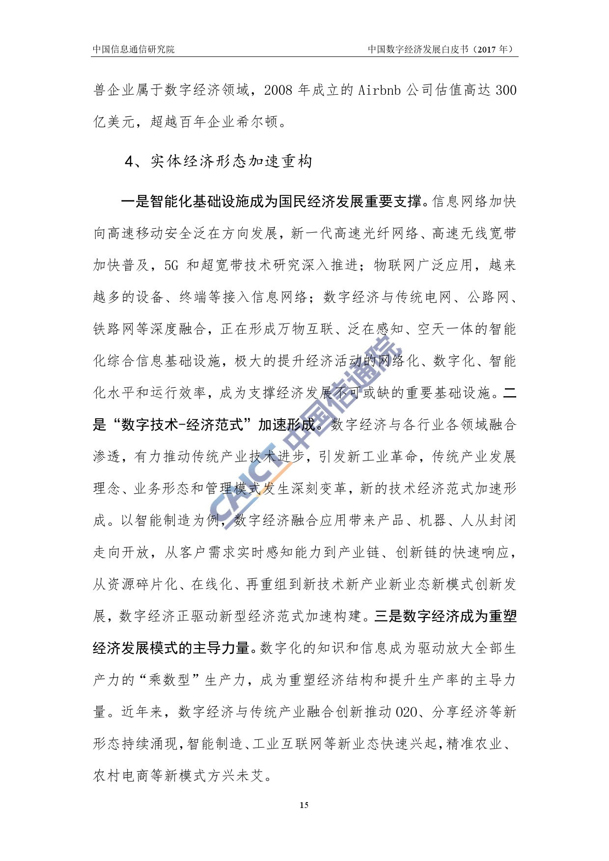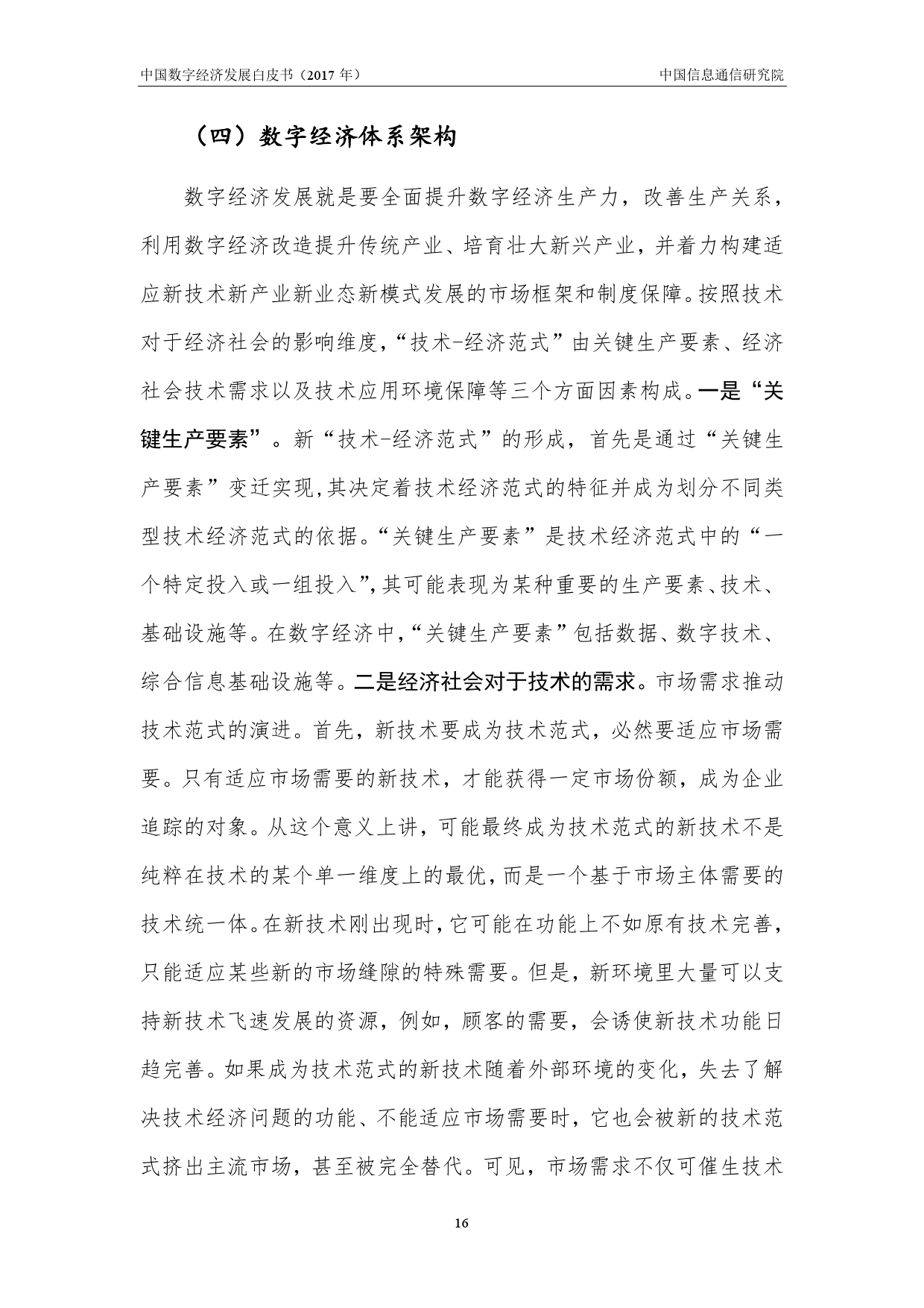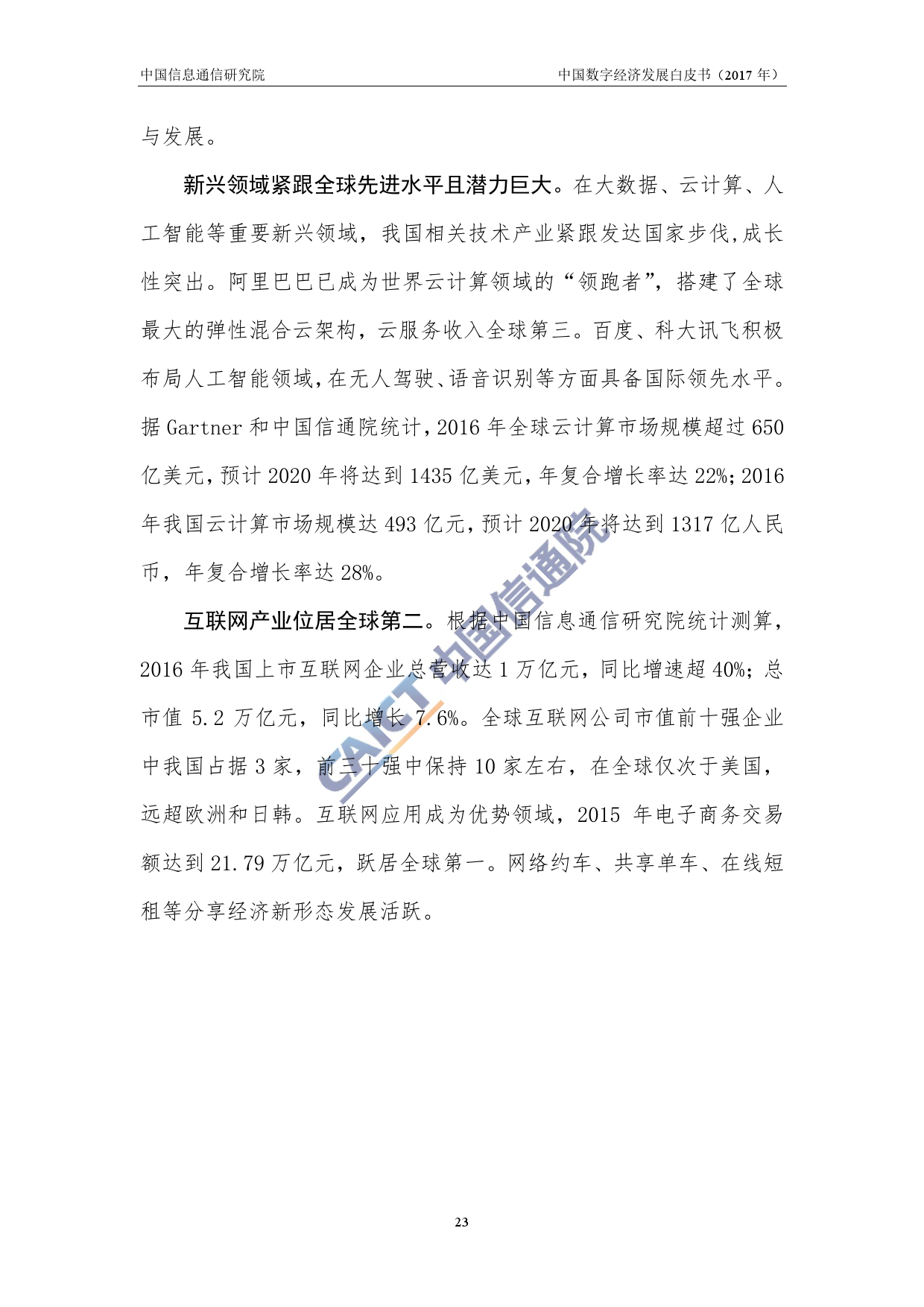当前,我国数字经济正在进入快速发展新阶段。2016年,中国数字经济规模达到22.6万亿,同比增长18.9%,占GDP比重达到30.3%,数字经济基础设施实现跨越式发展数字经济基础部分增势稳定,结构优化,新业态新模式蓬勃发展,传统产业数字化转型不断加快,融合部分成为增长主要引擎,面向数字经济的社会治理模式在摸索中不断创新。数字经济在各行业中的发展出现较大差异,数字经济占本行业增加值比重呈现出三产高于二产、二产高于一产的典型特征。